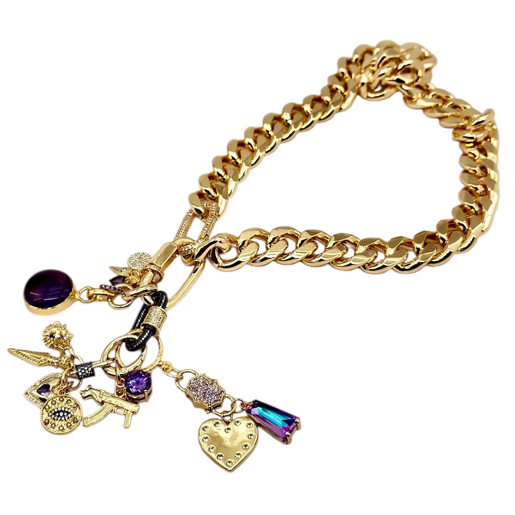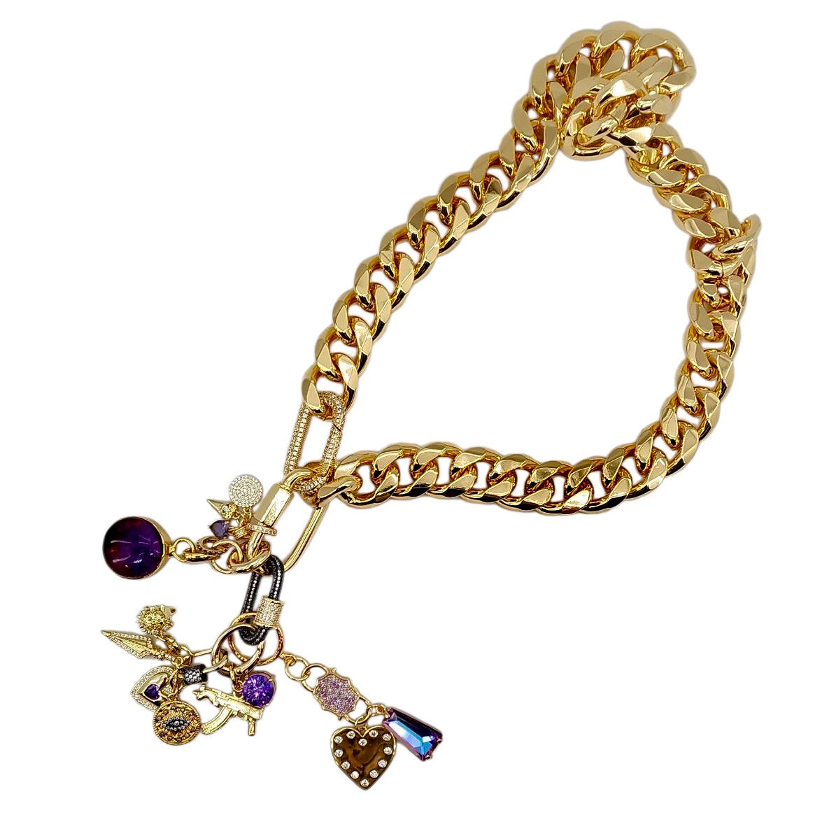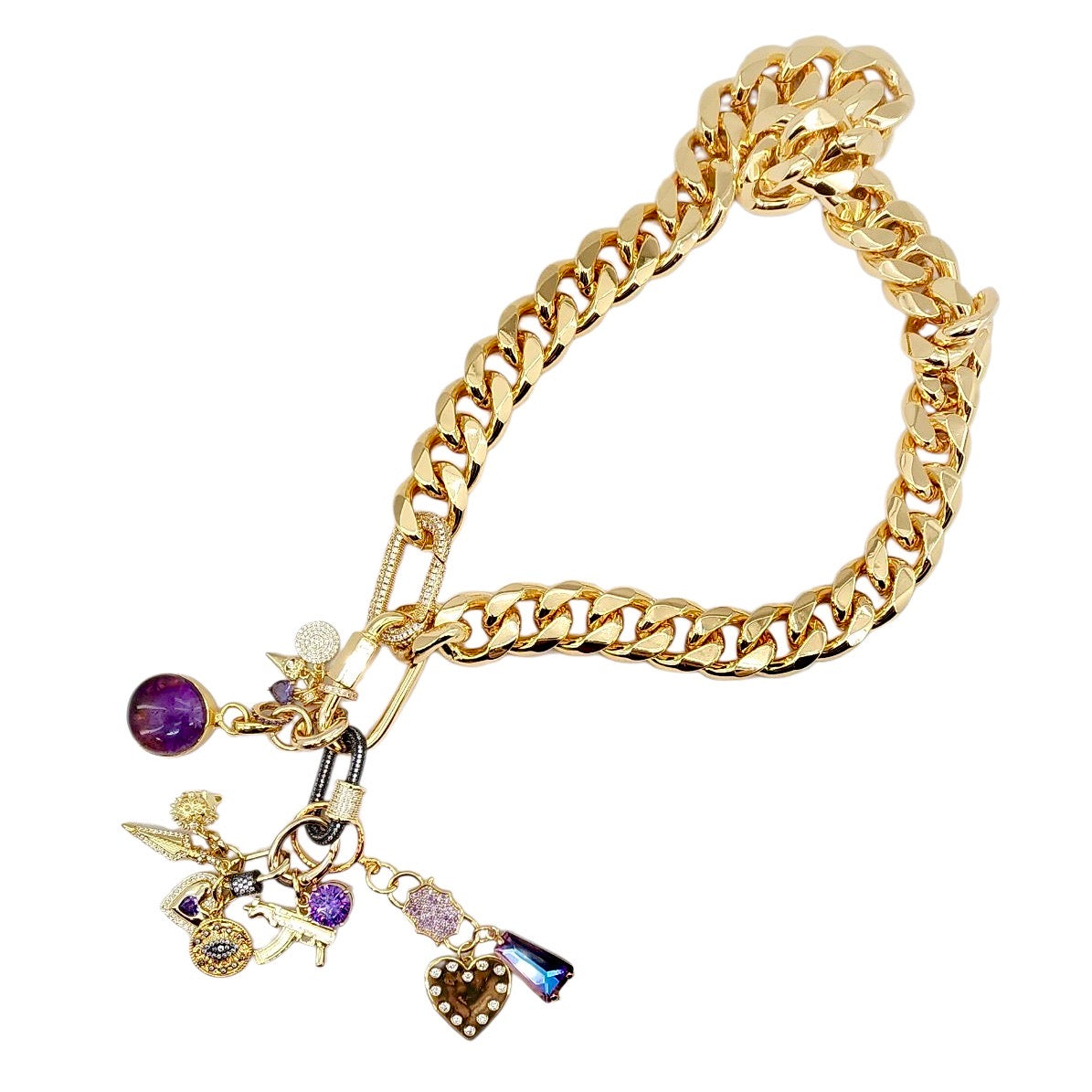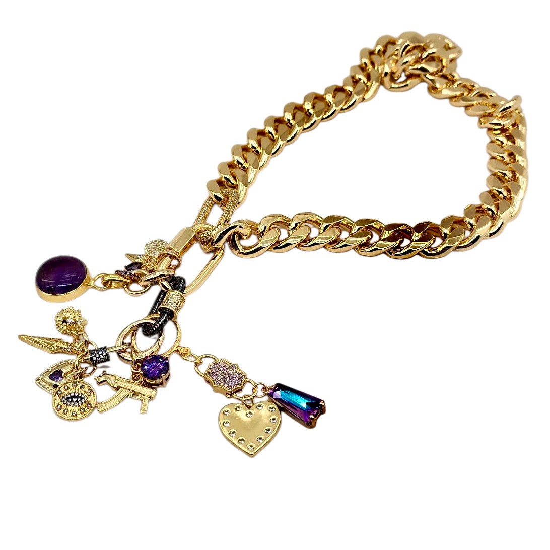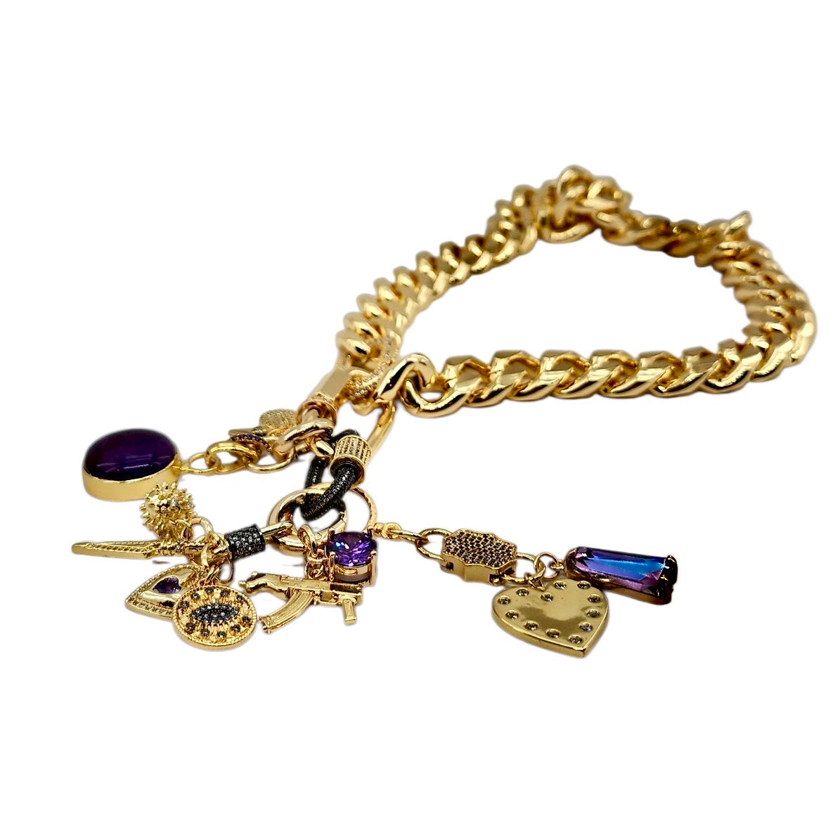 26MM 24K GOLD FILLED PURPLE CZ MICRO PAVE INTERLOCKING DOUBLE LOCK CLASP