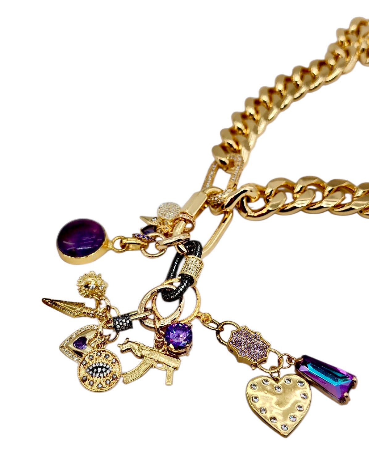 9MM 18K GOLD FILLED PURPLE CZ MINI HEART GEM STONE CHARM
