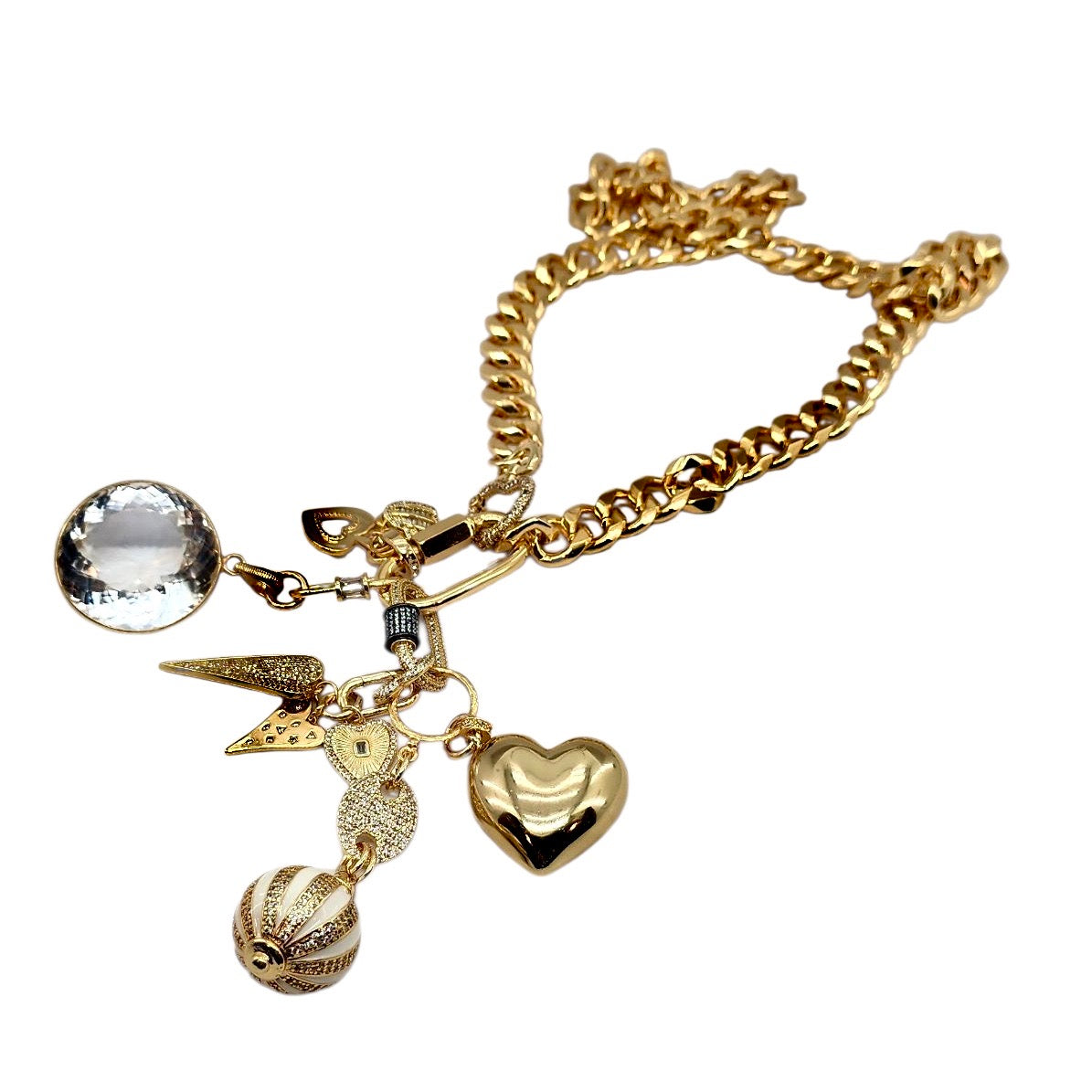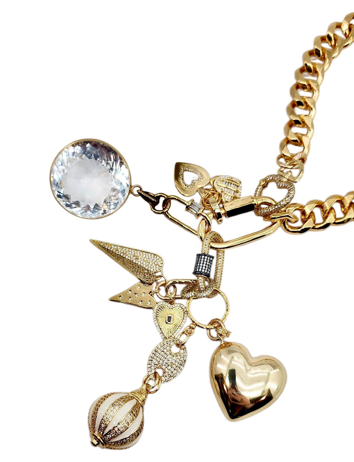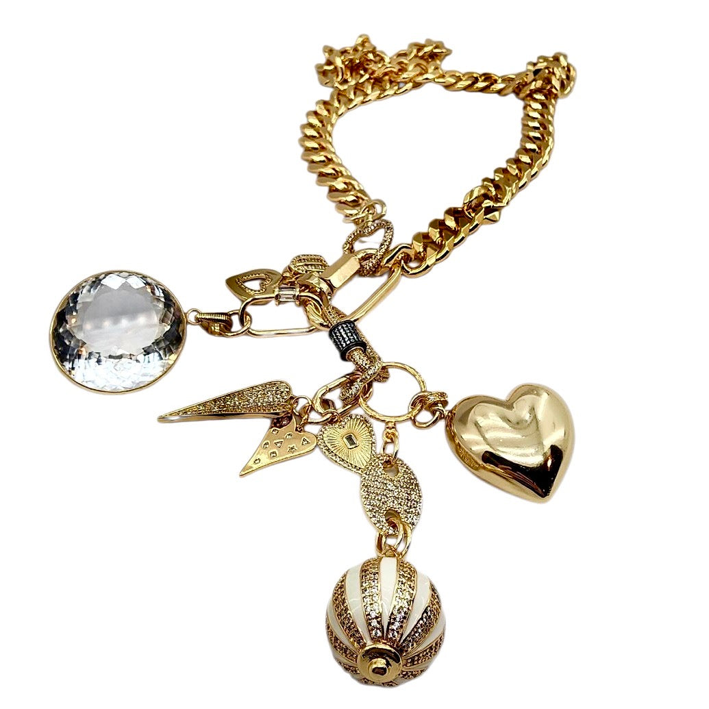 CAN BE WORN AS A NECKLACE, BRACELET AND OR BAG CHARMS. UNCLIP TO RE-ARRANGE AND OR MIX & MATCH.