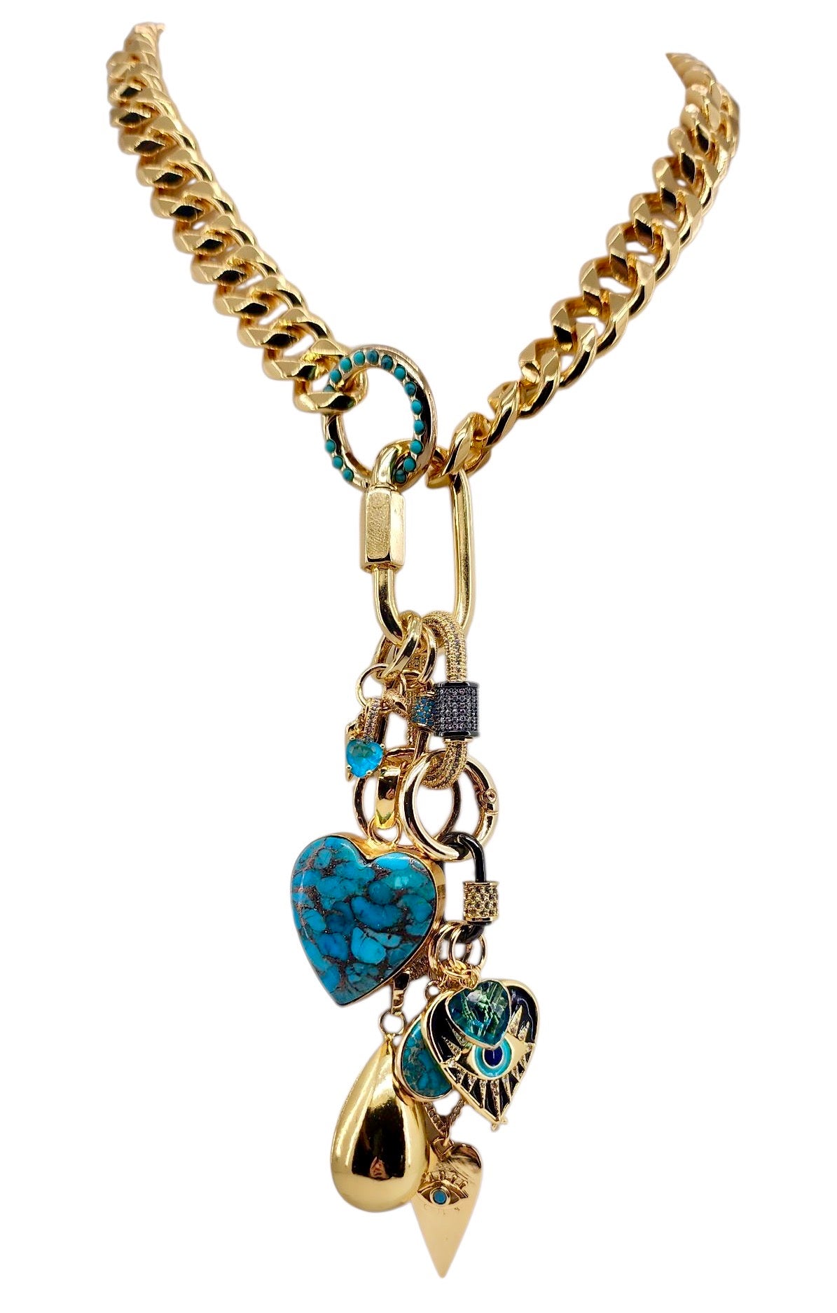 32MM 18K GOLD PLATED COPPER TURQUOISE HEART GEM