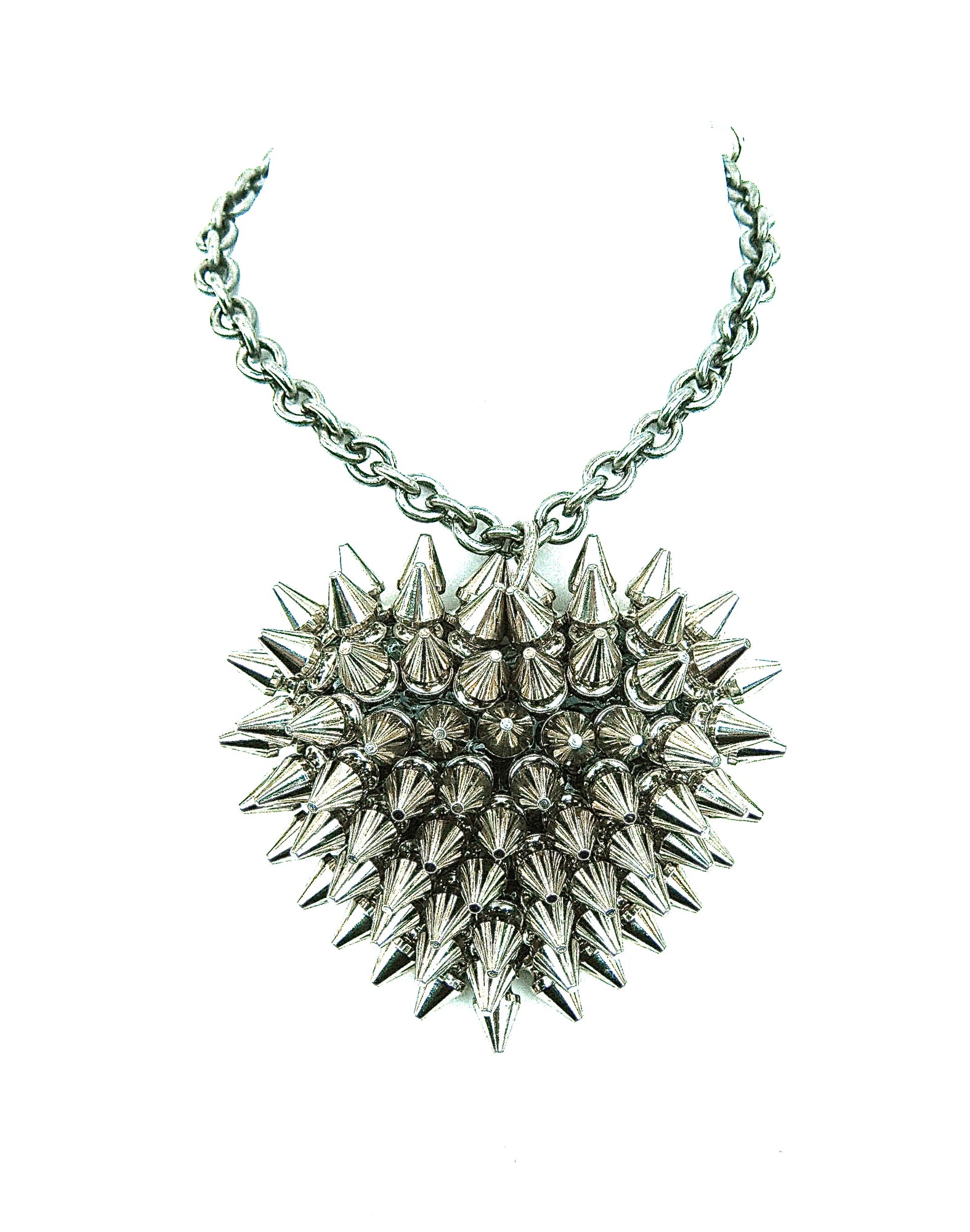 LARGE SILVER SPIKE HEART NECKLACE: GASOLINE GLAMOUR