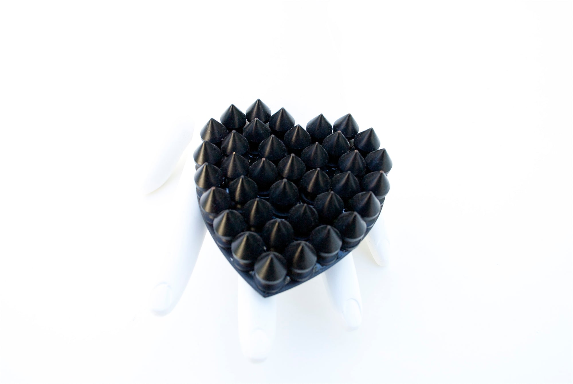 FLAT BLACK LARGE SPIKE HEART RING: GASOLINE GLAMOUR
