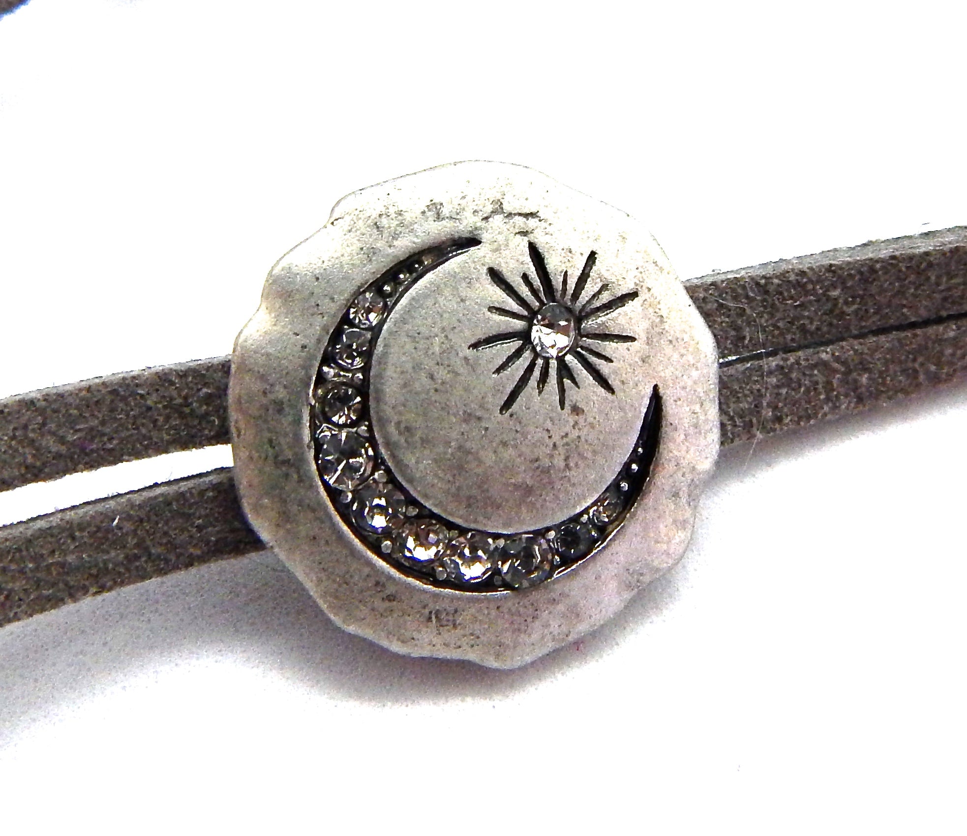 • 18MM ANTIQUE SILVER FINISH MOON & STAR DISC