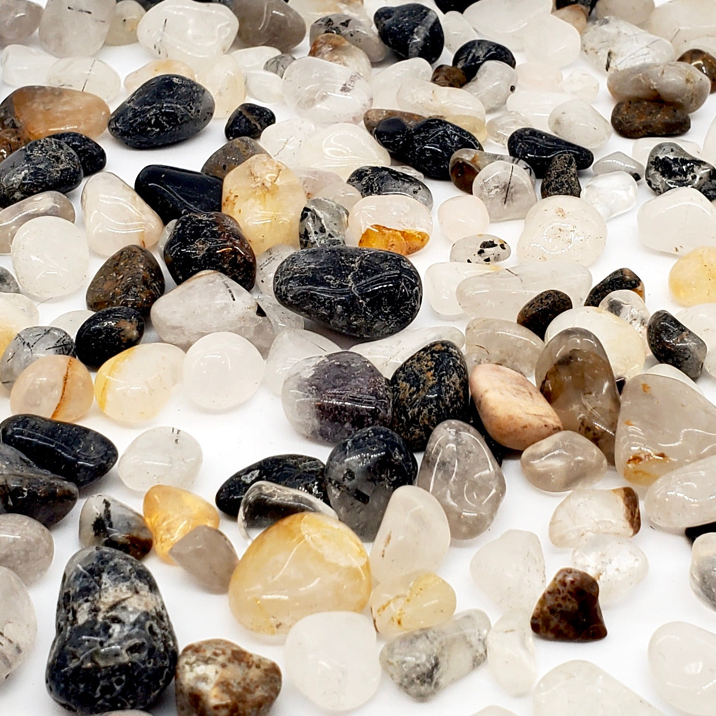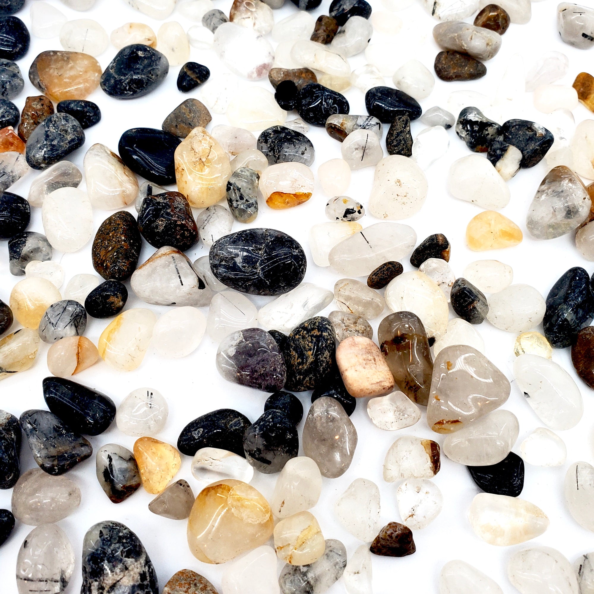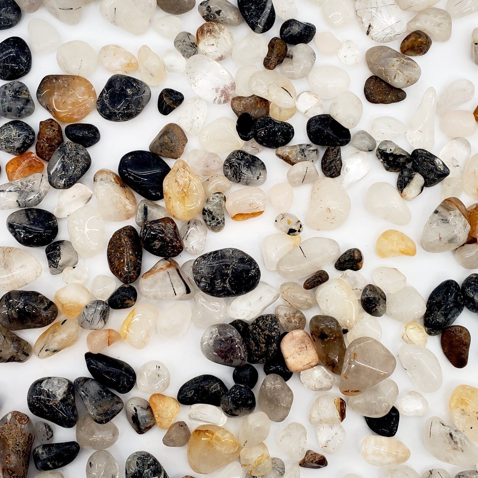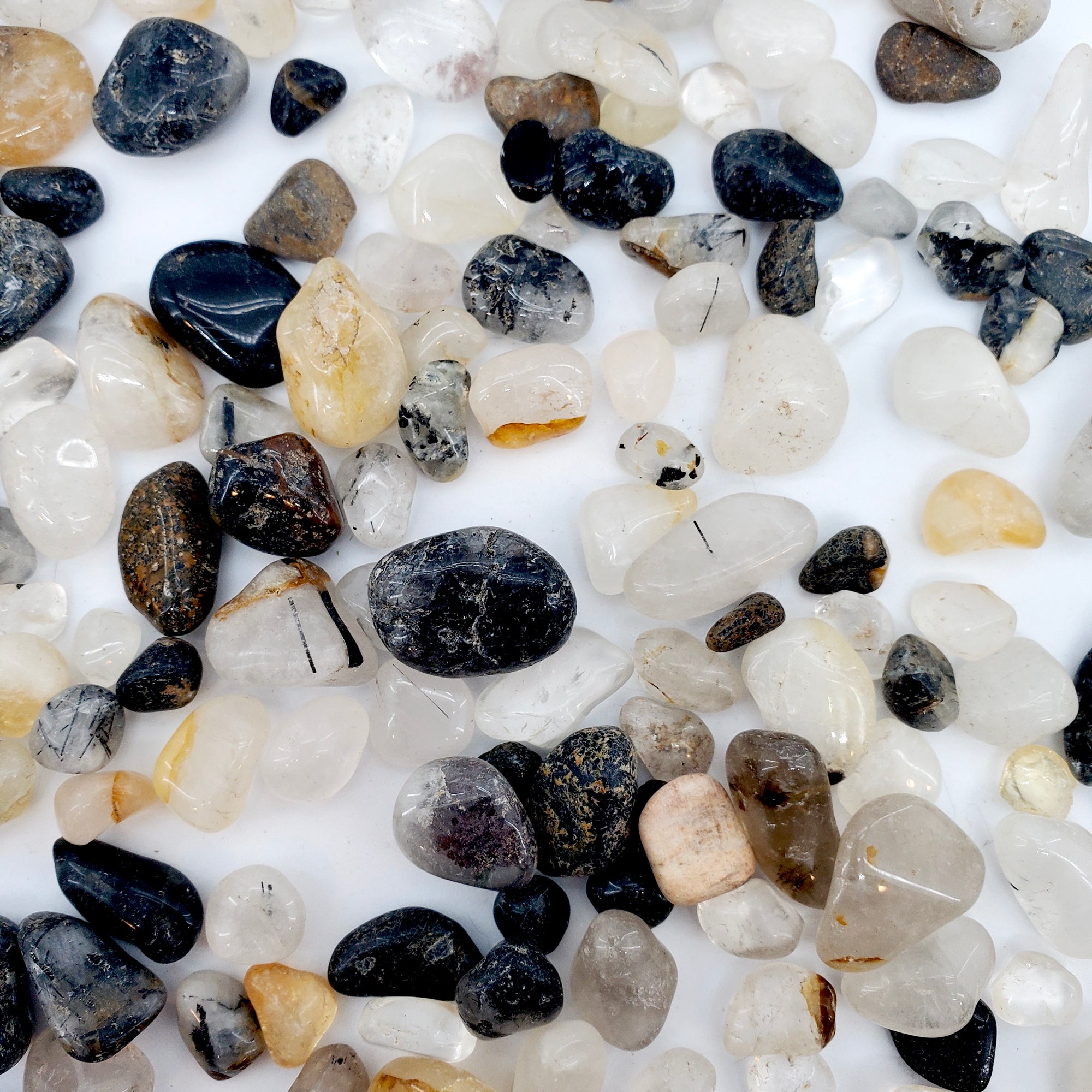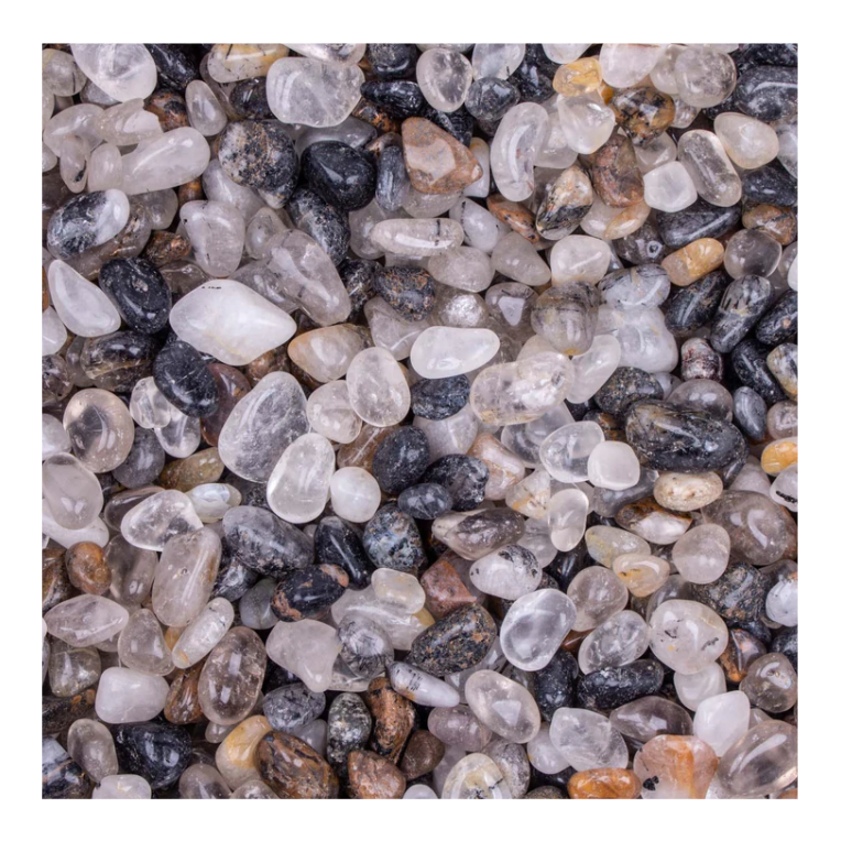 NATURAL TUMBLED QUARTZ WITH TOURMALINE INCLUSIONS
