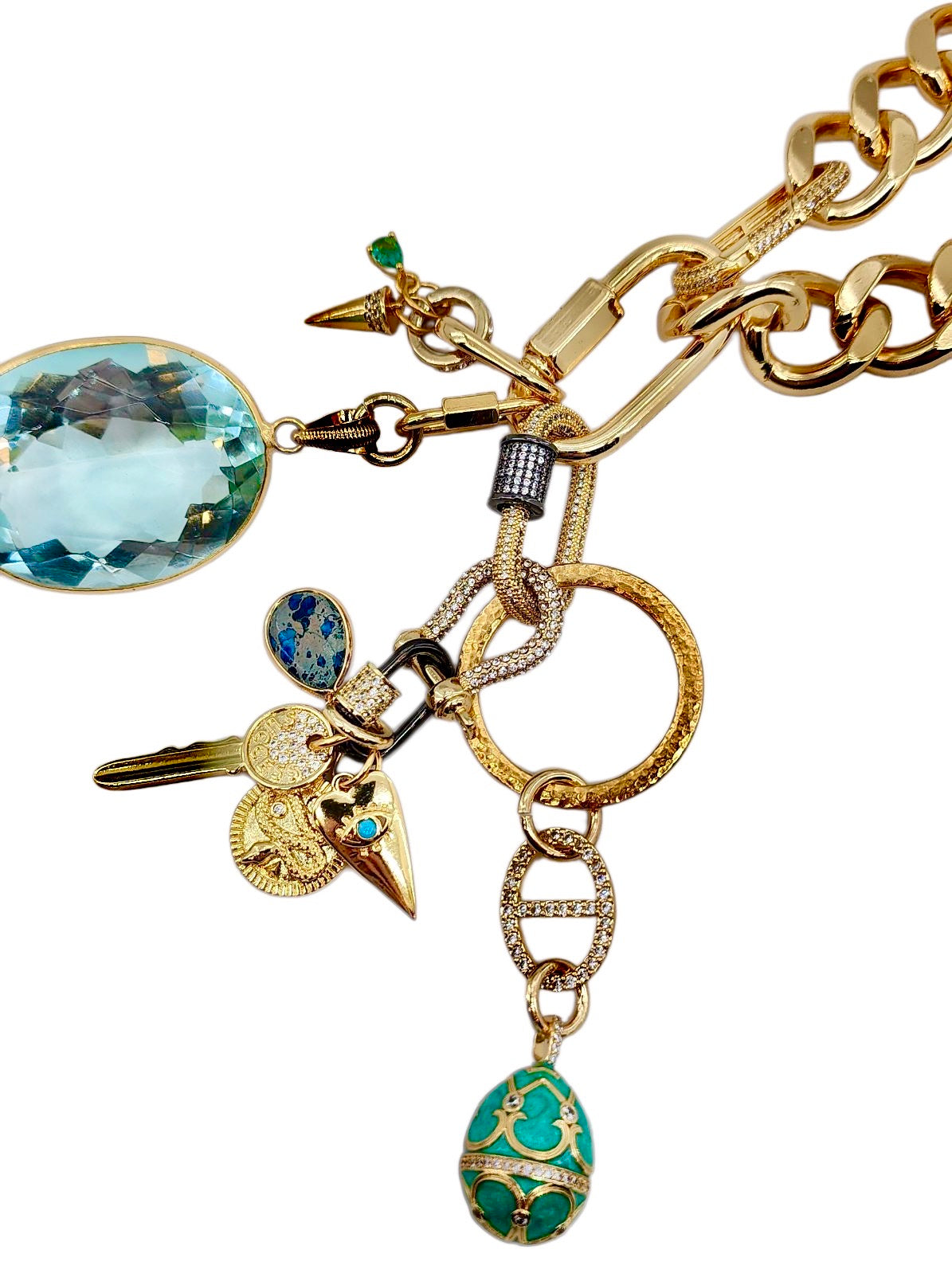 • 35MM 18K GOLD FILLED CZ MICRO PAVE KEY CHARM