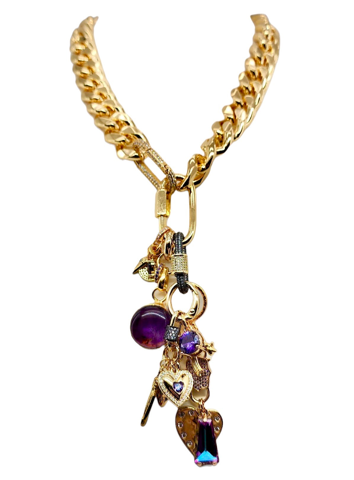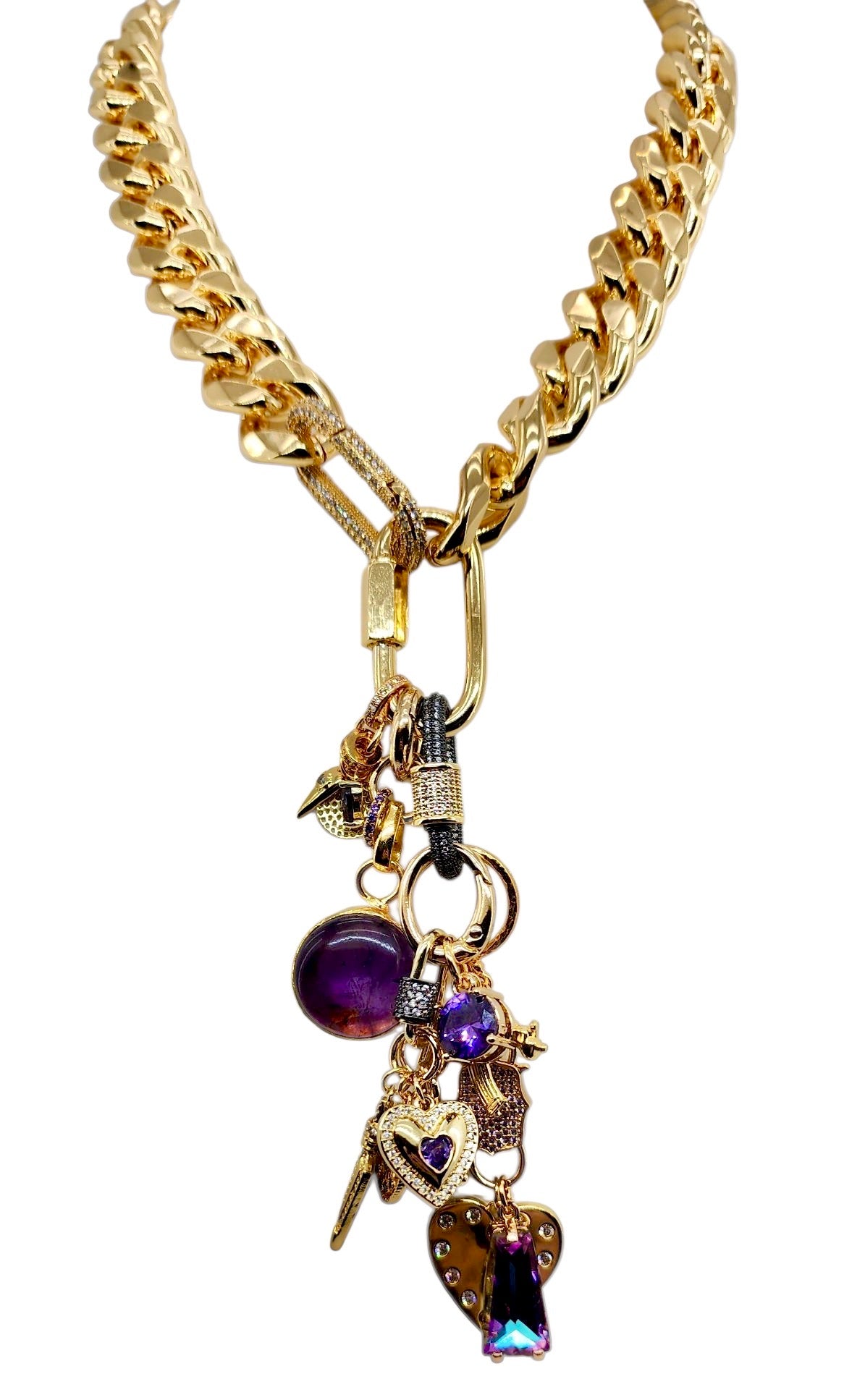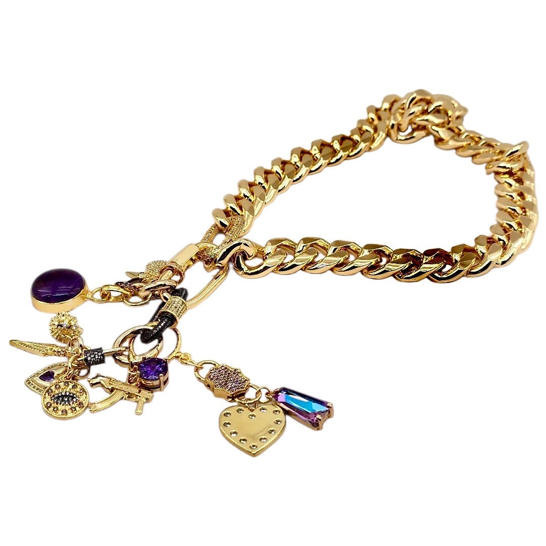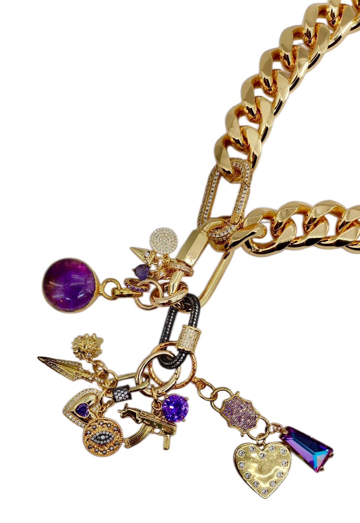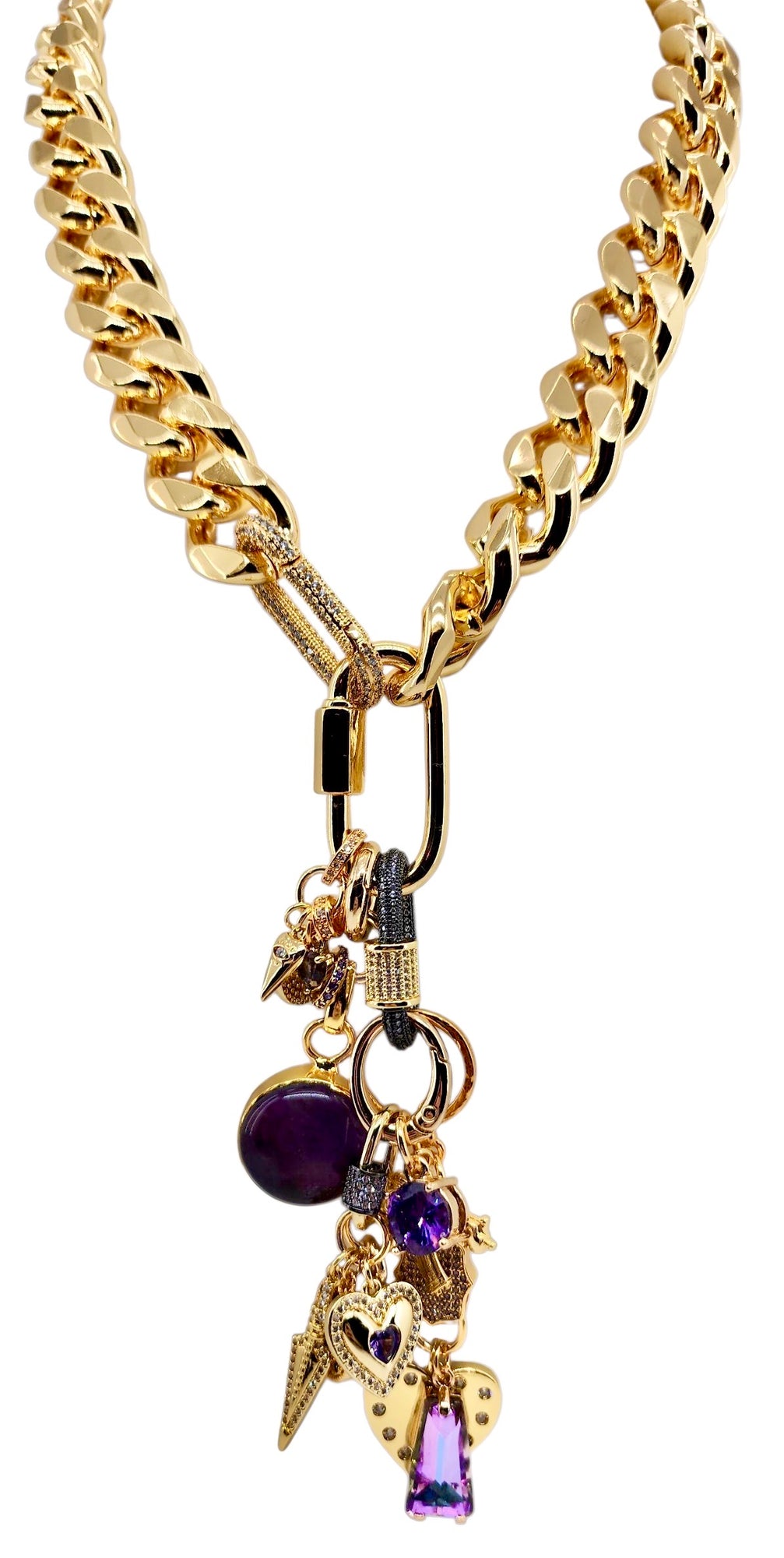 26MM 24K GOLD FILLED PURPLE CZ MICRO PAVE INTERLOCKING DOUBLE LOCK CLASP