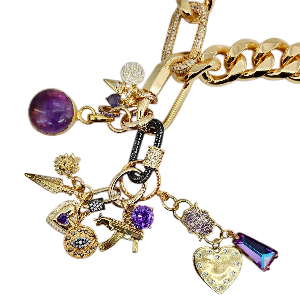 9MM 18K GOLD FILLED PURPLE CZ MINI HEART GEM STONE CHARM