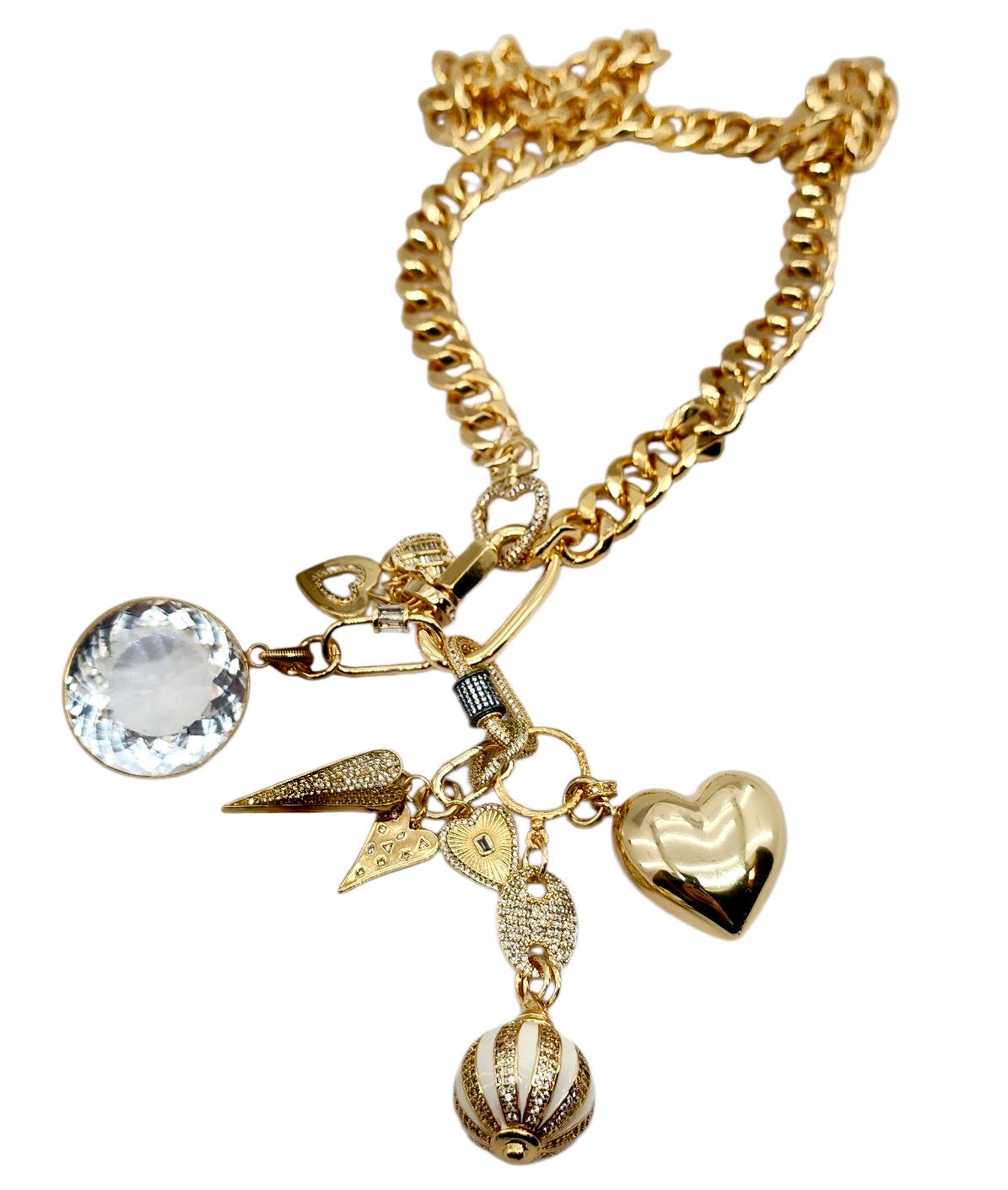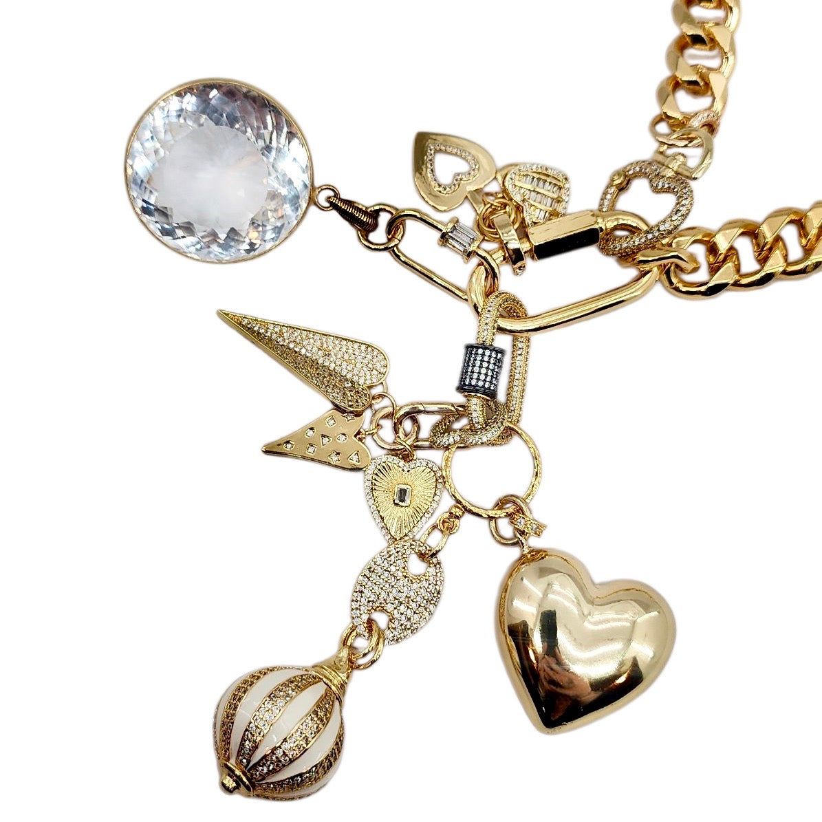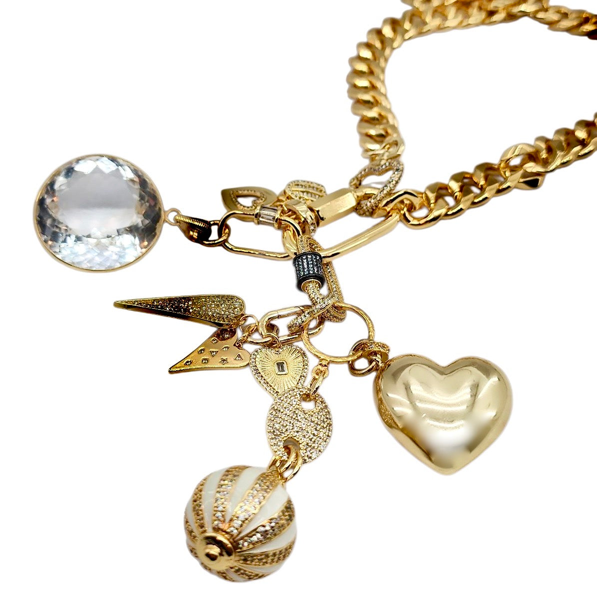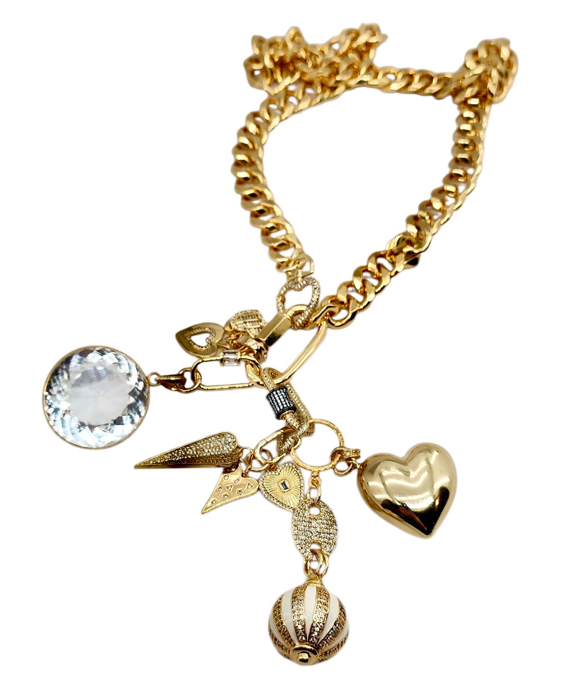 CAN BE WORN AS A NECKLACE, BRACELET AND OR BAG CHARMS. UNCLIP TO RE-ARRANGE AND OR MIX & MATCH.