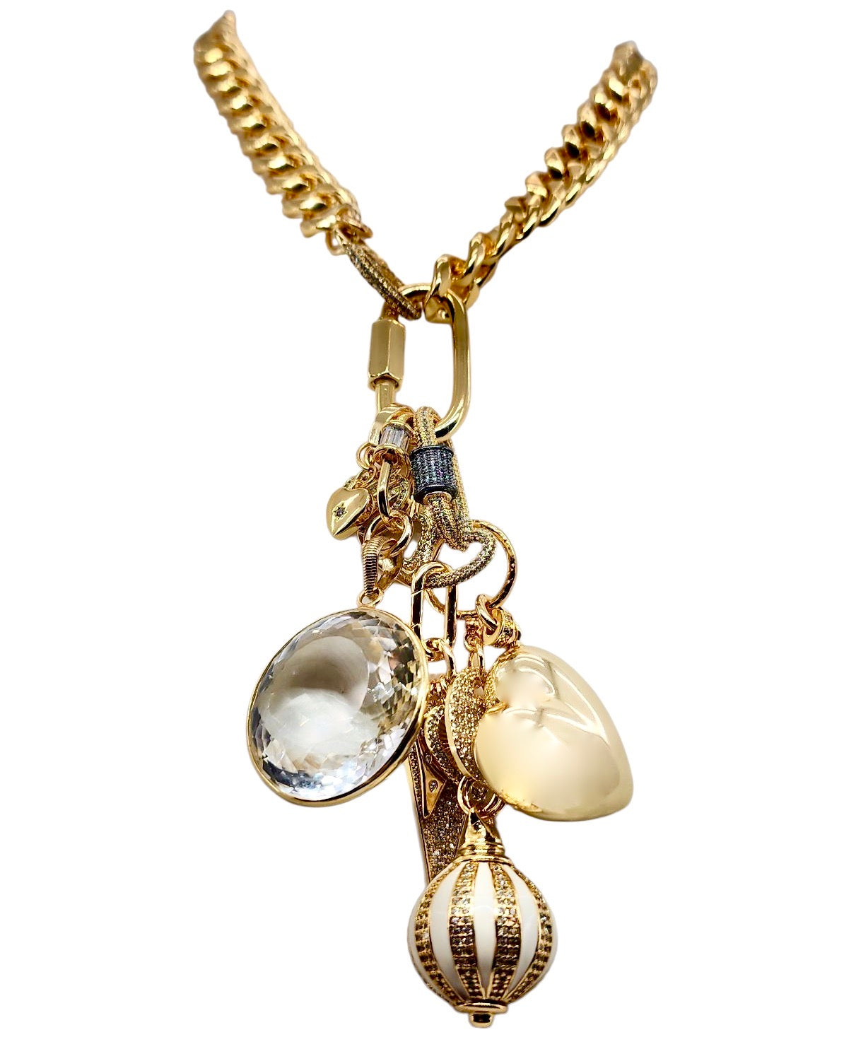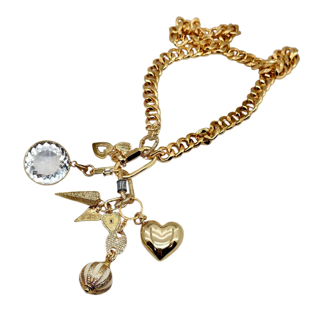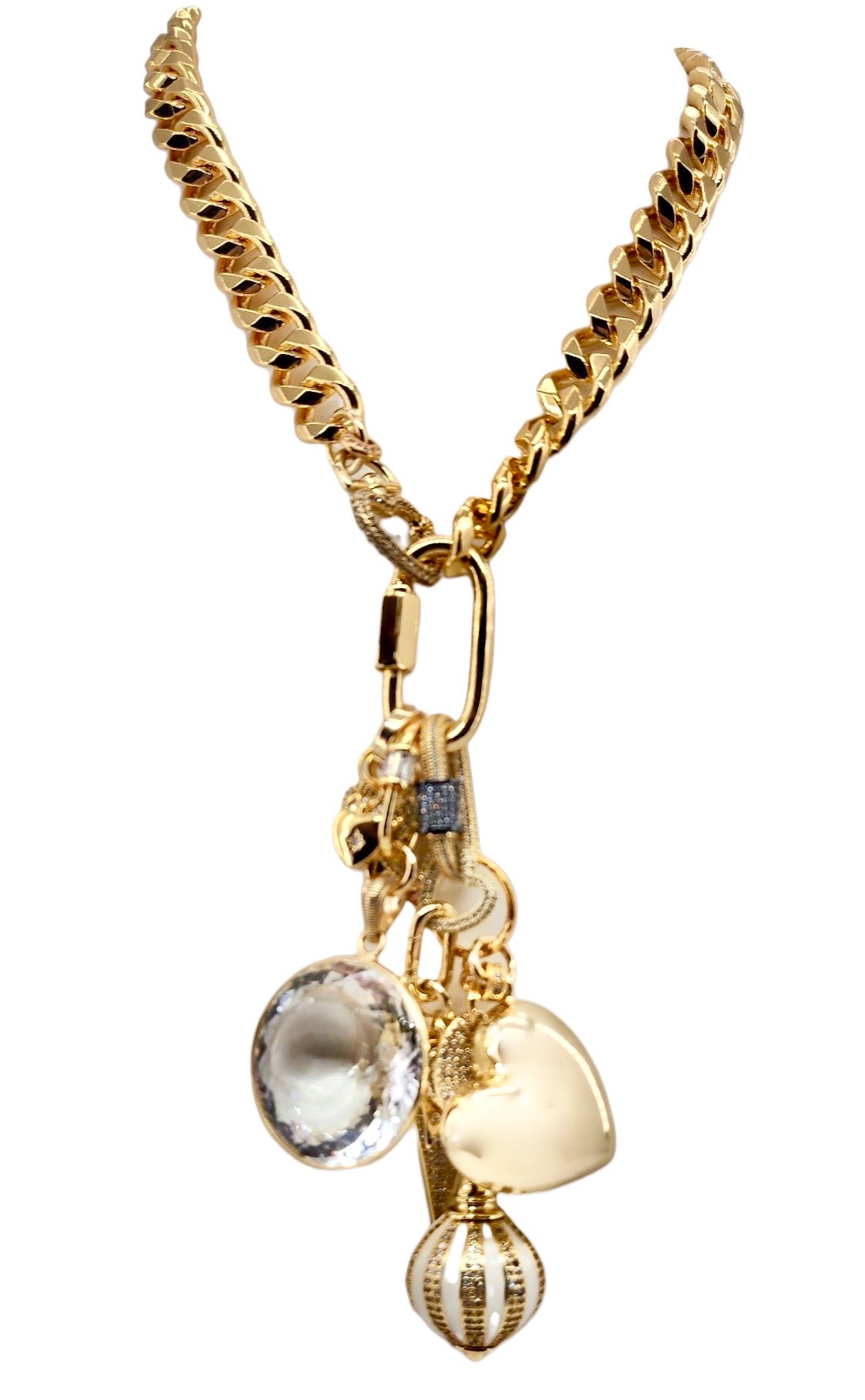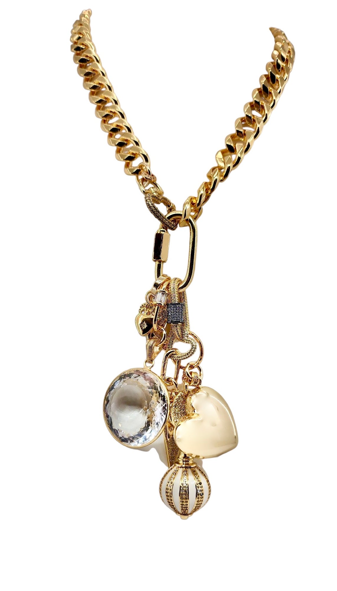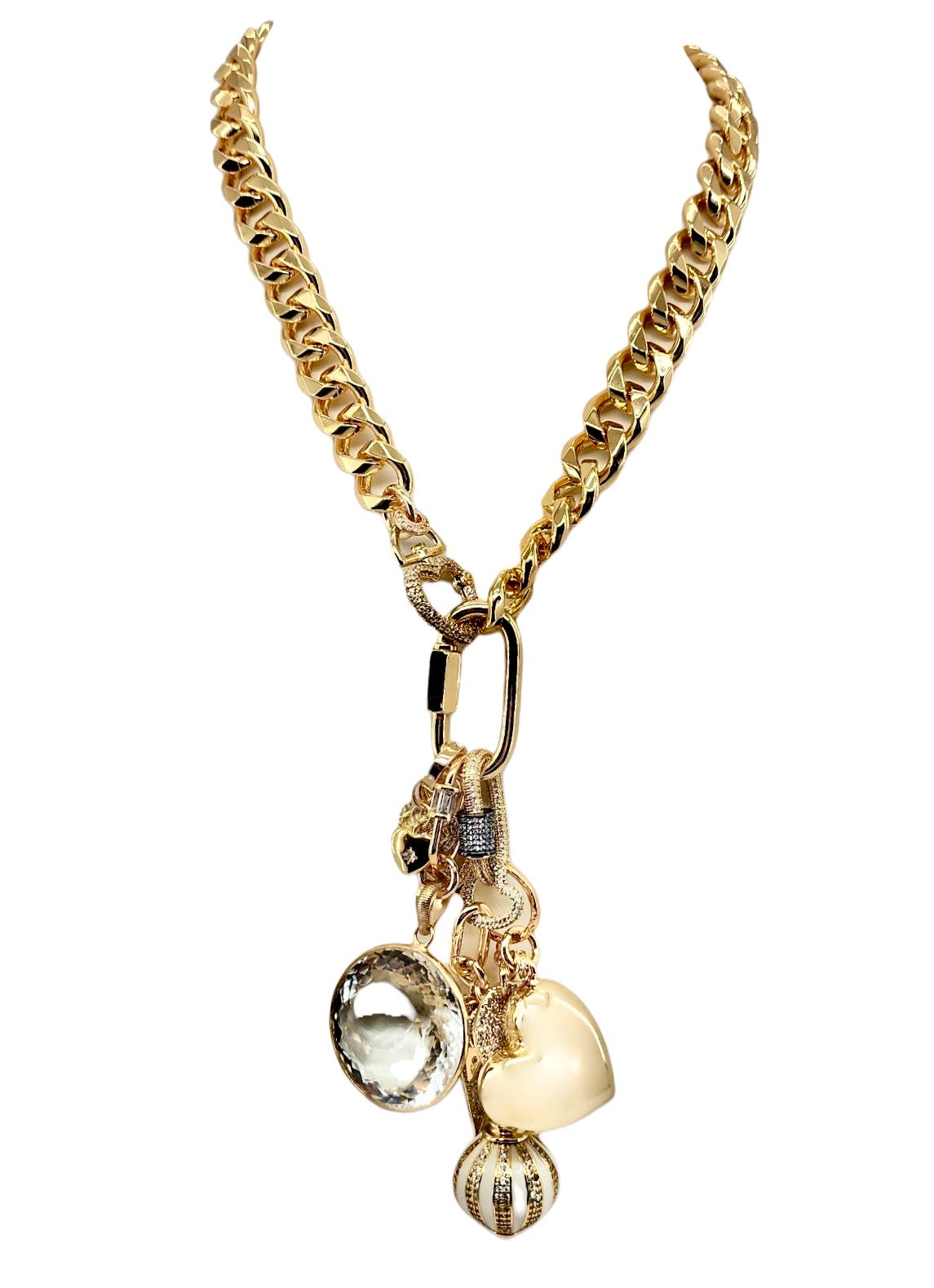 CAN BE WORN AS A NECKLACE, BRACELET AND OR BAG CHARMS. UNCLIP TO RE-ARRANGE AND OR MIX & MATCH.