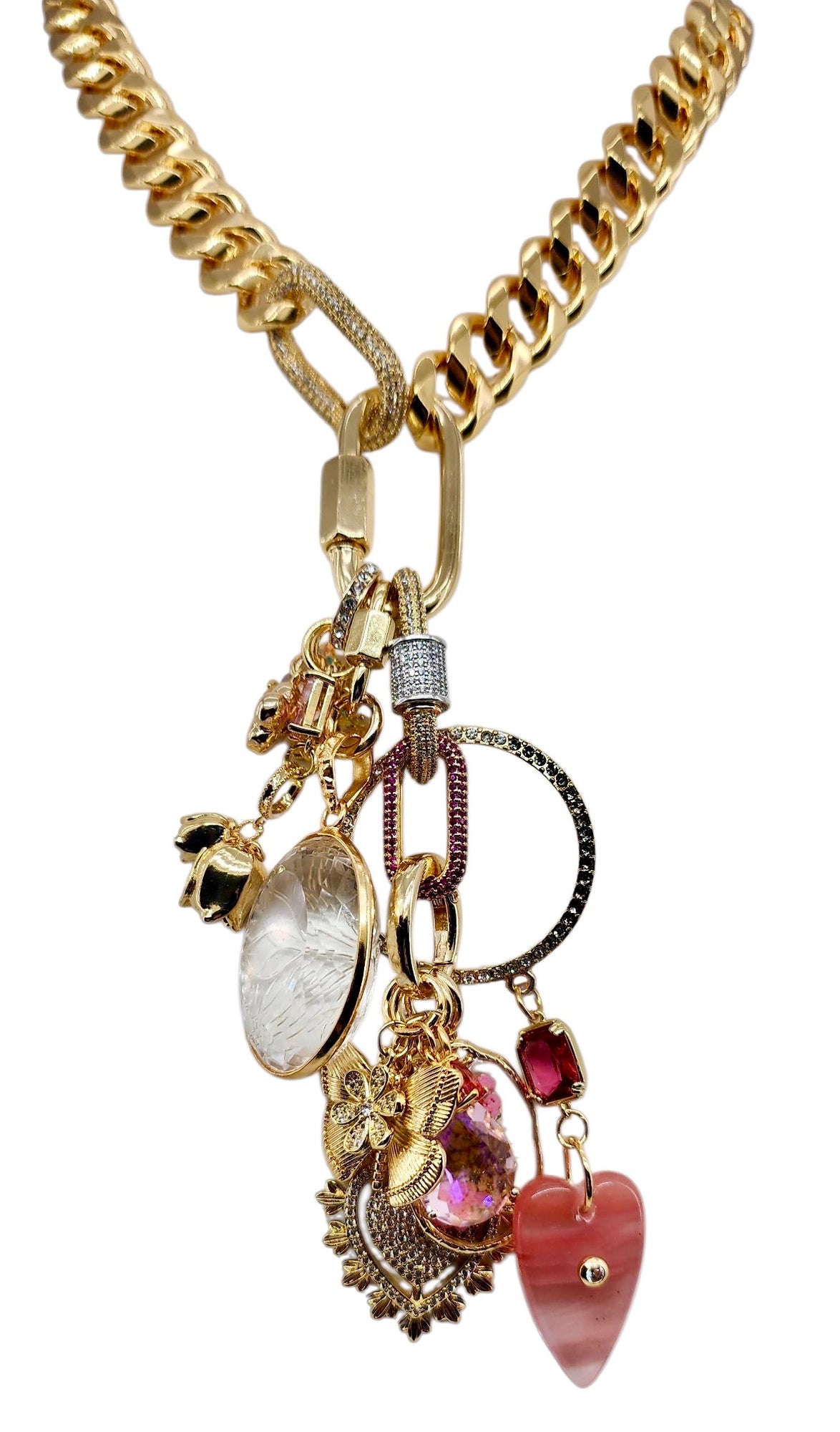 • 18MM 18K GOLD FILLED WATERMELON QUARTZ WITH CZ HEART CHARM