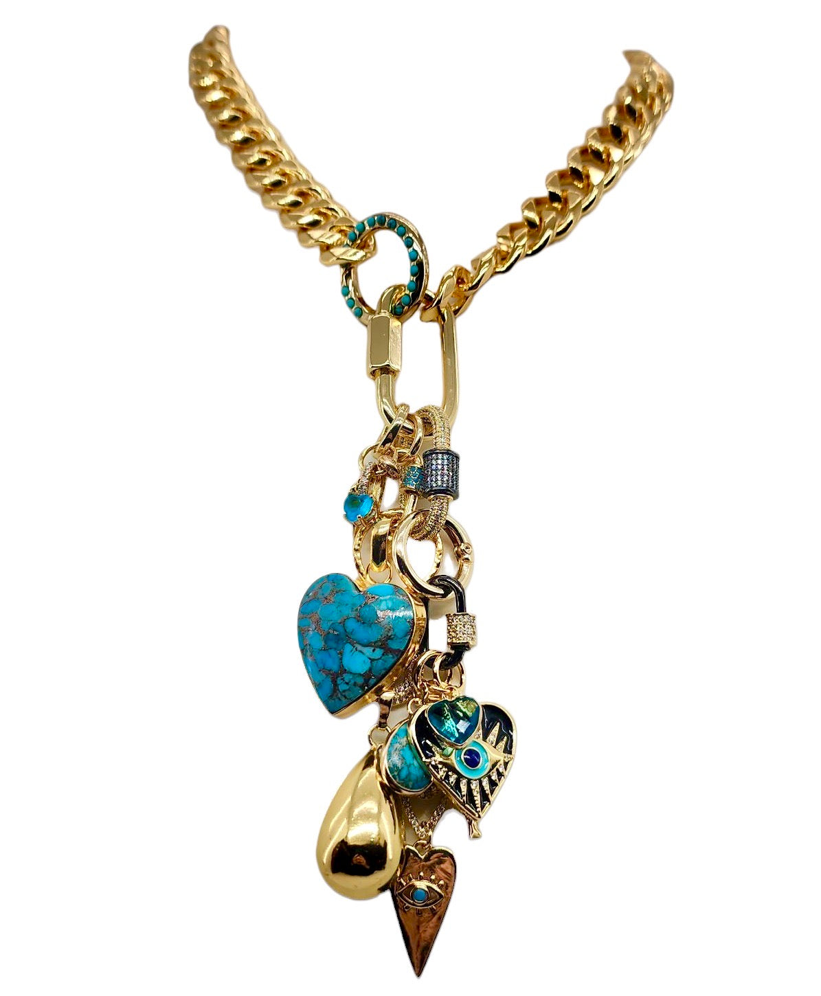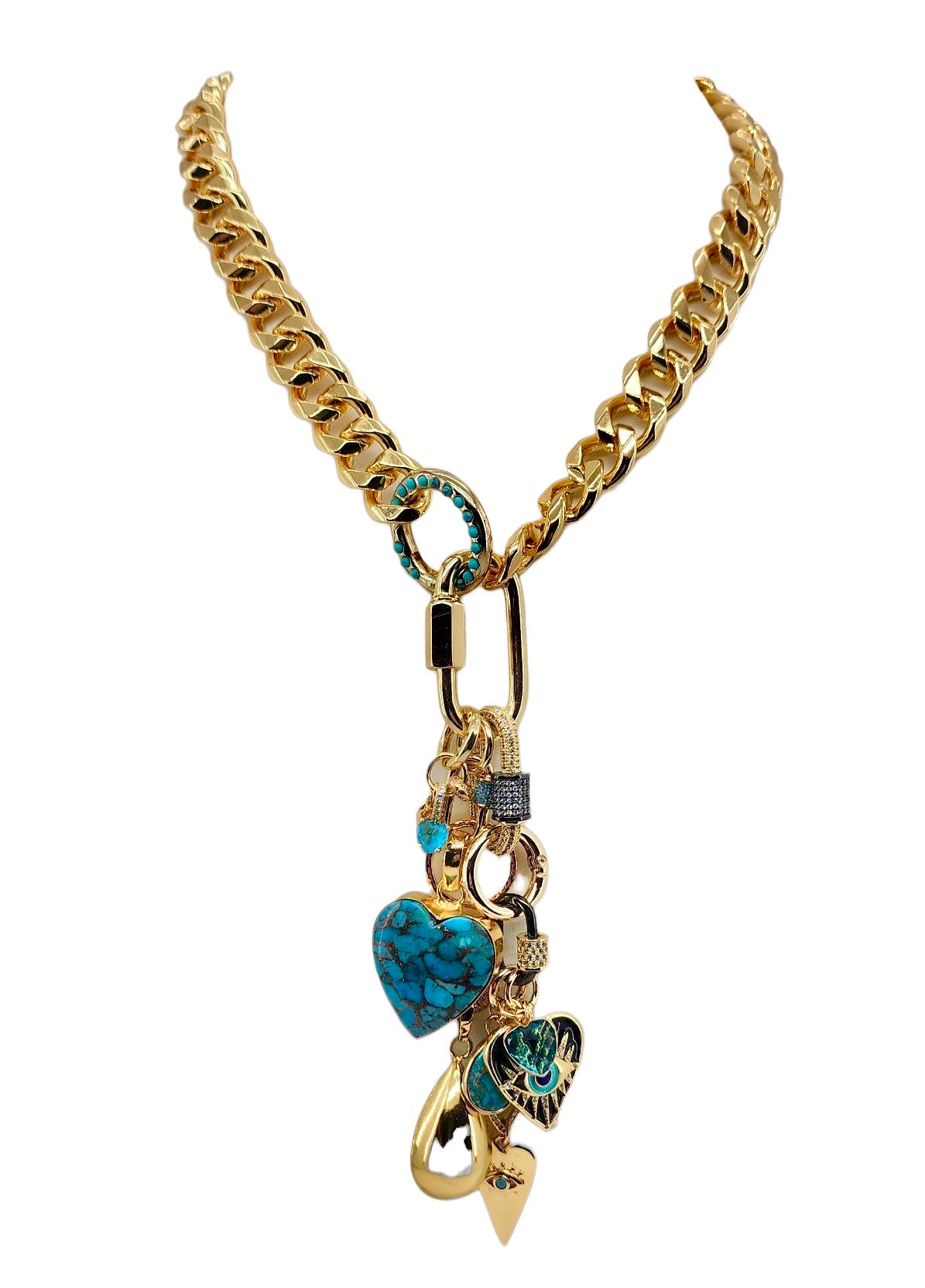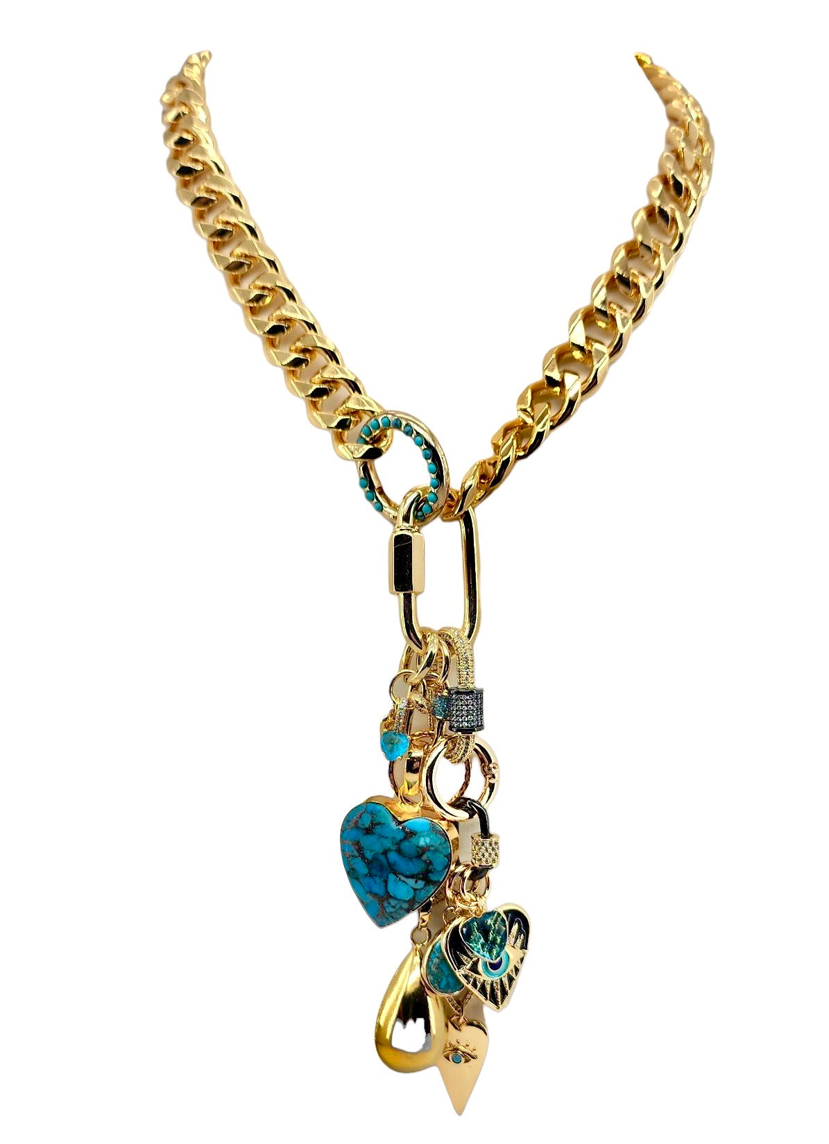 32MM 18K GOLD PLATED COPPER TURQUOISE HEART GEM