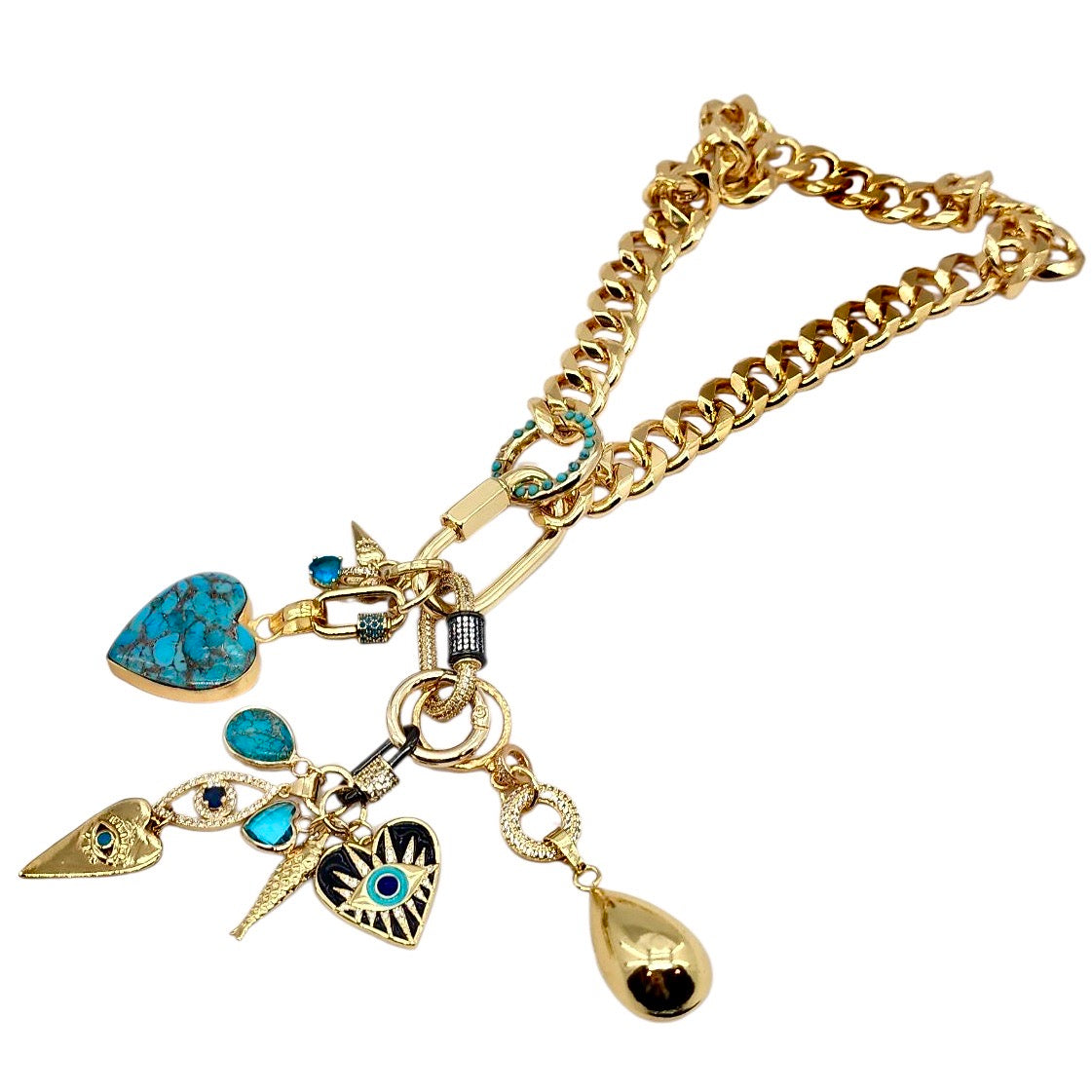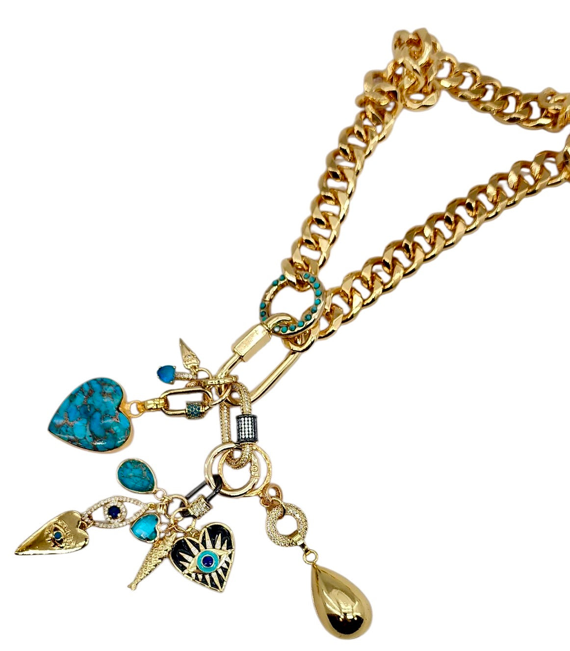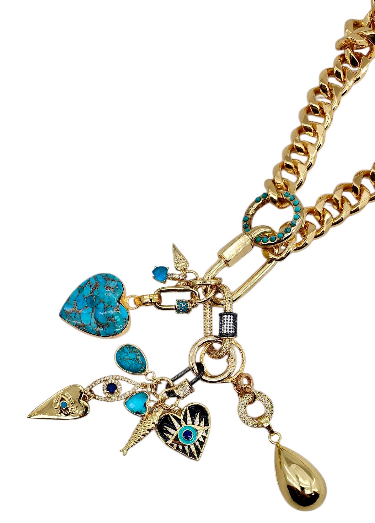 32MM 18K GOLD PLATED COPPER TURQUOISE HEART GEM