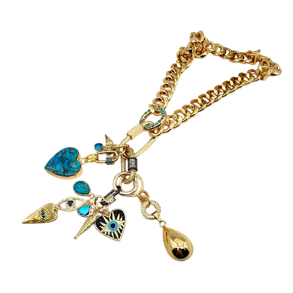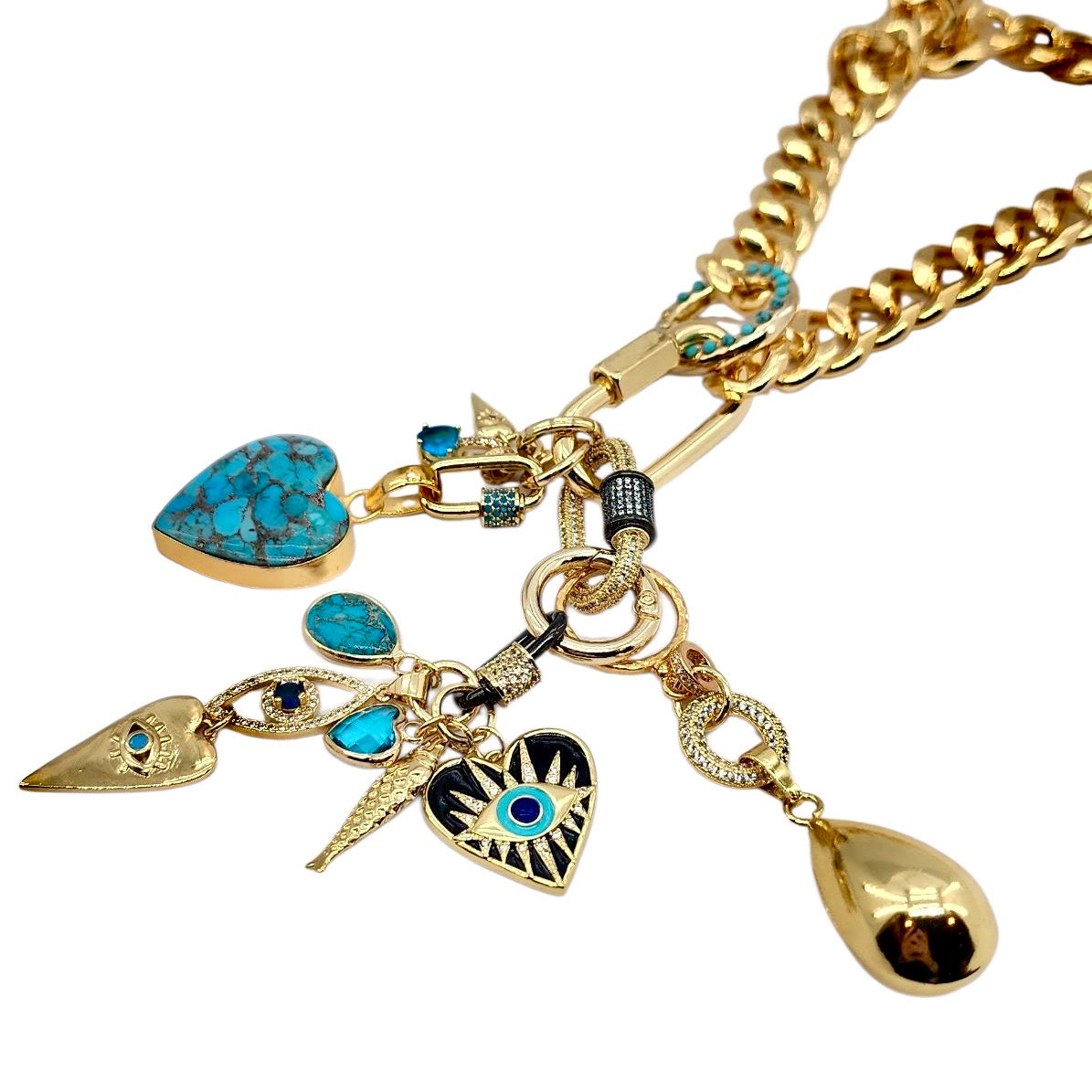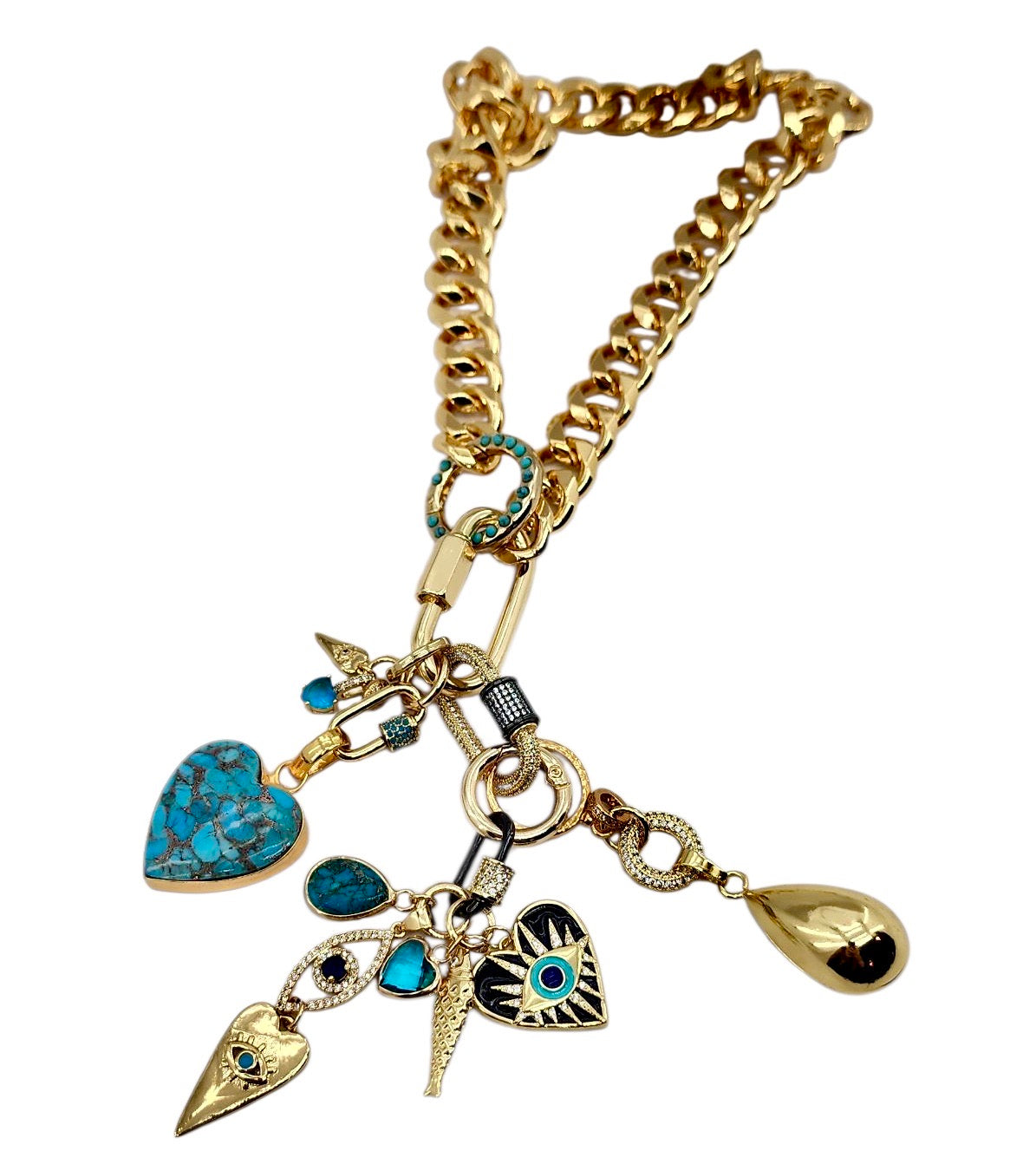 CUBAN HEELED KILLER COPPER TURQUOISE EVIL EYE🐟🧿💧