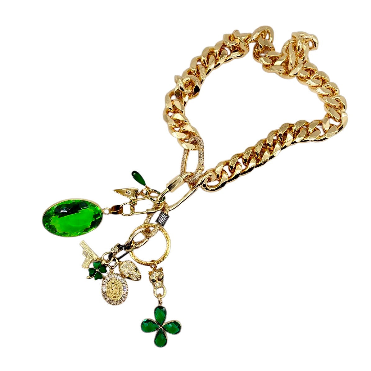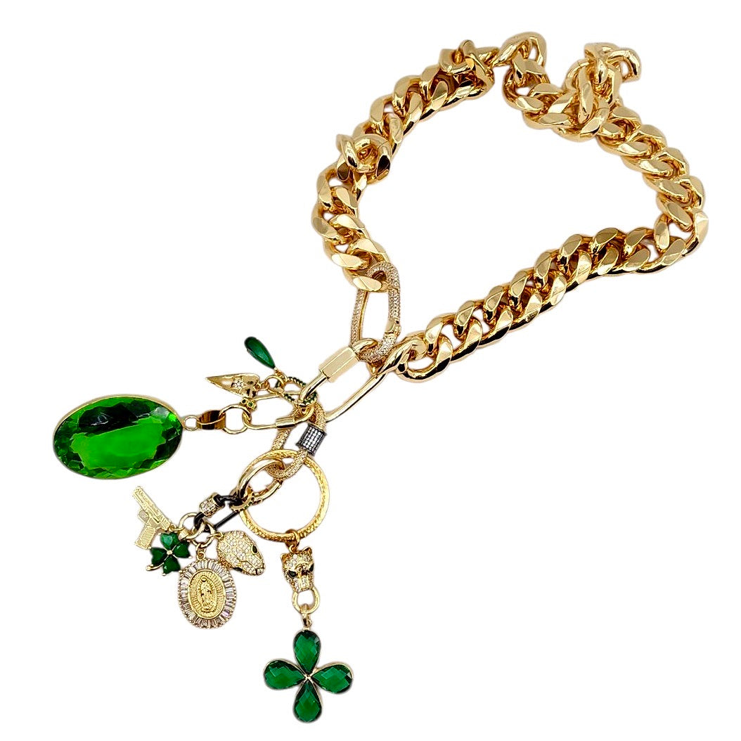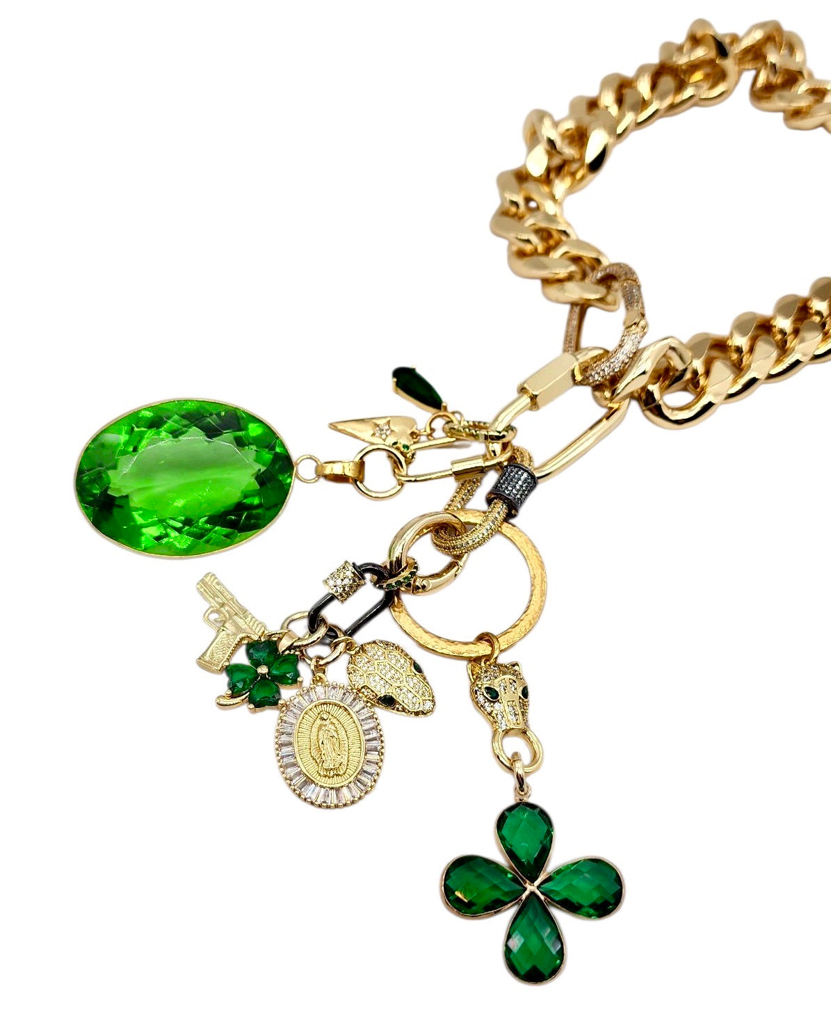 • 17MM 24K GOLD FILLED GREEN CZ CONNECTOR LINK
