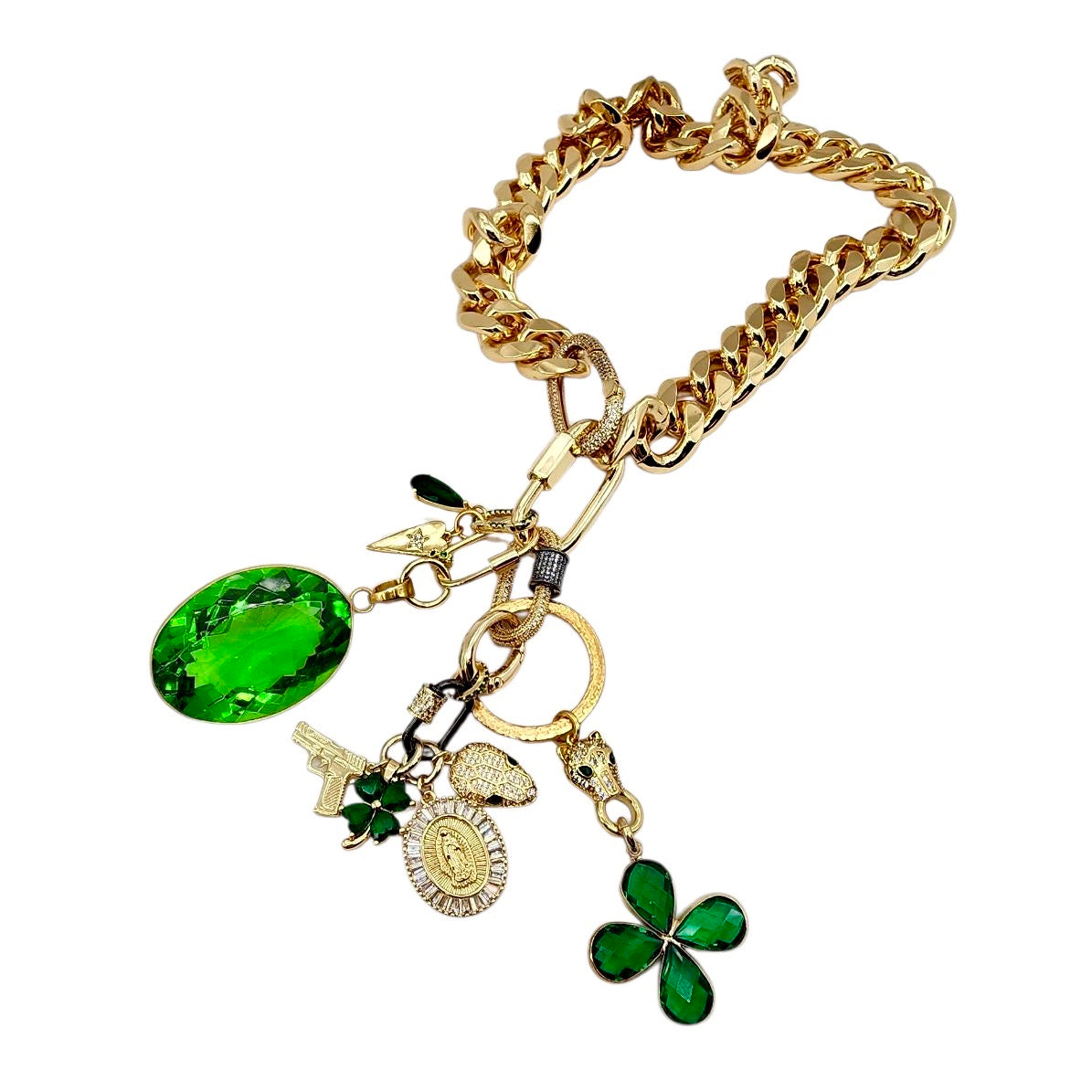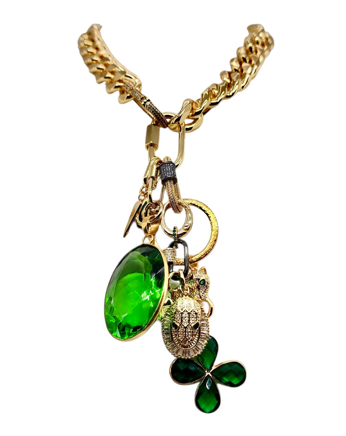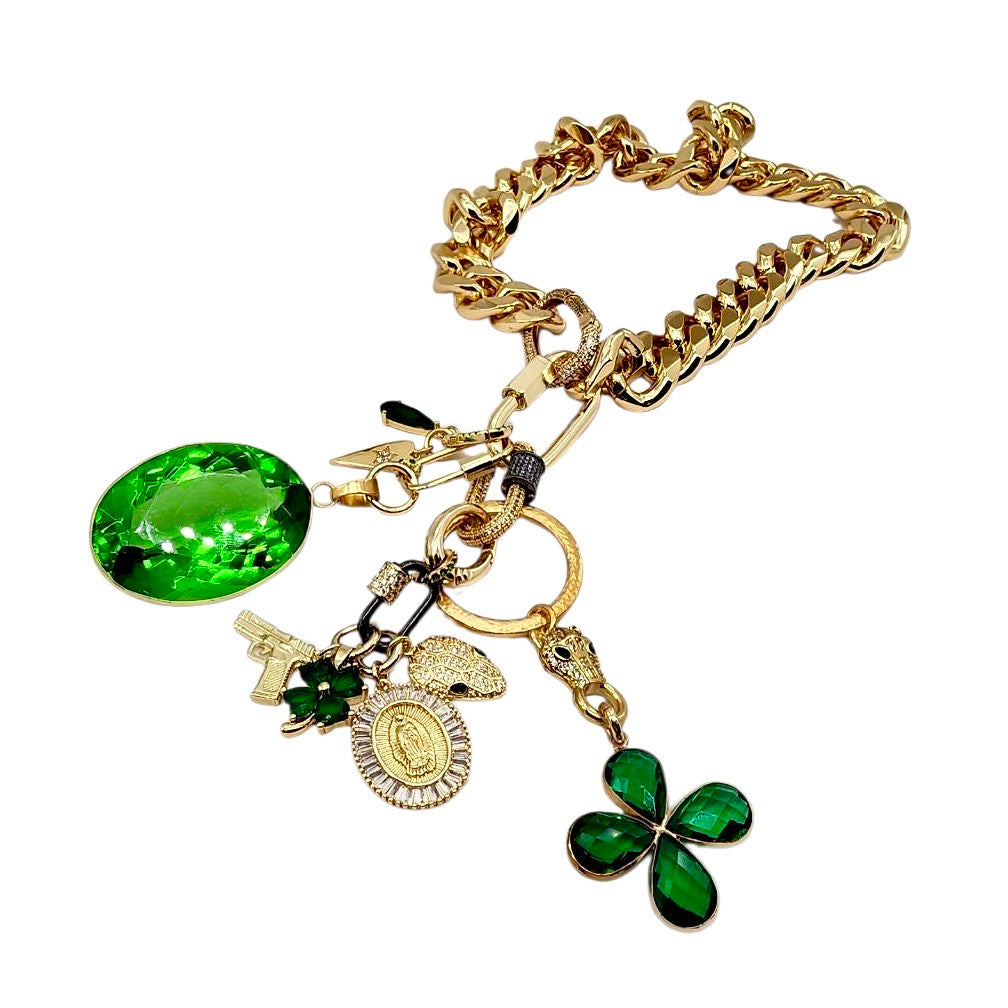 • 30MM GOLD TRIMMED GREEN CRYSTAL FLOWER CHARM