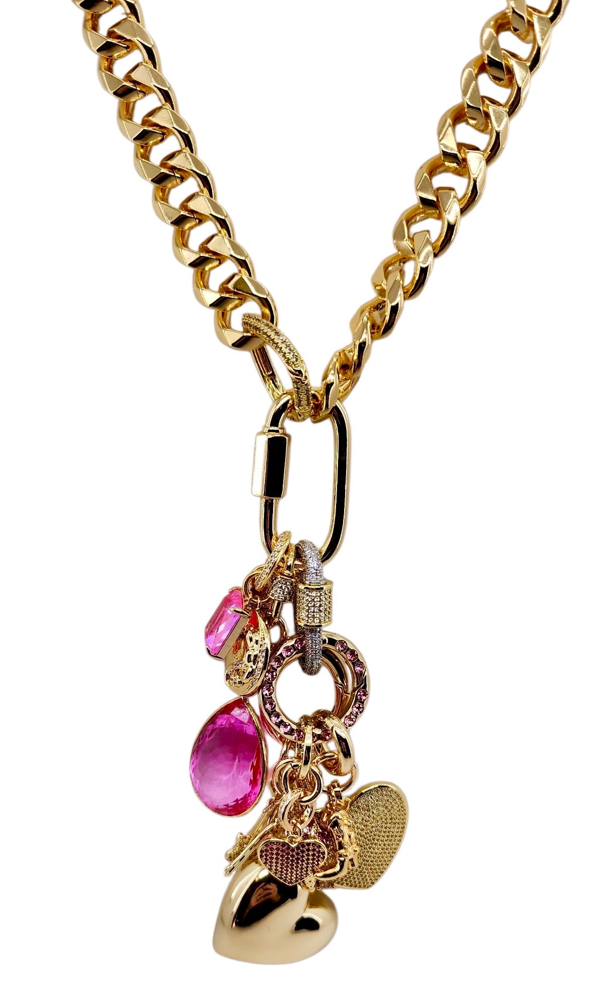 26MM SILVER & GOLD TONE CZ PAVE CARABINER