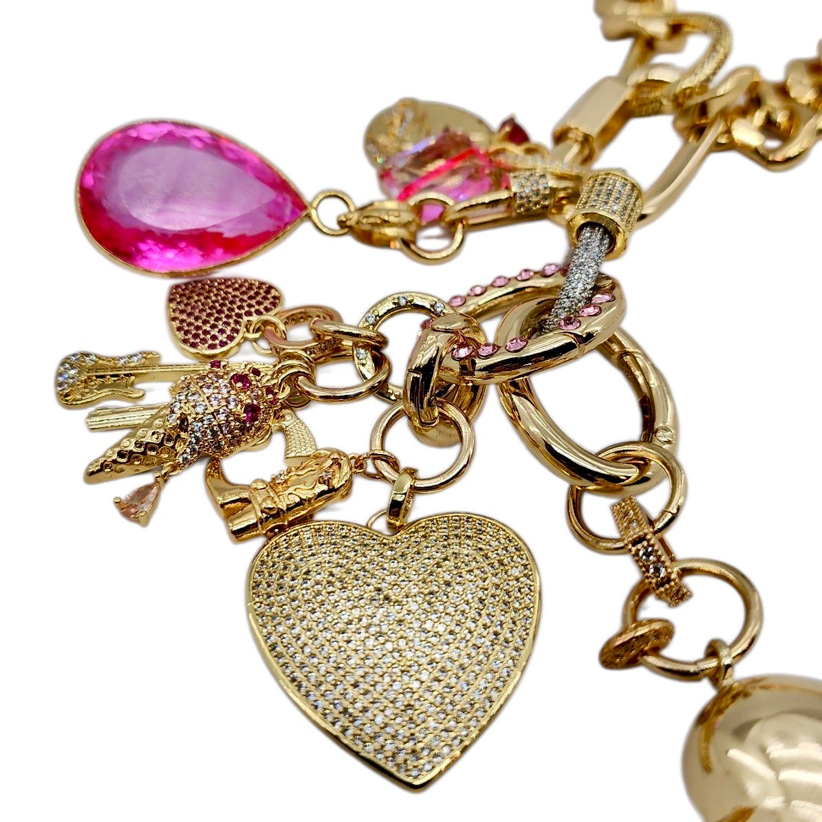 18MM 18K GOLD FILLED PINK CZ PAVE CHARM