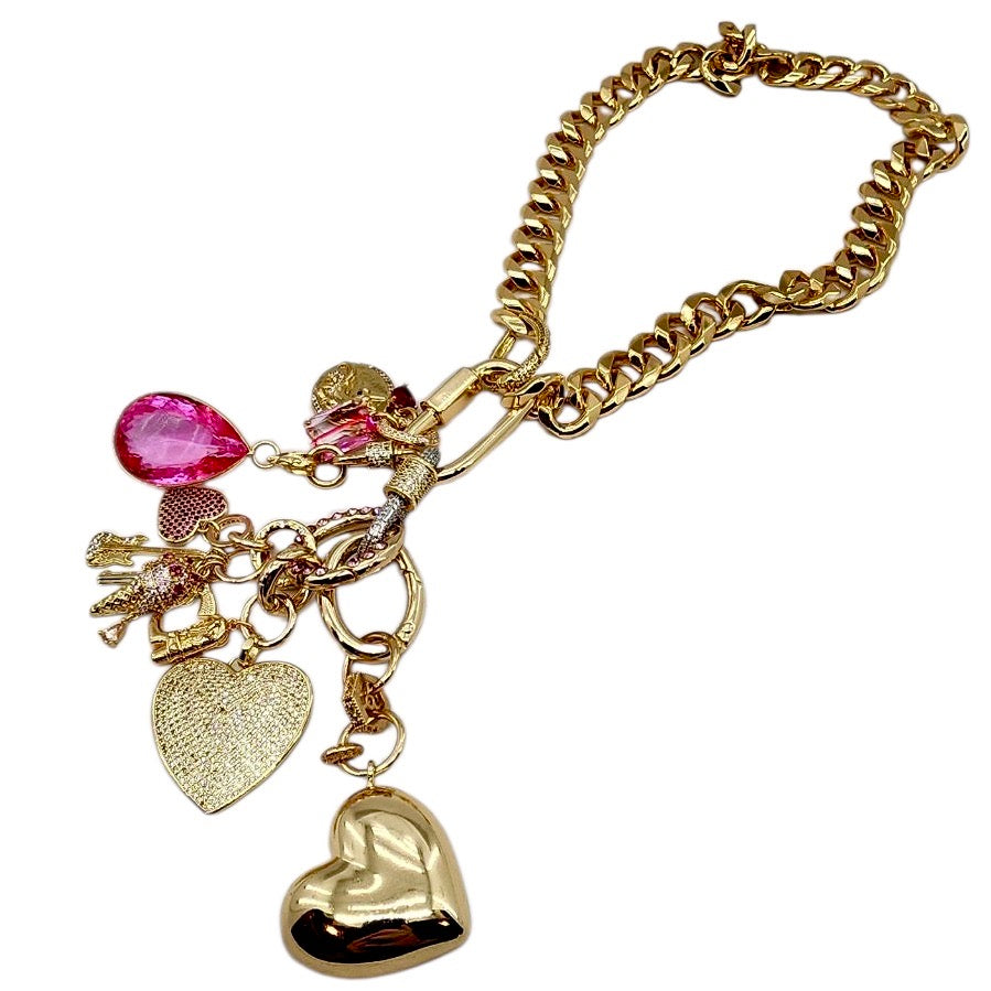 9MM 18K GOLD FILLED CZ PINK MINI HEART GEM STONE CHARM