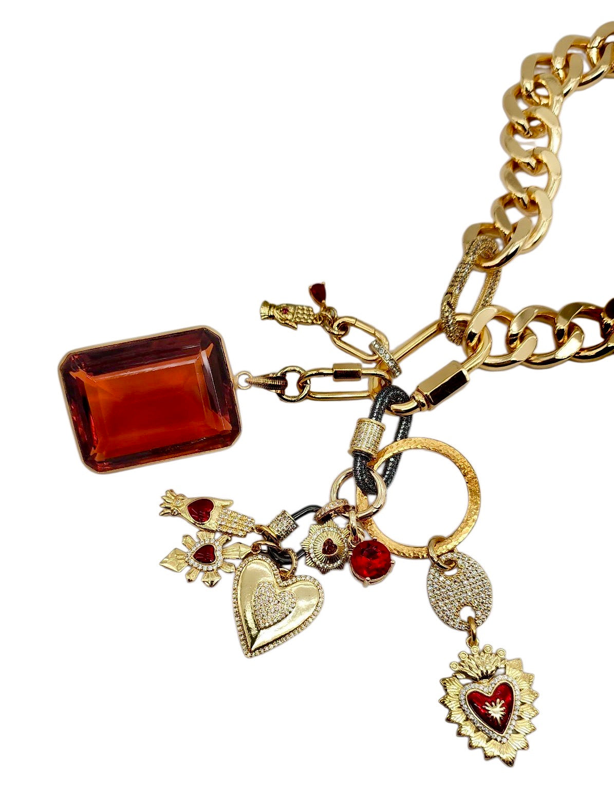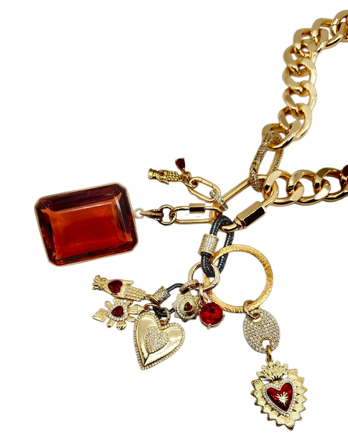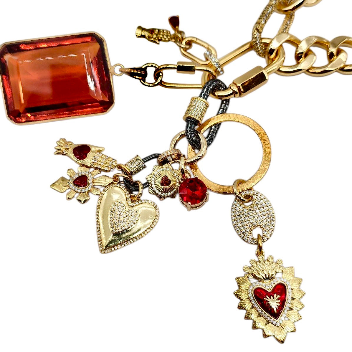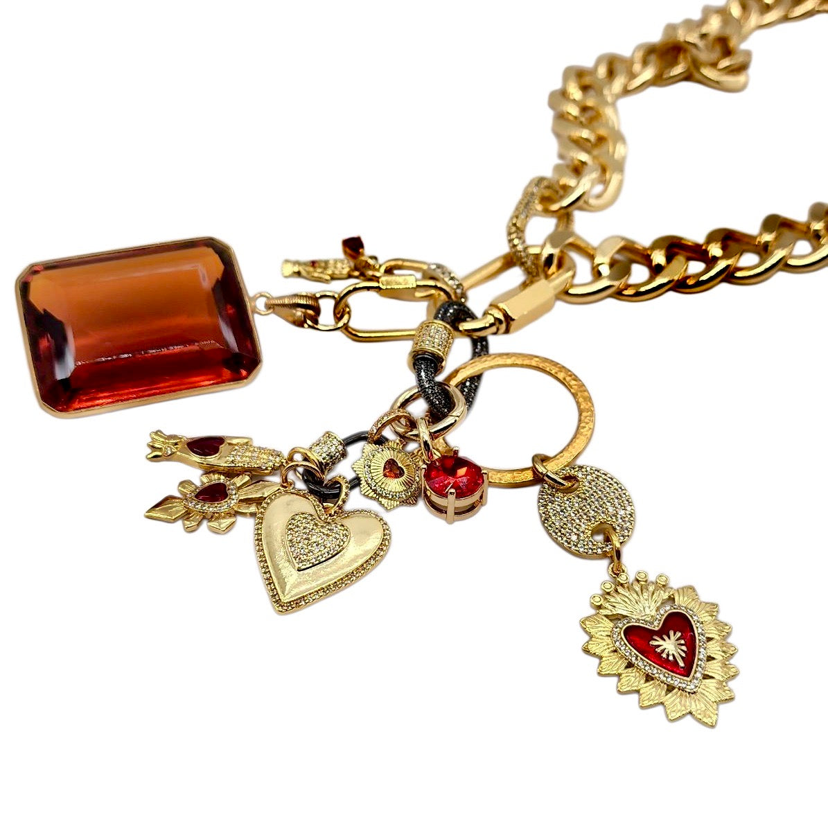 • 30MM GOLD & RED PLATED BRASS CZ HEART CHARM