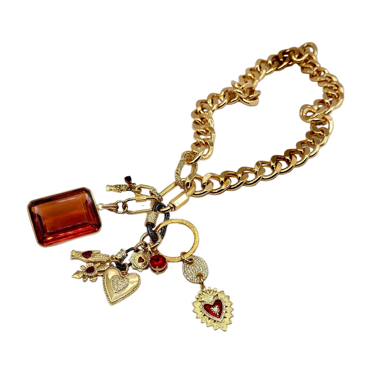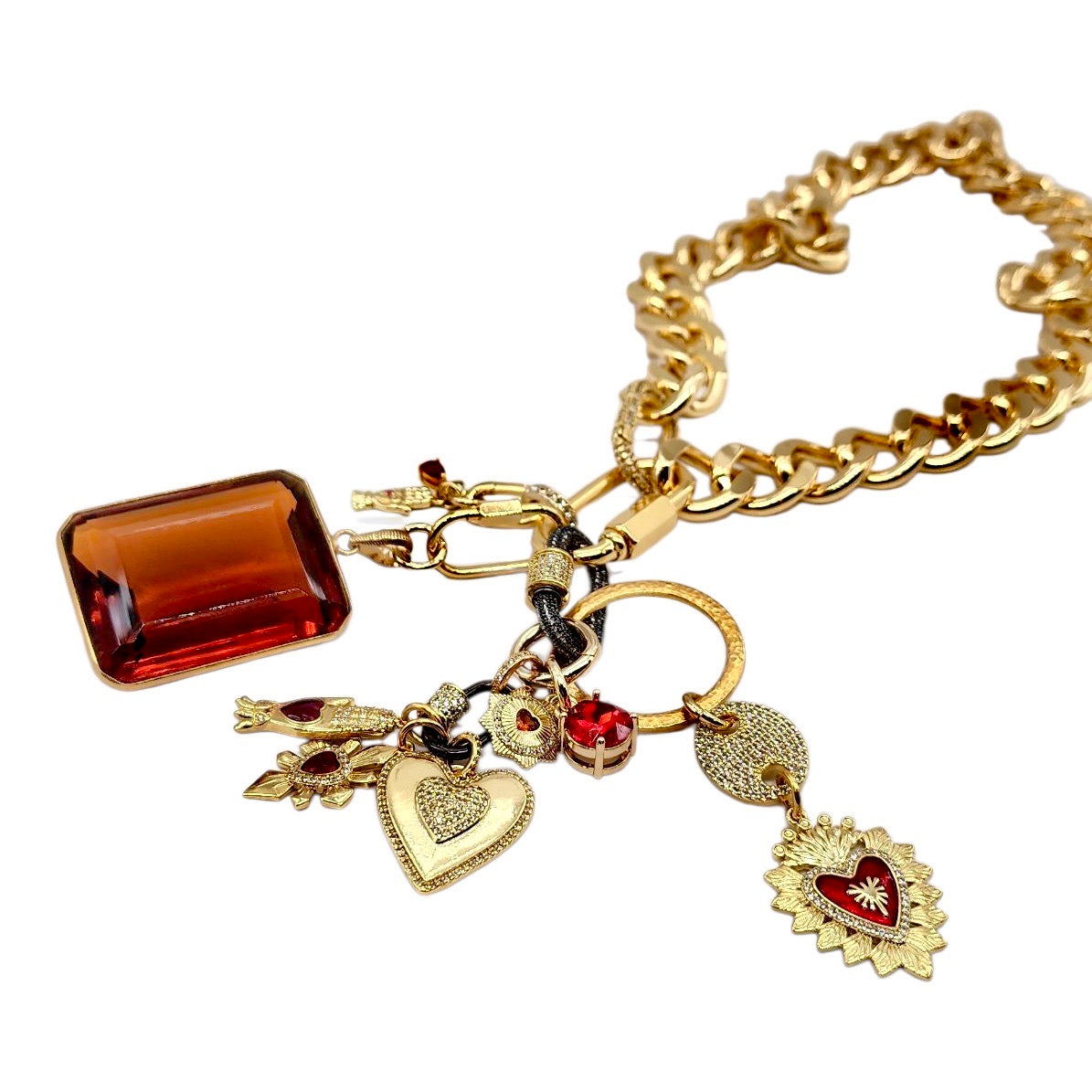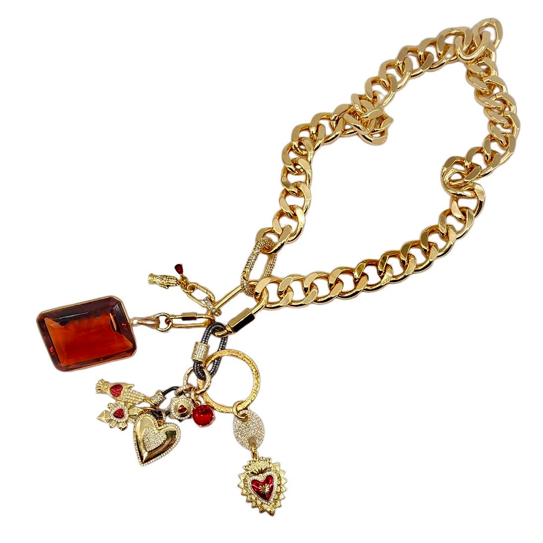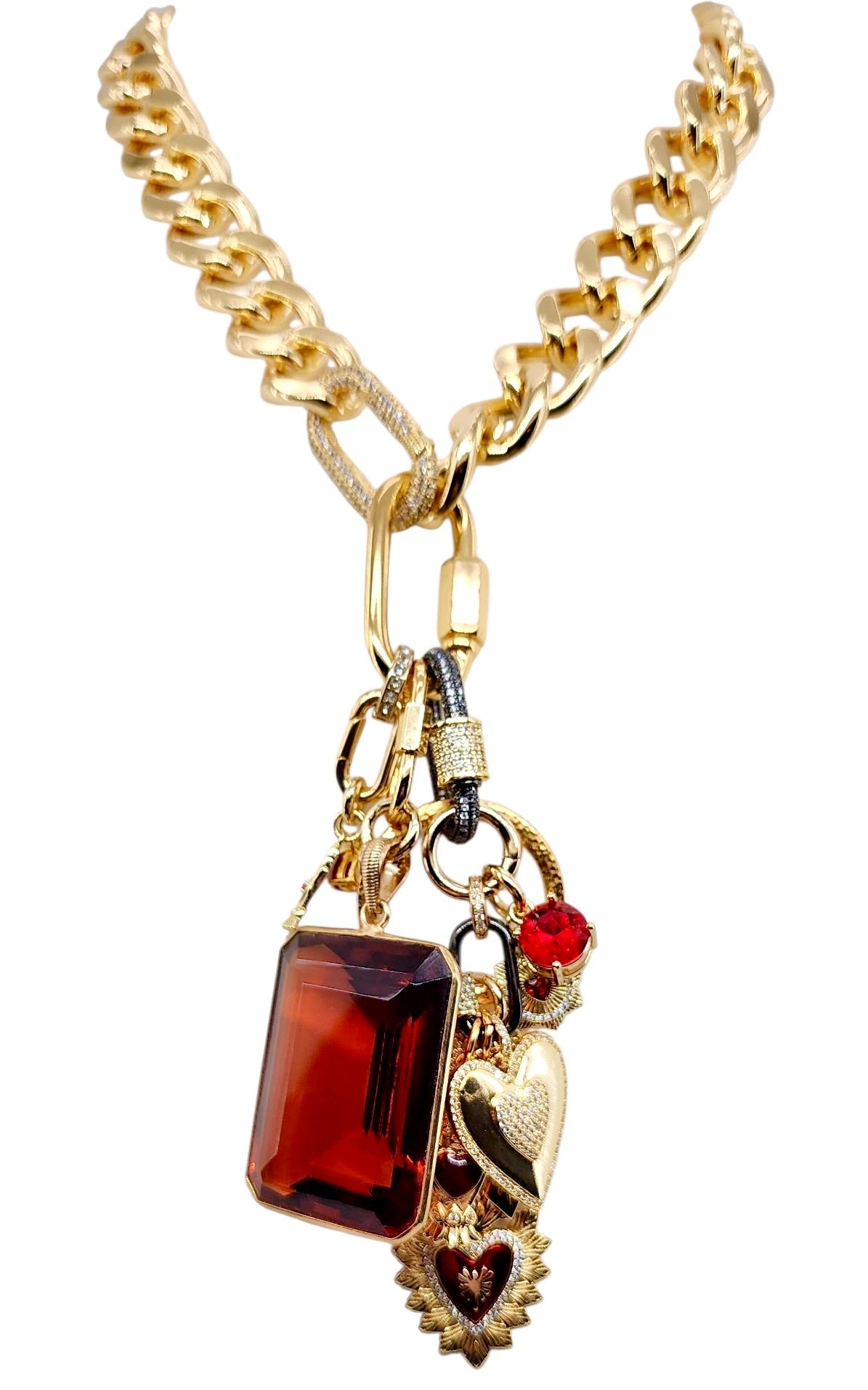 • 30MM GOLD & RED PLATED BRASS CZ HEART CHARM
