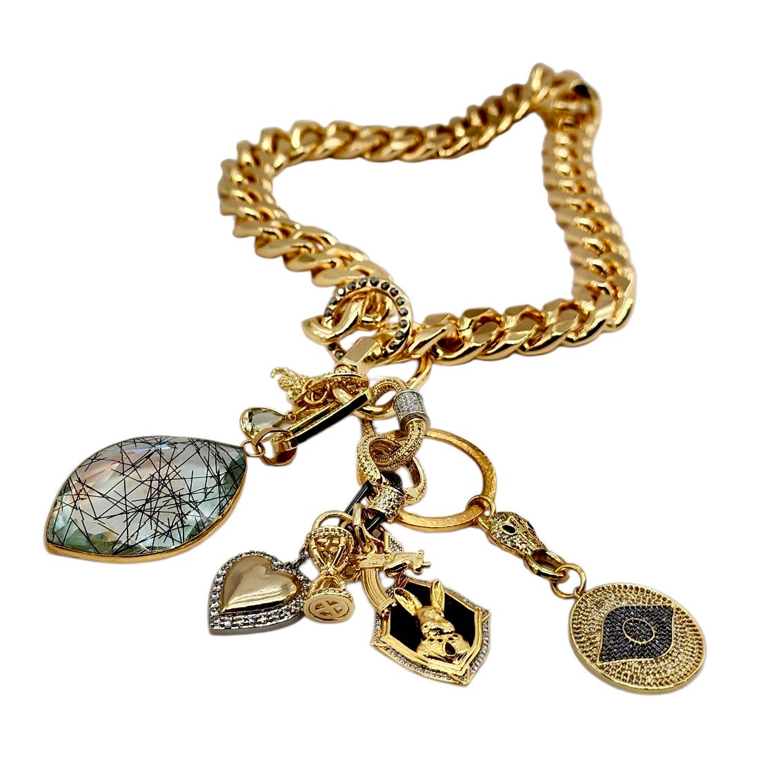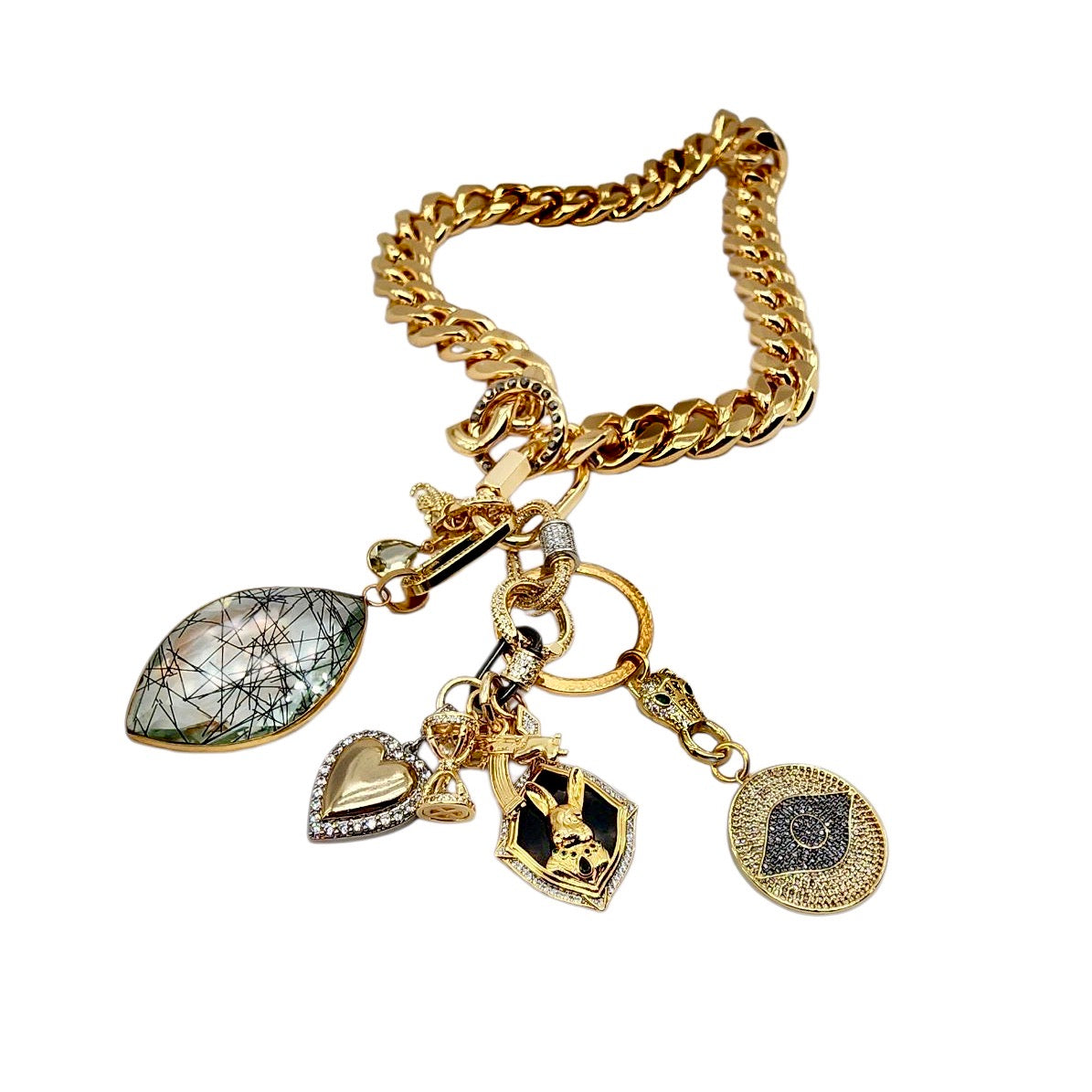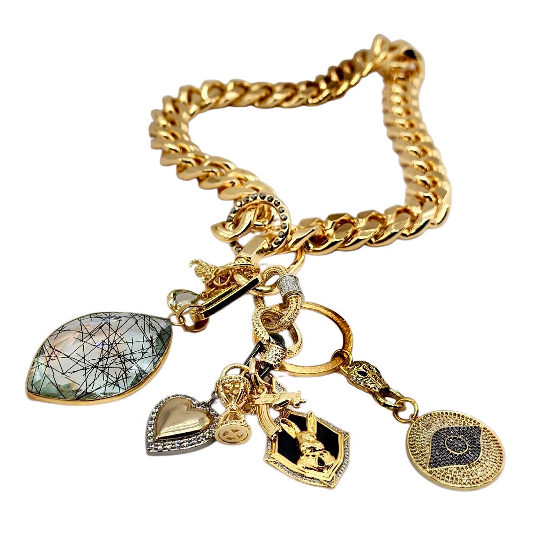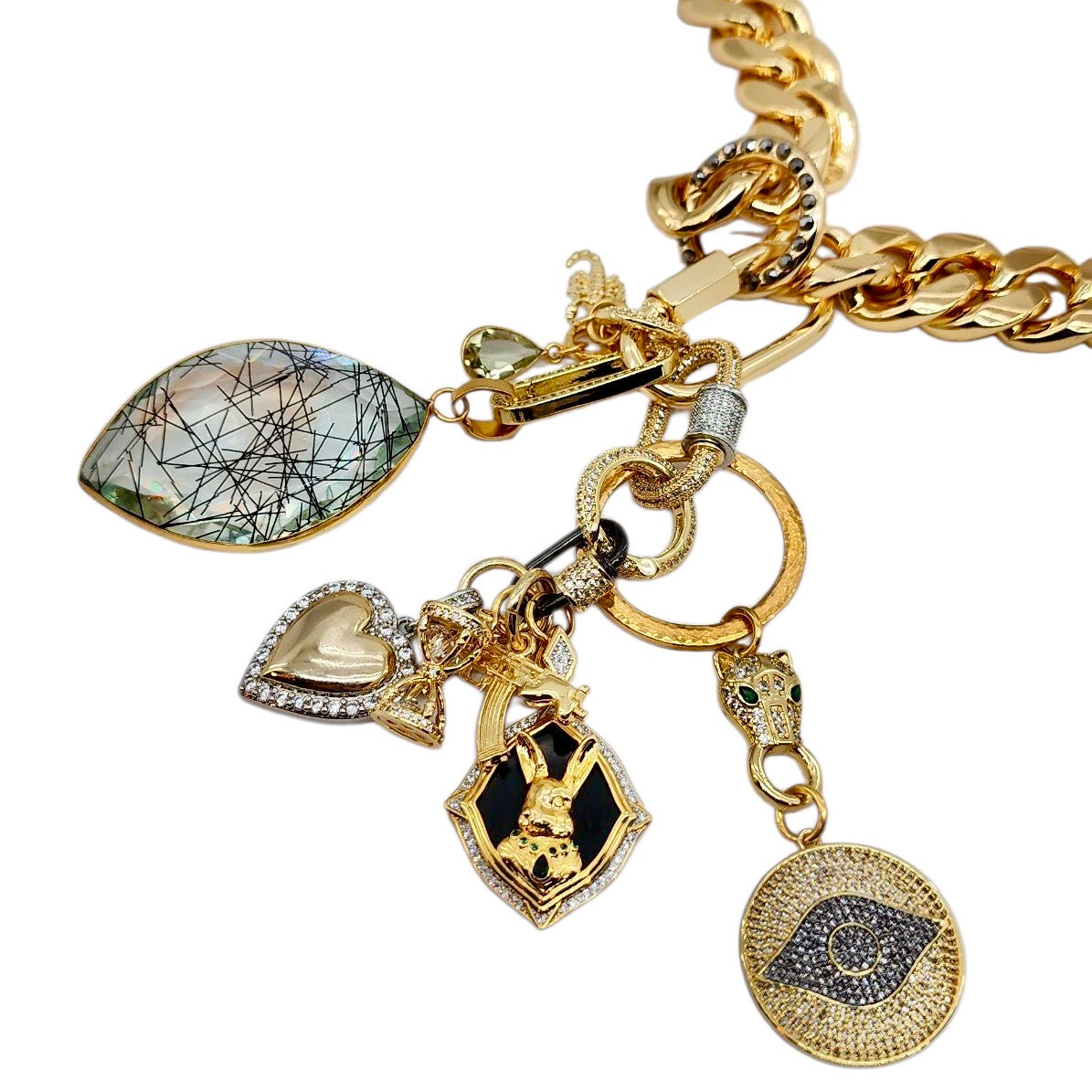 CAN BE WORN AS A NECKLACE, WRAP AROUND BRACELET AND OR BAG CHARMS. UNCLIP TO RE-ARRANGE AND OR MIX & MATCH HOWEVER YOU LIKE.