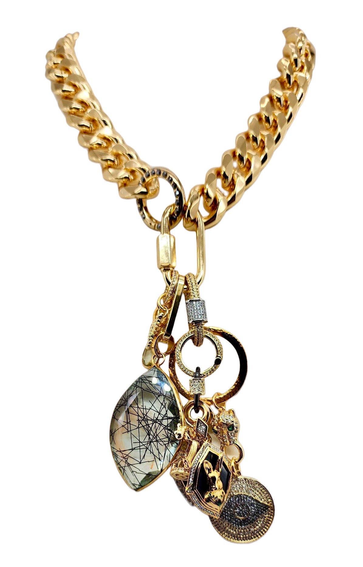 27MM 18K GOLD FILLED CZ PAVE PANTHER CHARM CONNECTOR