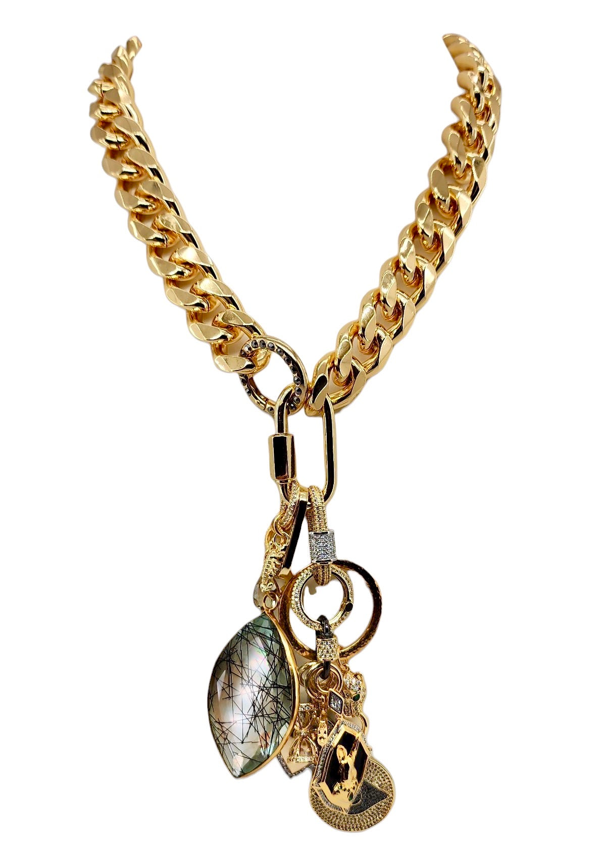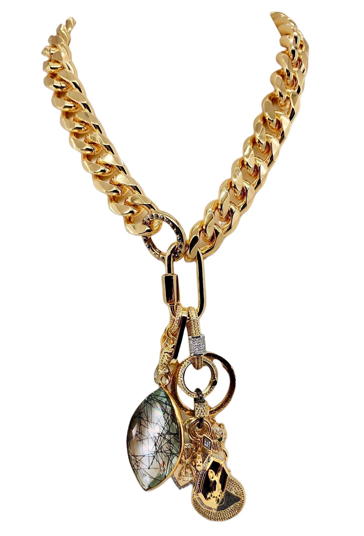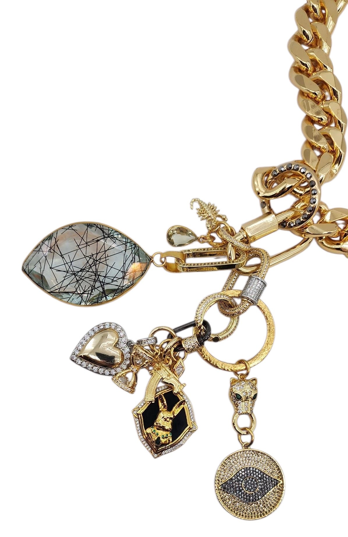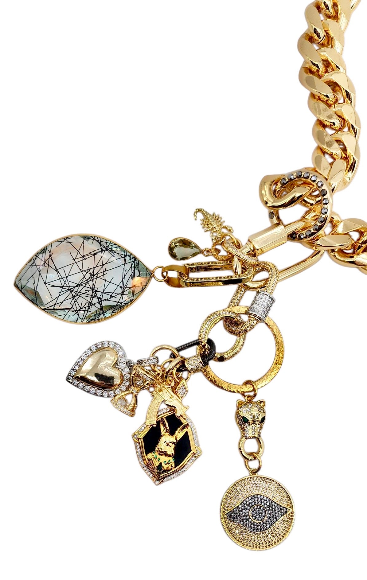 18MM 18K GOLD FILLED GOLD & GUN METAL CZ PAVE MINI CARABINER