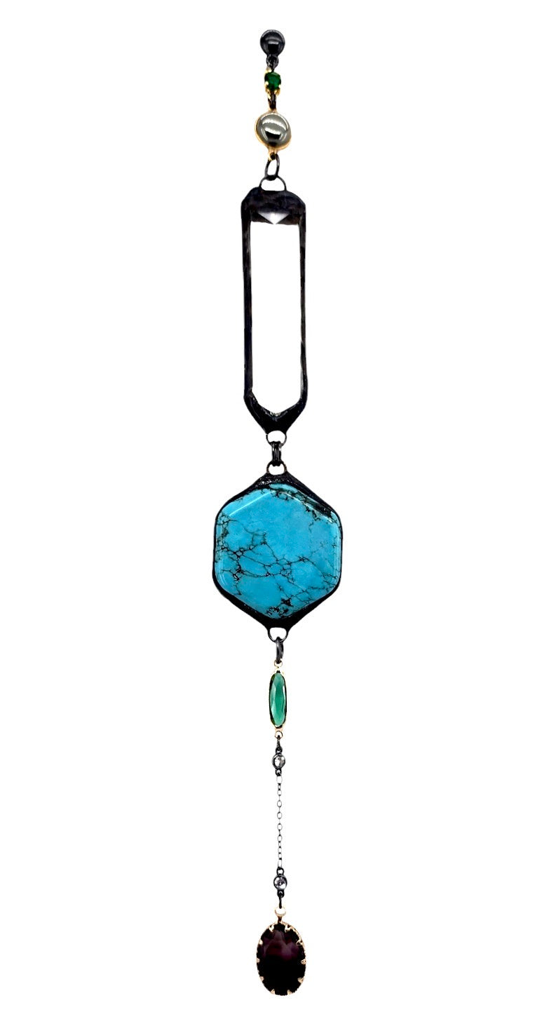 51MM TURQUOISE HOWLITE HEXGON CONNECTOR