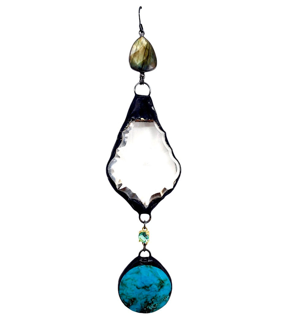 23MM GUN METAL PLATED LABRADORITE TRIANGLE CONNECTOR