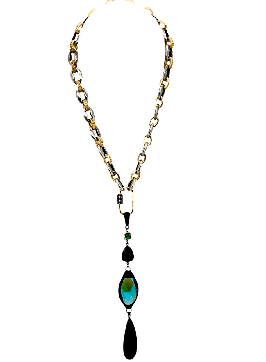 30MM GOLD TONE & GUN METAL CRYSTAL PAVE CARABINER CLASP