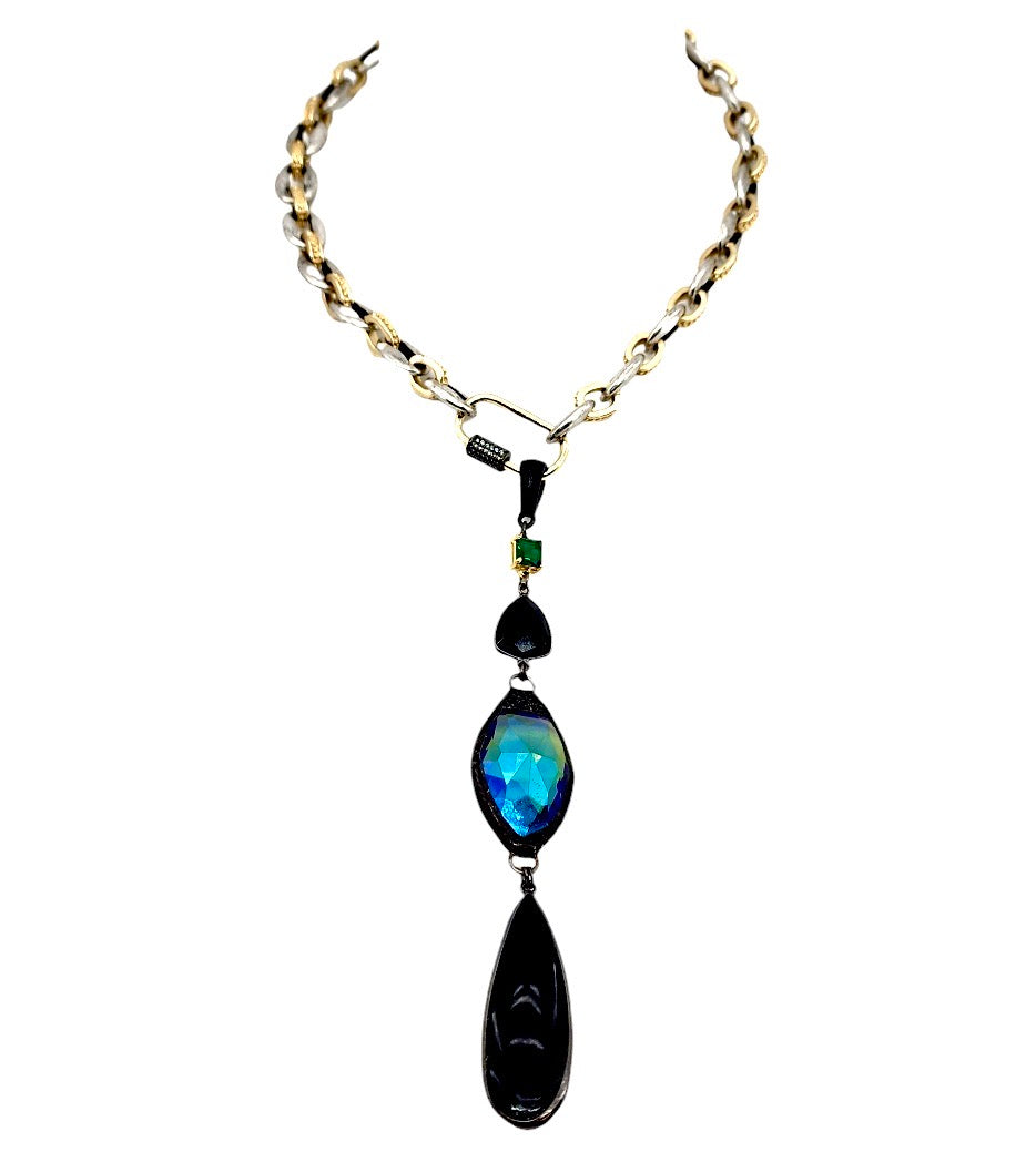 48MM GUN METAL PLATED ONYX DROP CHARM