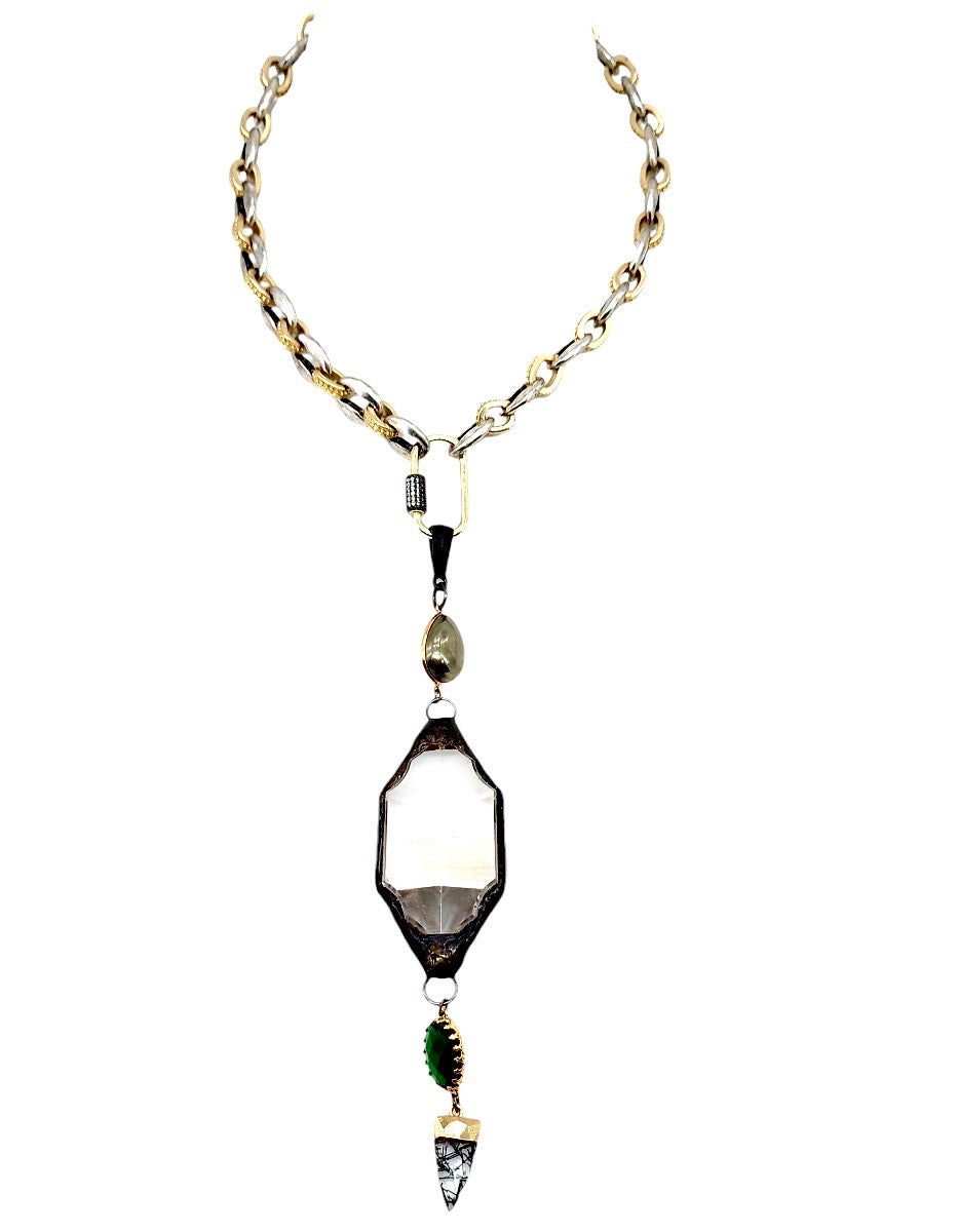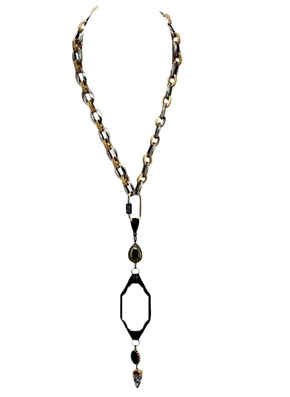 30MM GOLD TONE & GUN METAL CRYSTAL PAVE CARABINER CLASP