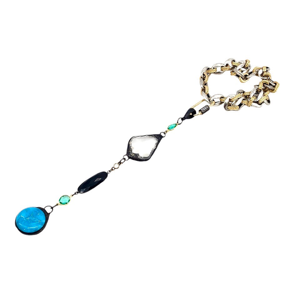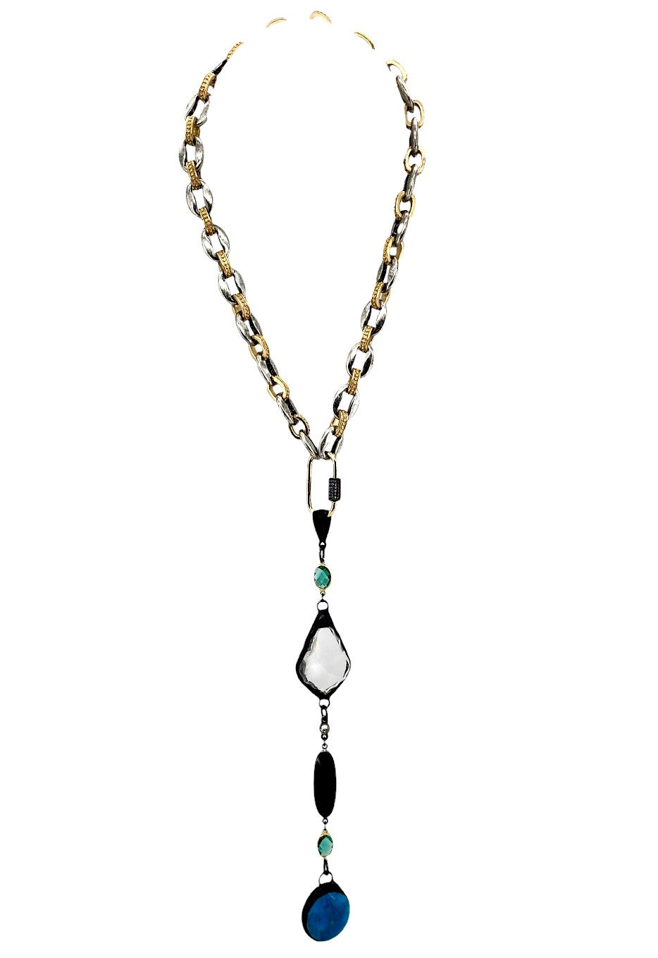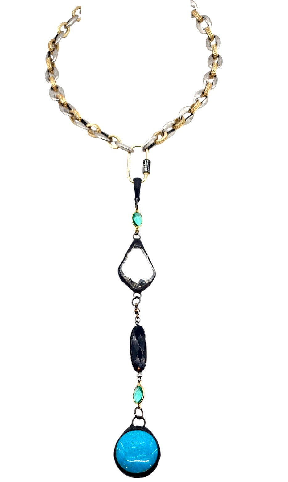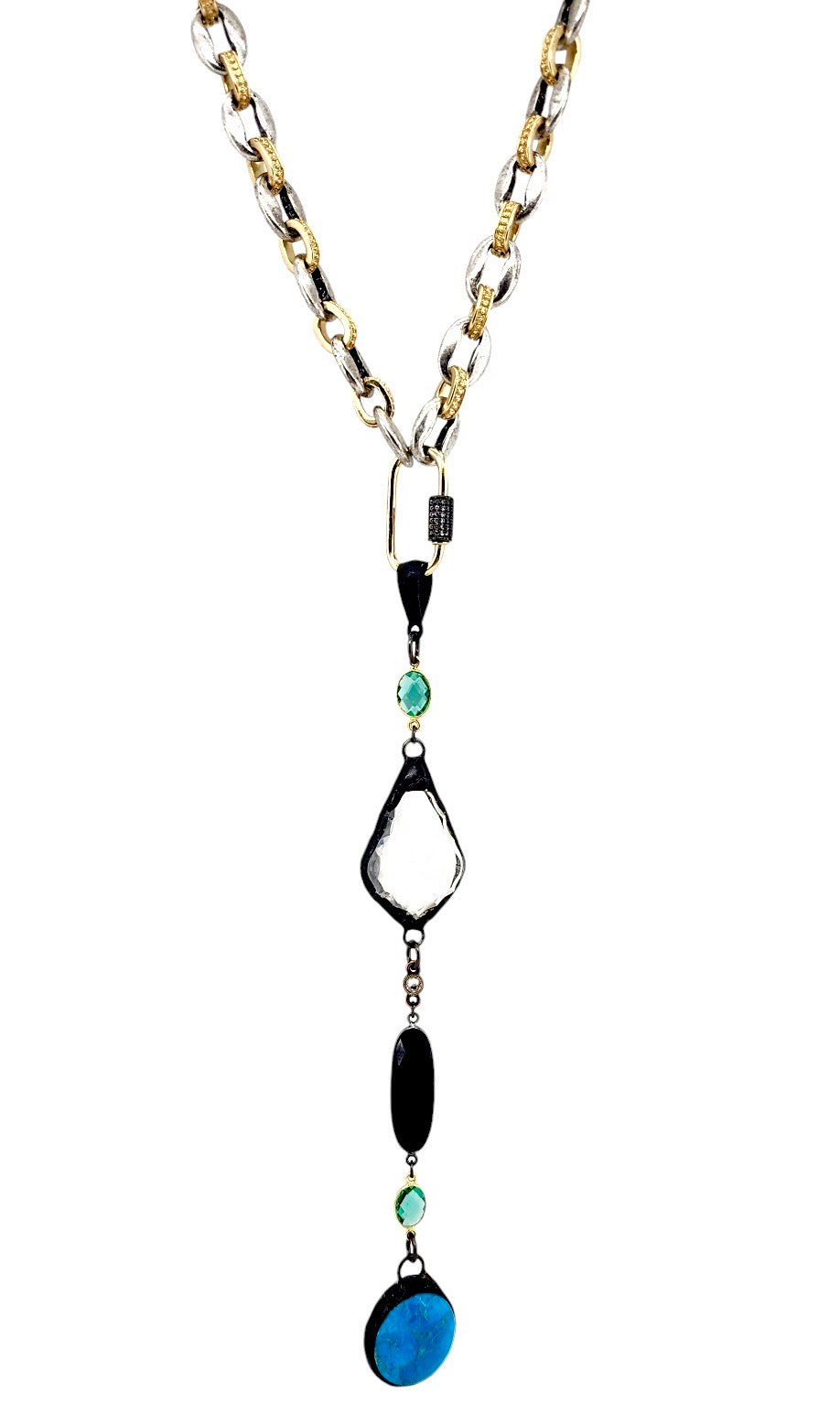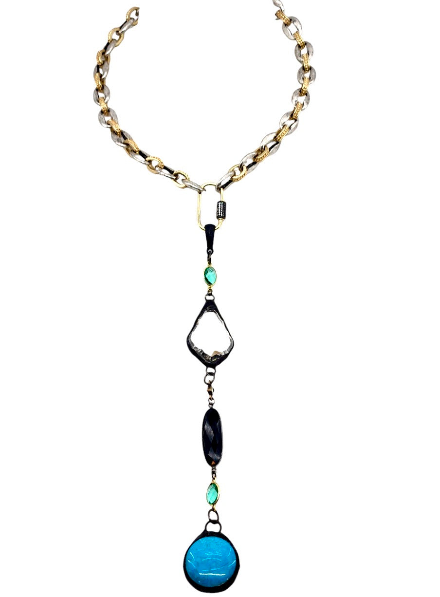 30MM GOLD & GUN METAL TONE CRYSTAL PAVE CARABINER CLASP