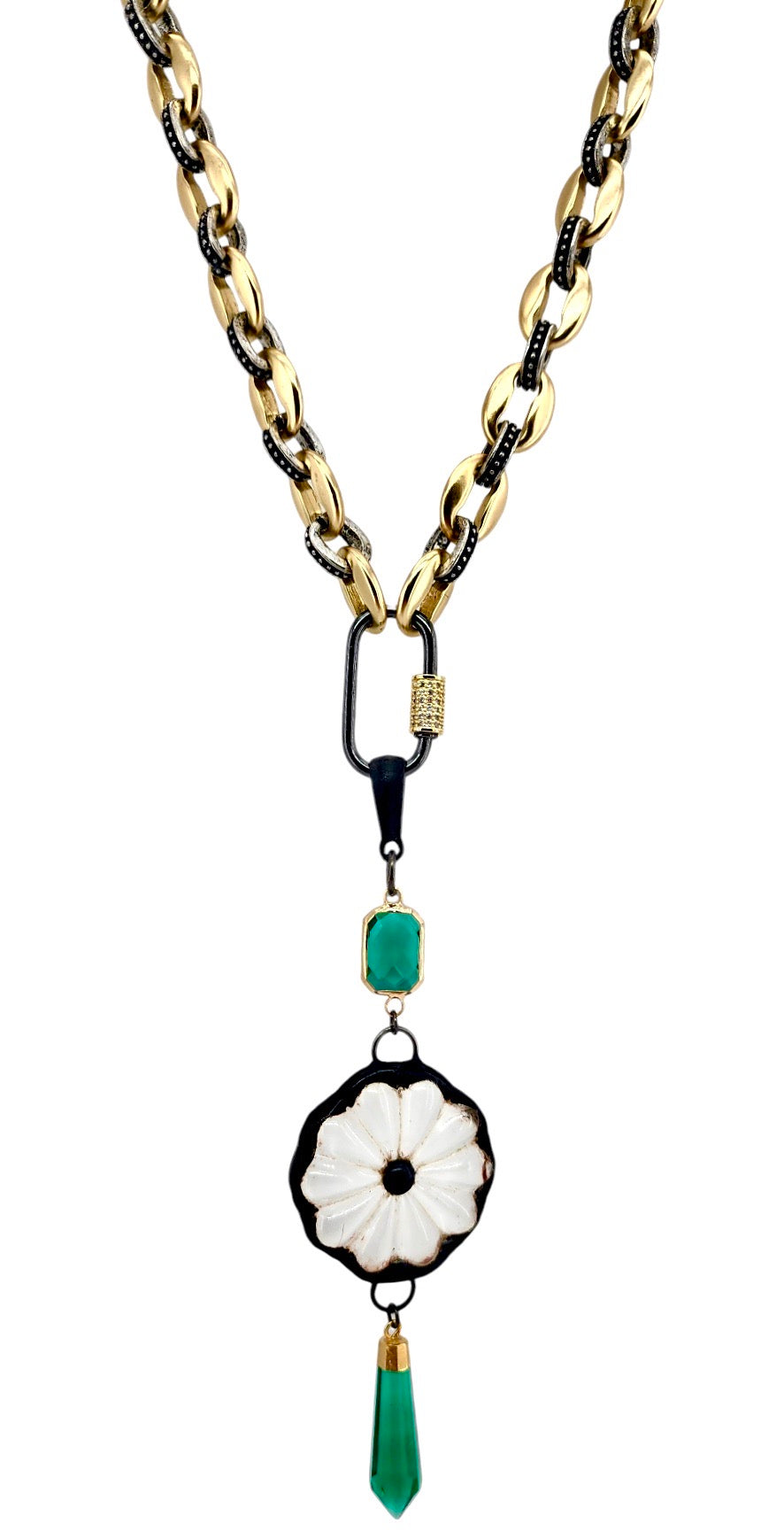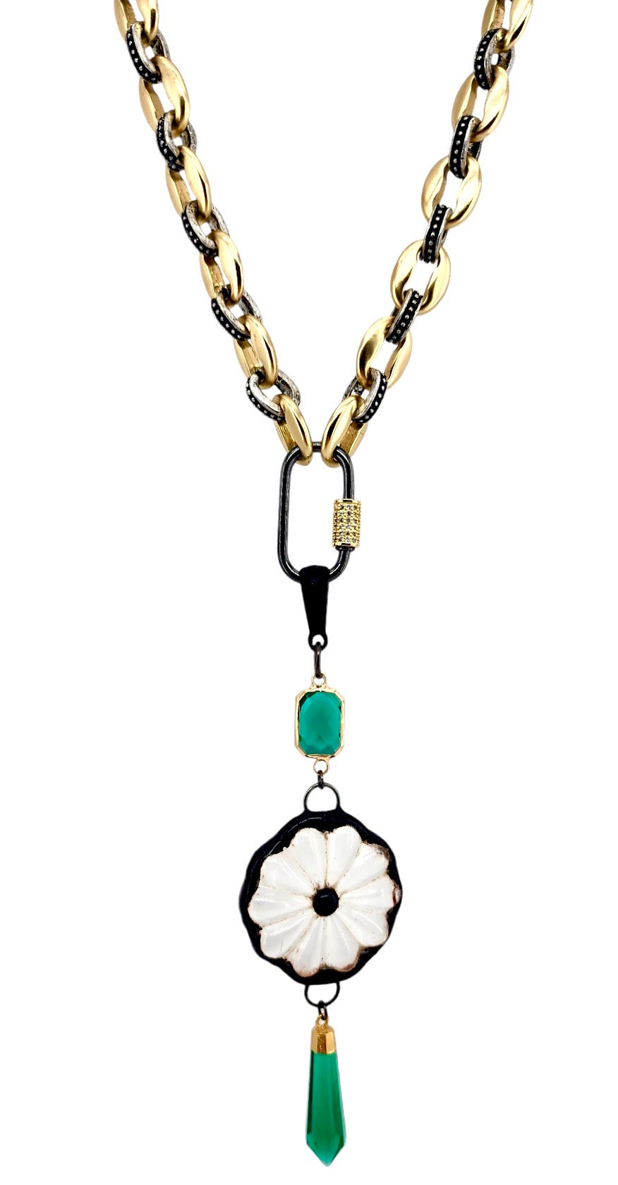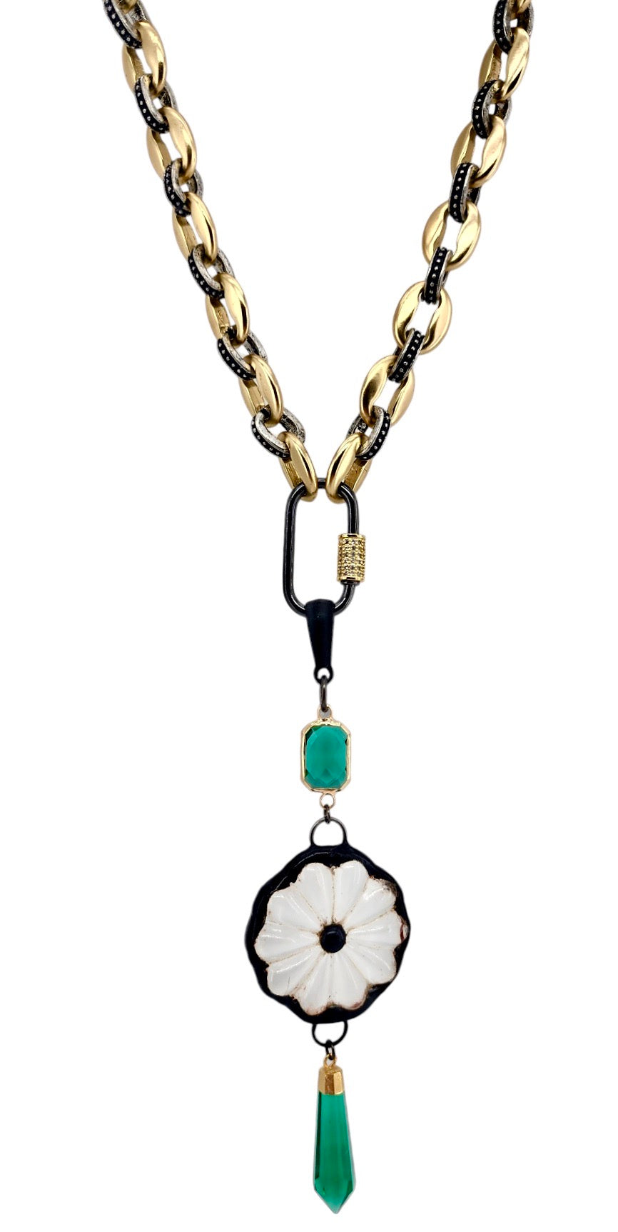 30MM GOLD PLATED GREEN SPIKE PENDANT