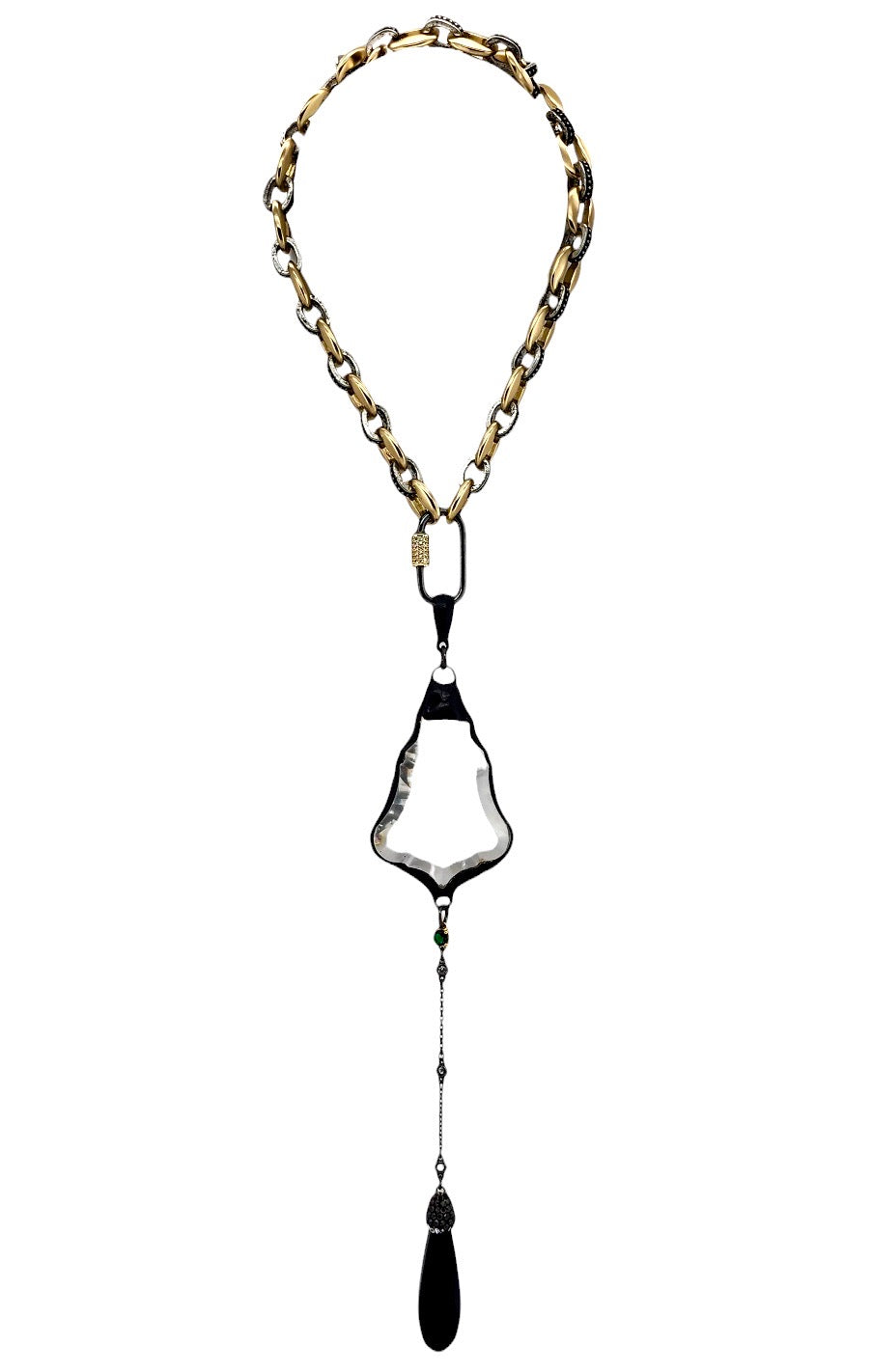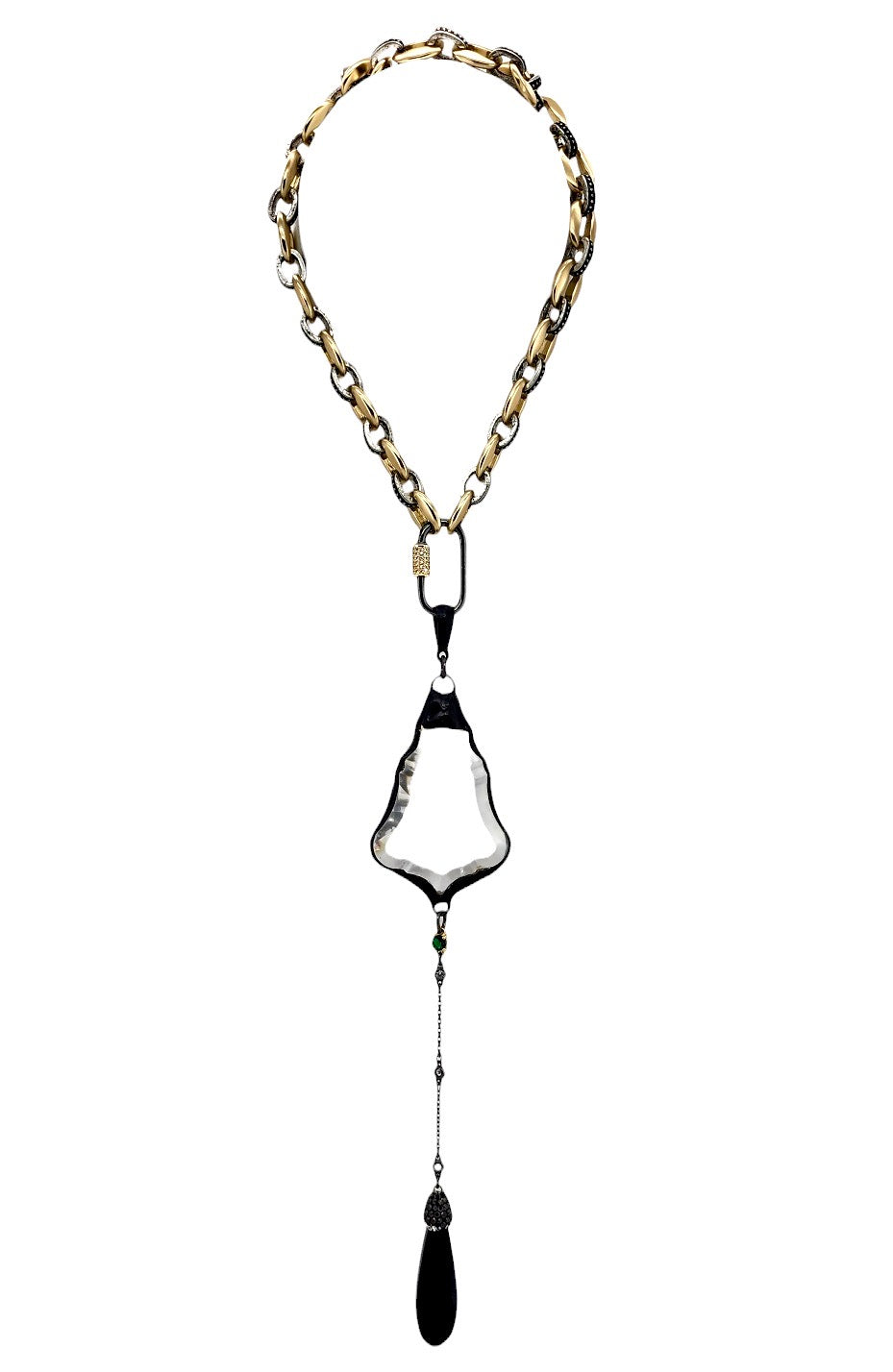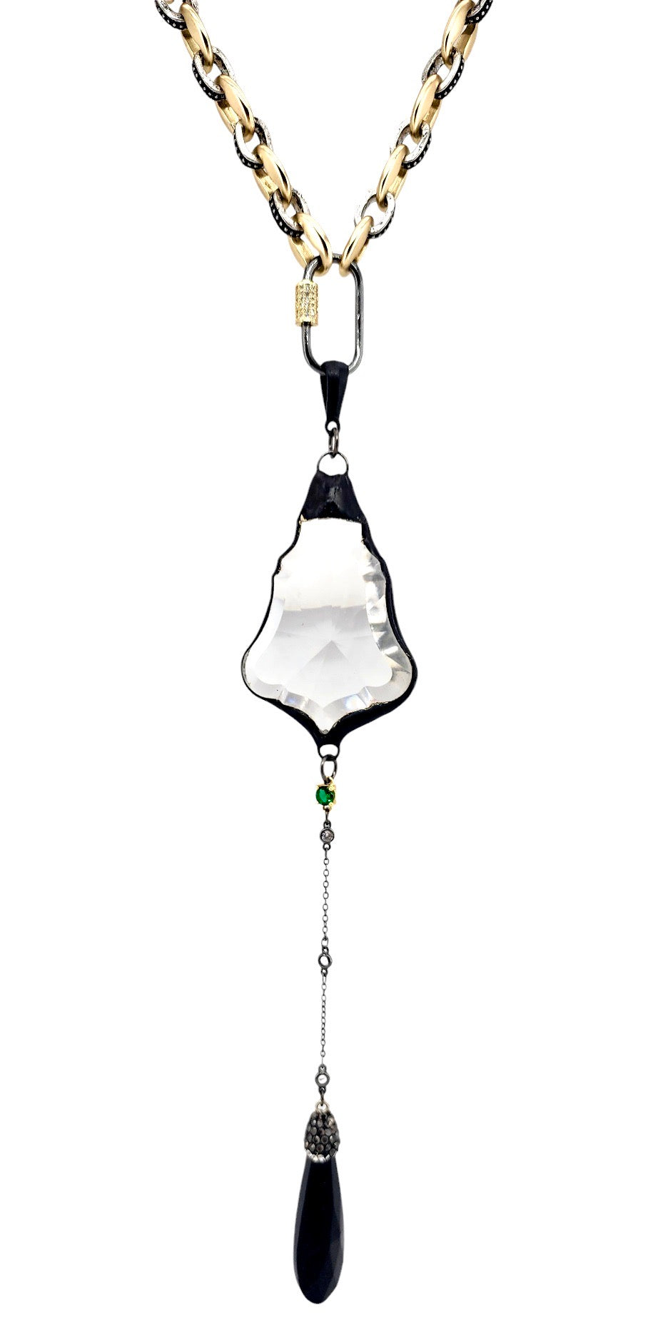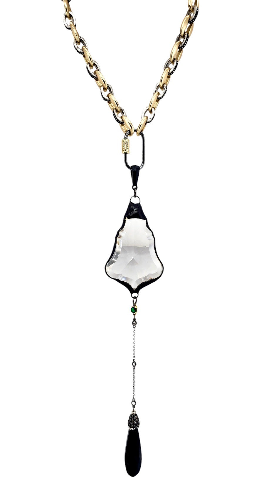 30MM GUN METAL + GOLD TONE CRYSTAL PAVE CARABINER CLASP