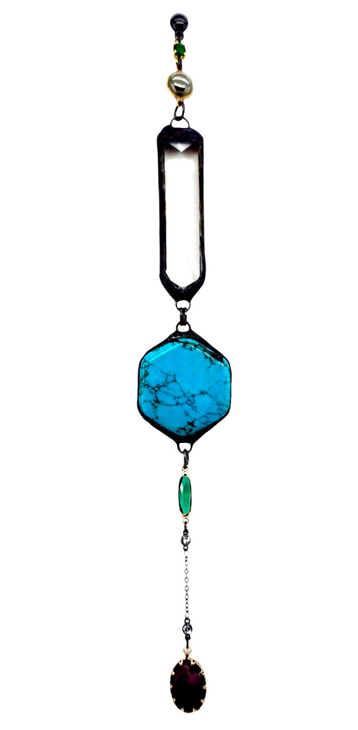 51MM TURQUOISE HOWLITE HEXGON CONNECTOR