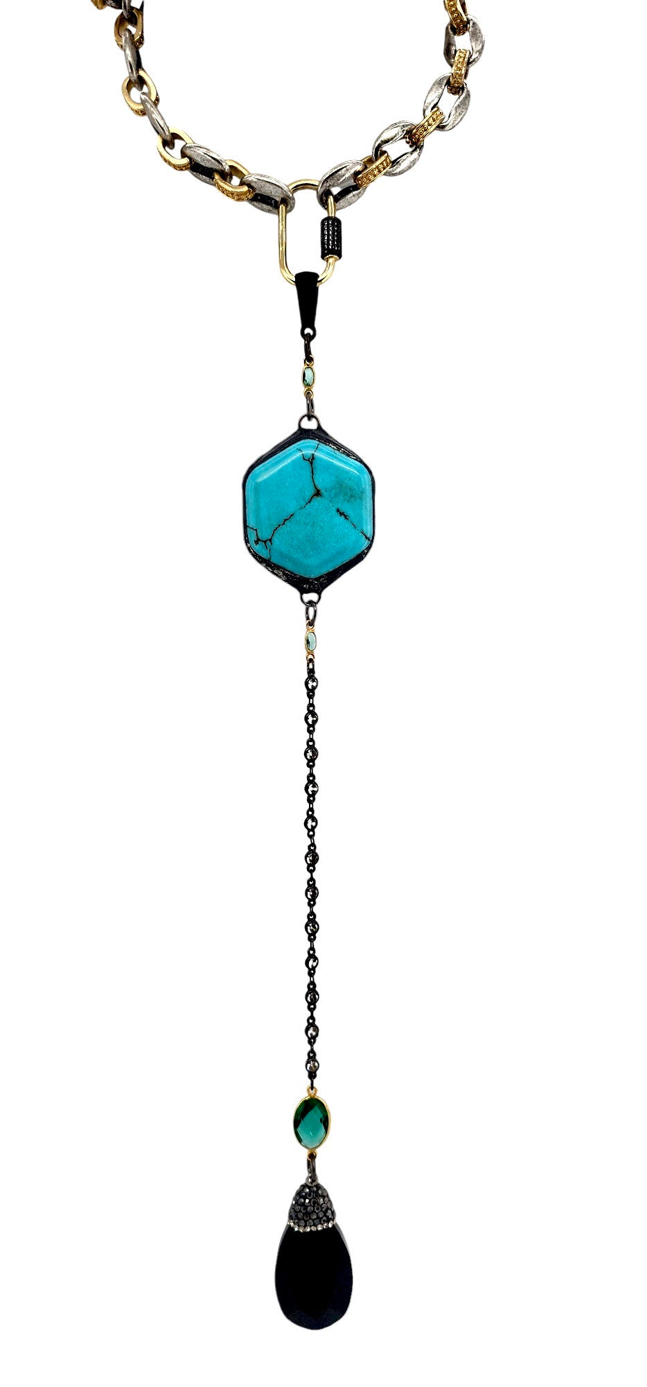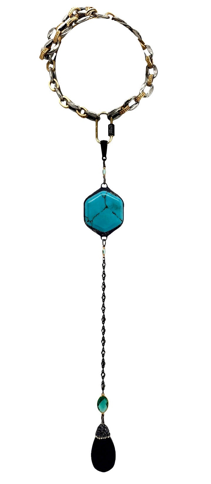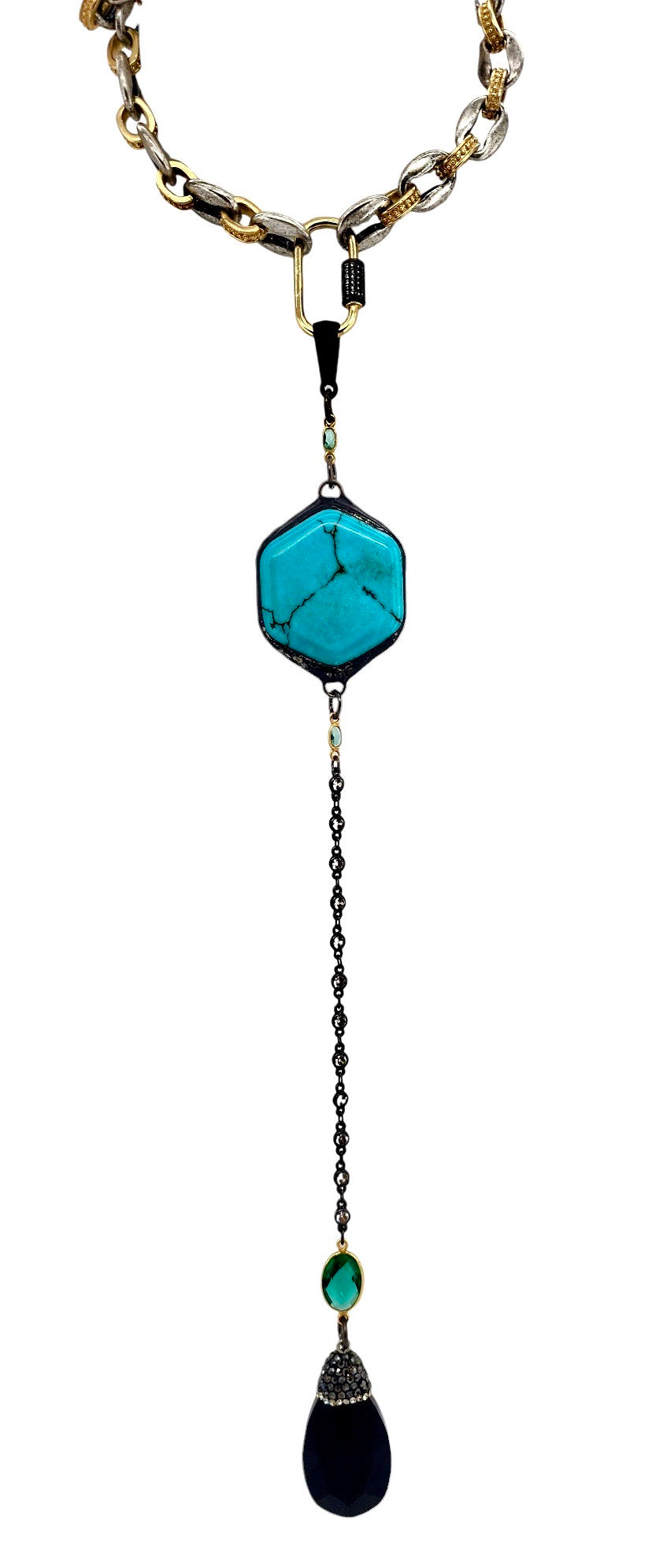 51MM TURQUOISE HOWLITE HEXAGON CONNECTOR