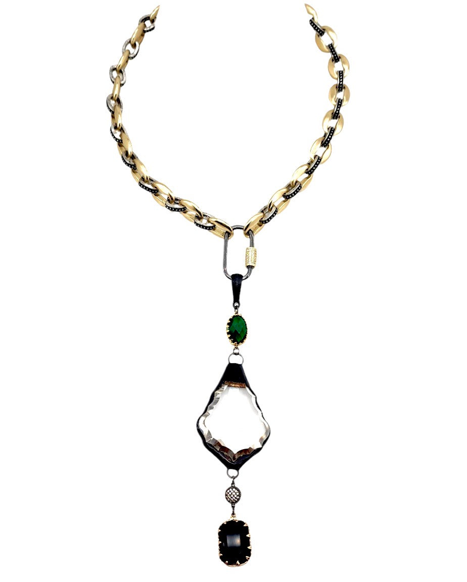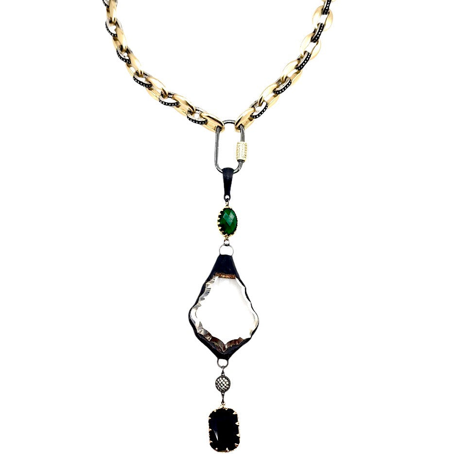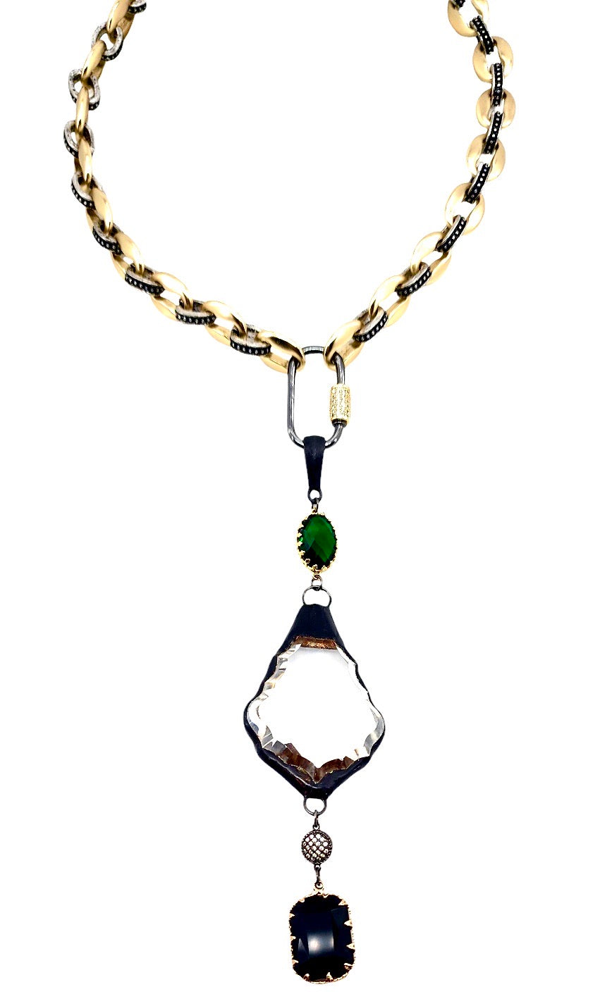 30MM GUN METAL & GOLD TONE CRYSTAL PAVE CARABINER CLASP