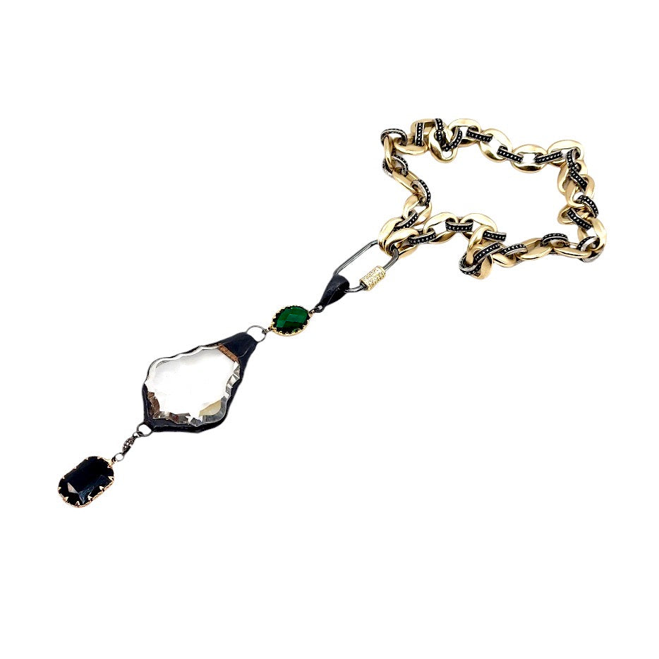 23MM GOLD & BLACK CRYSTAL RECTANGLE PENDANT