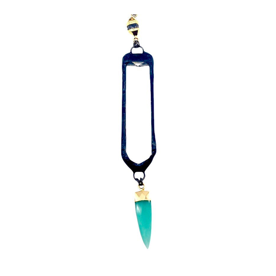 30MM 22K GOLD PLATED AQUA CHALCEDONY TRIANGLE CHARM