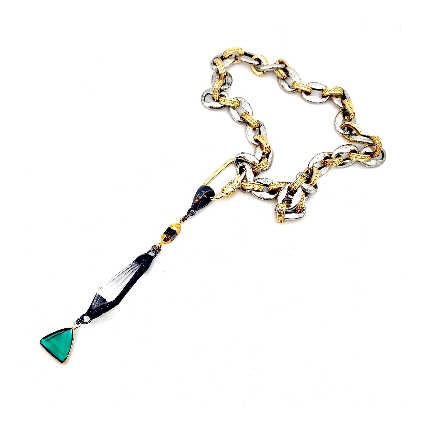 25MM X 16MM LEAD & NICKEL FREE GOLD EDGED GREEN CRYSTAL TRIANGLE CHARM