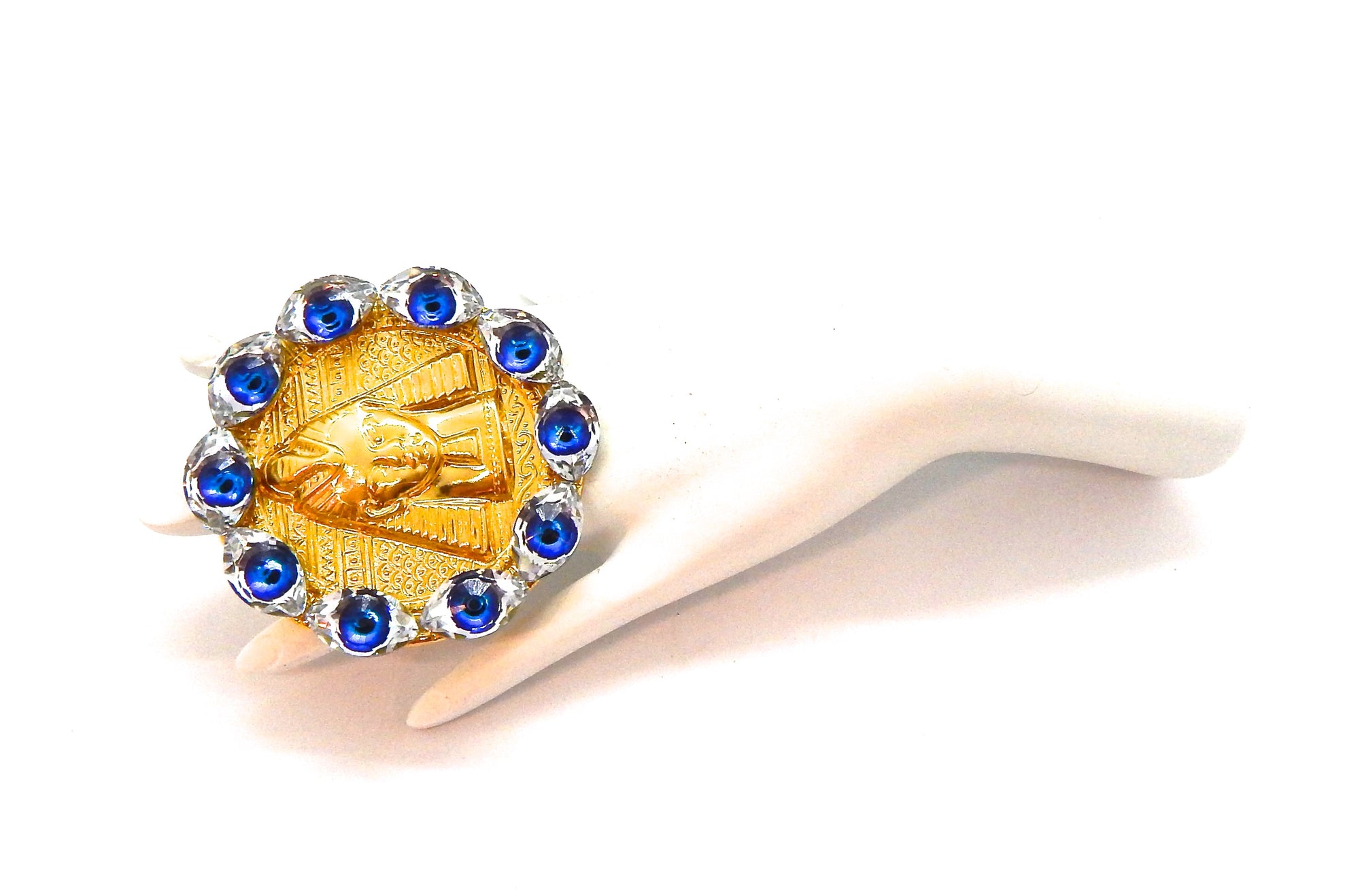 EGYPTIAN GOLD EYE OF GOD MEDALLION RING