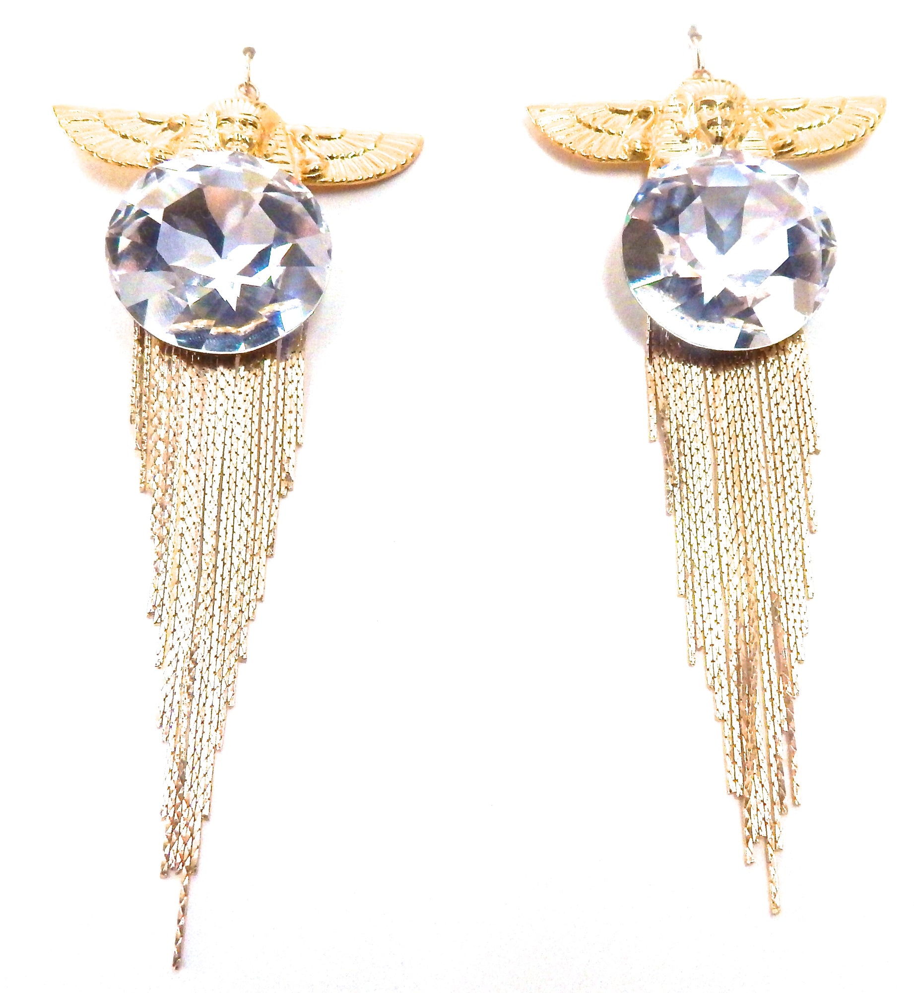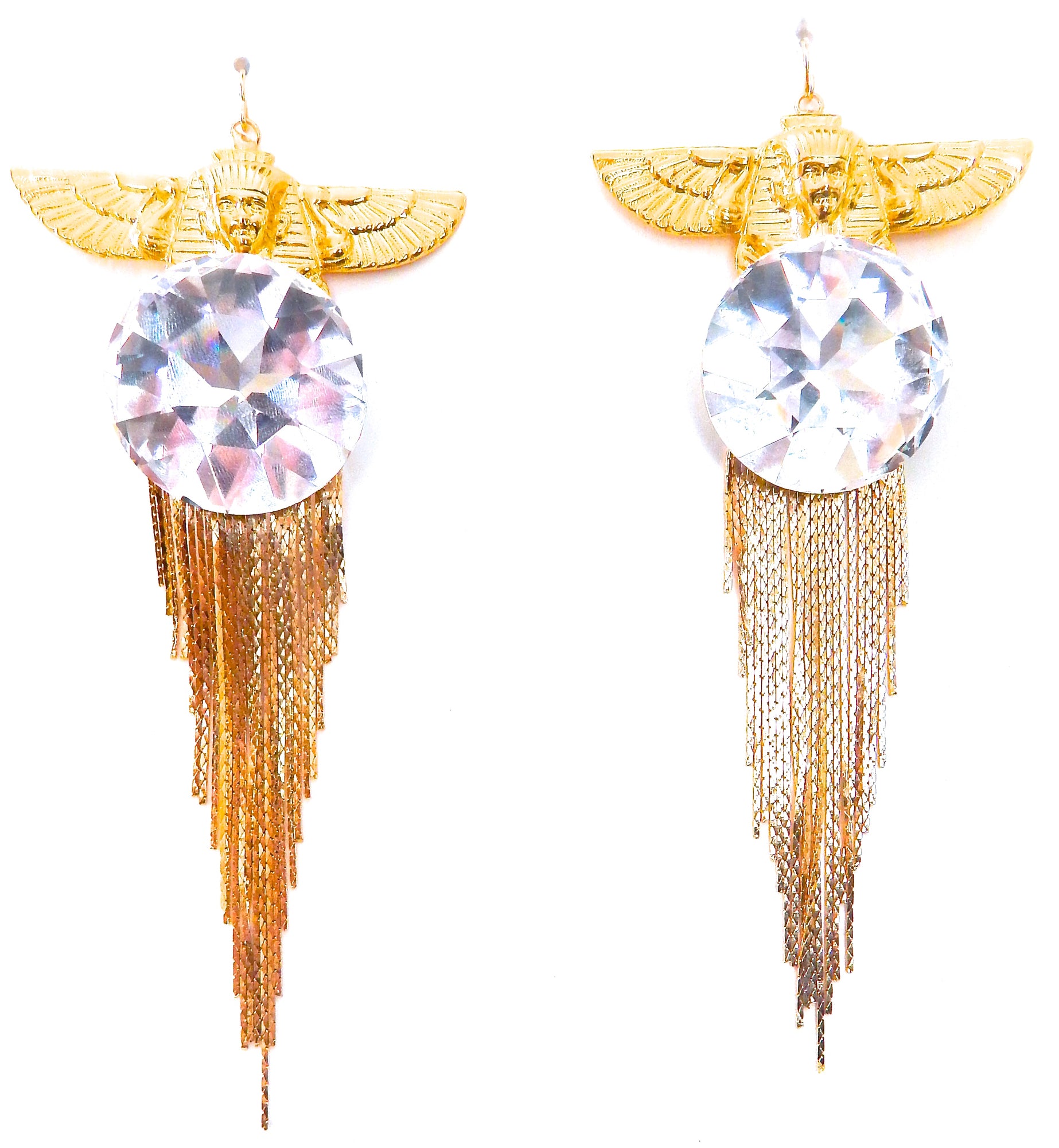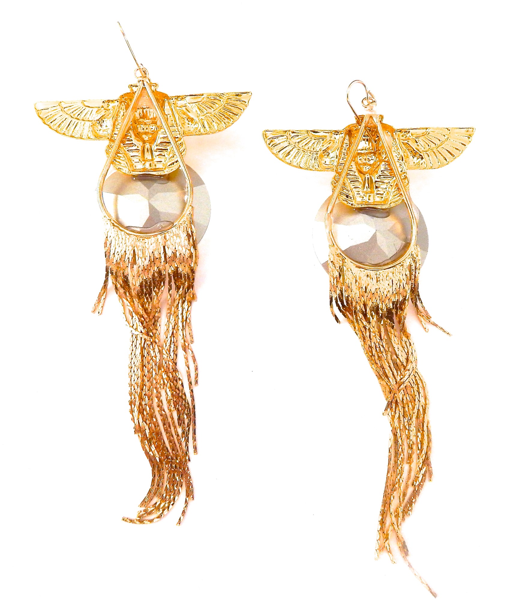 EGYPTIAN GOLD ISIS GODDESS MOONDUST FRINGE EARRINGS