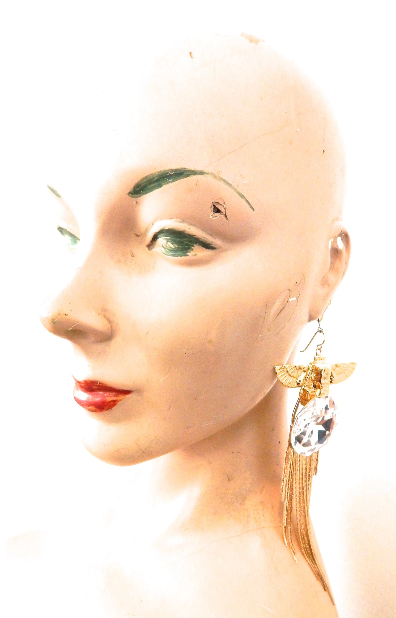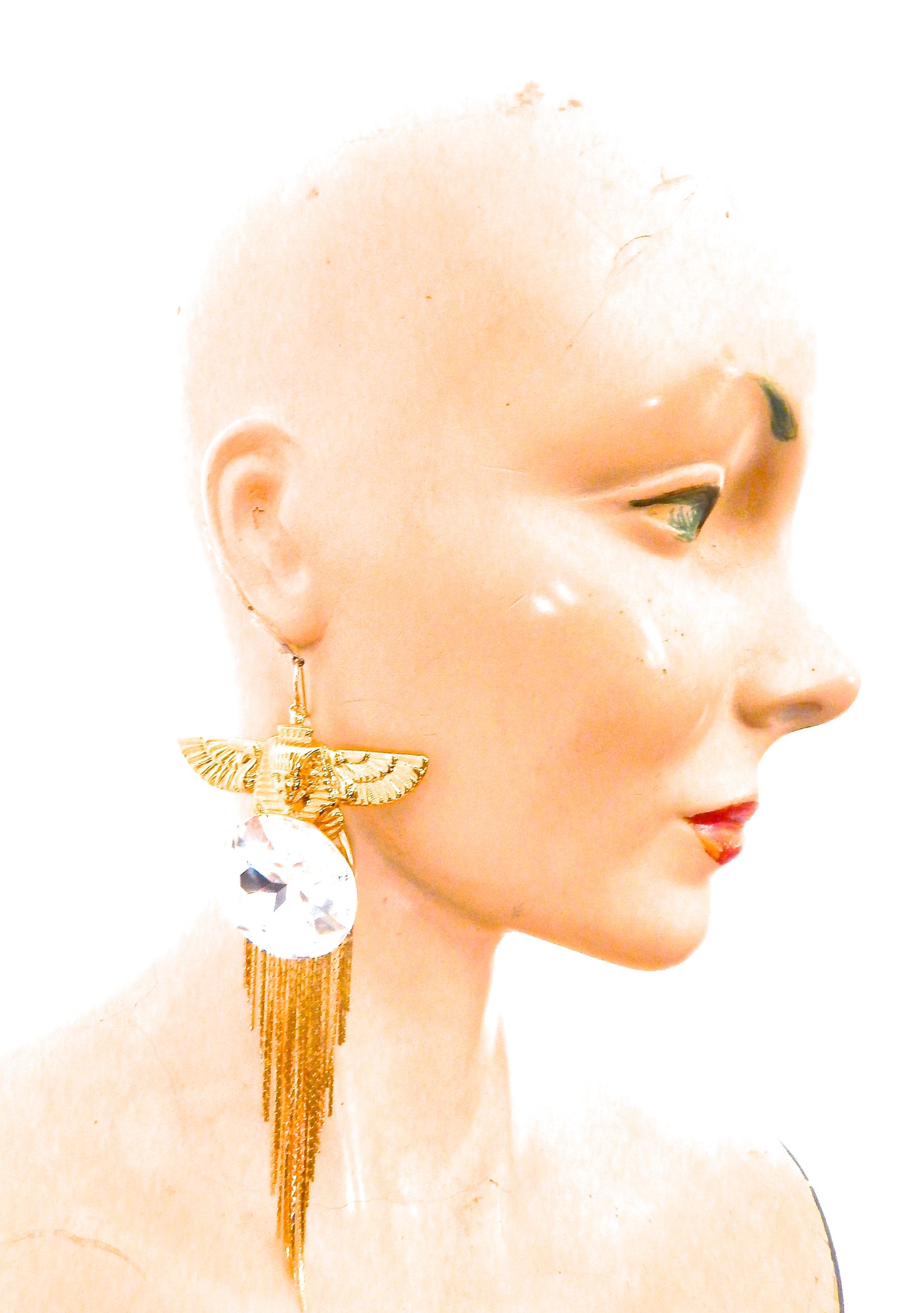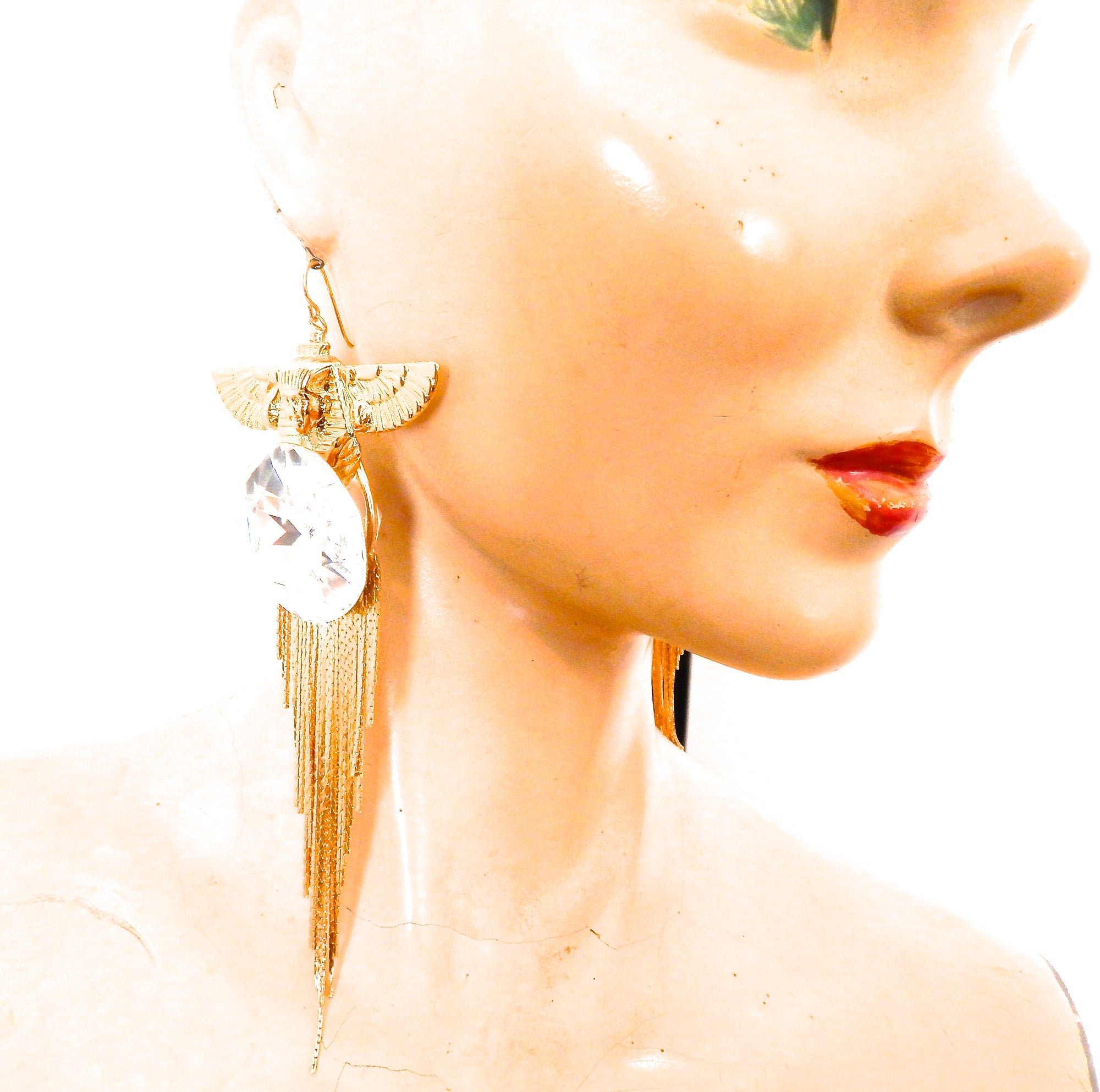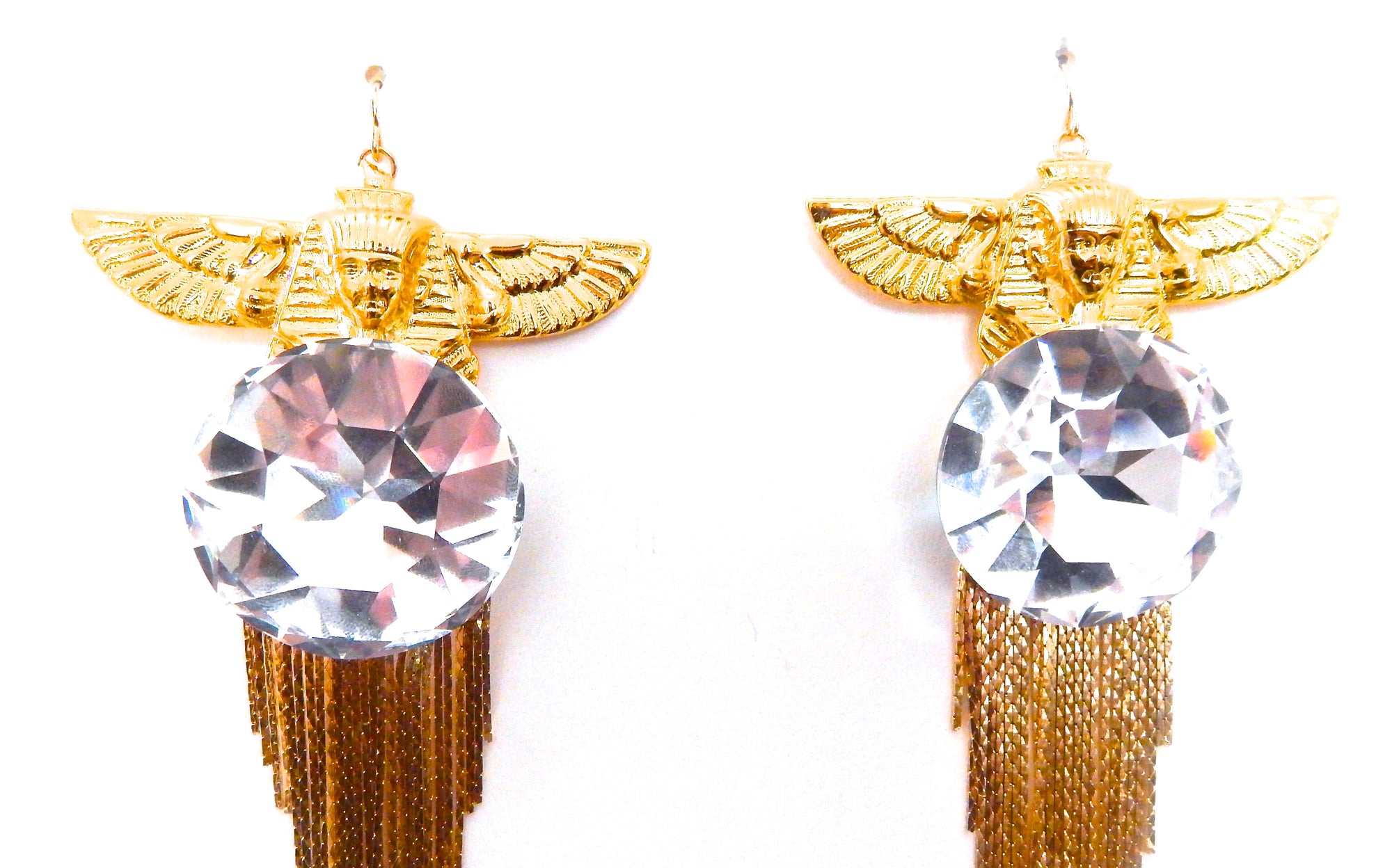 EGYPTIAN GOLD ISIS GODDESS MOONDUST FRINGE EARRINGS