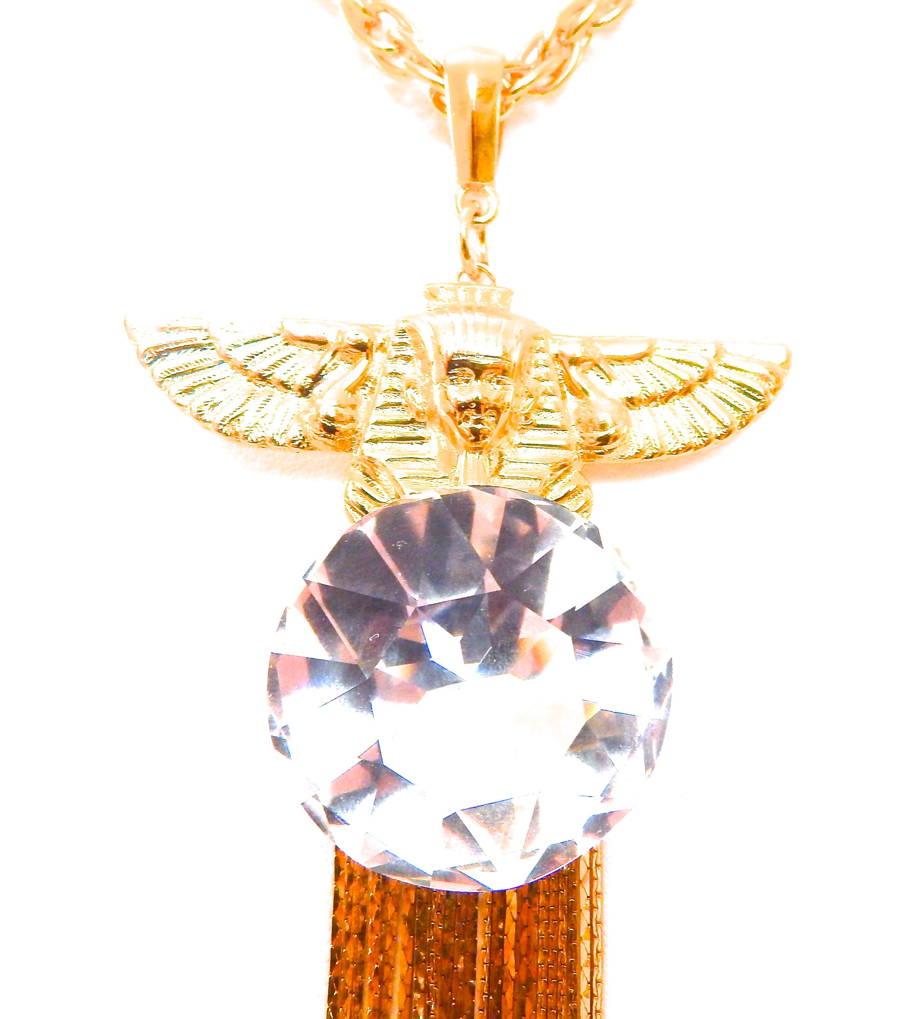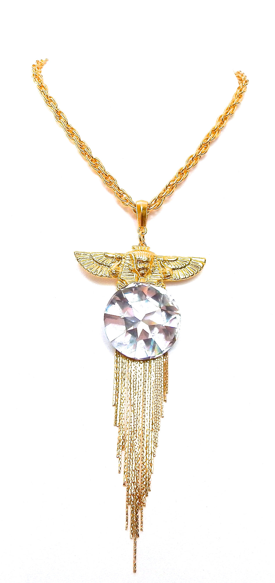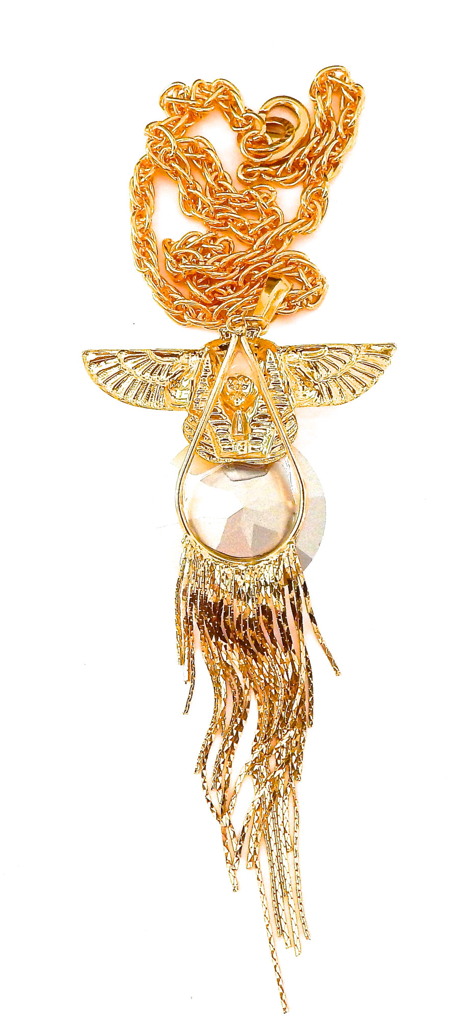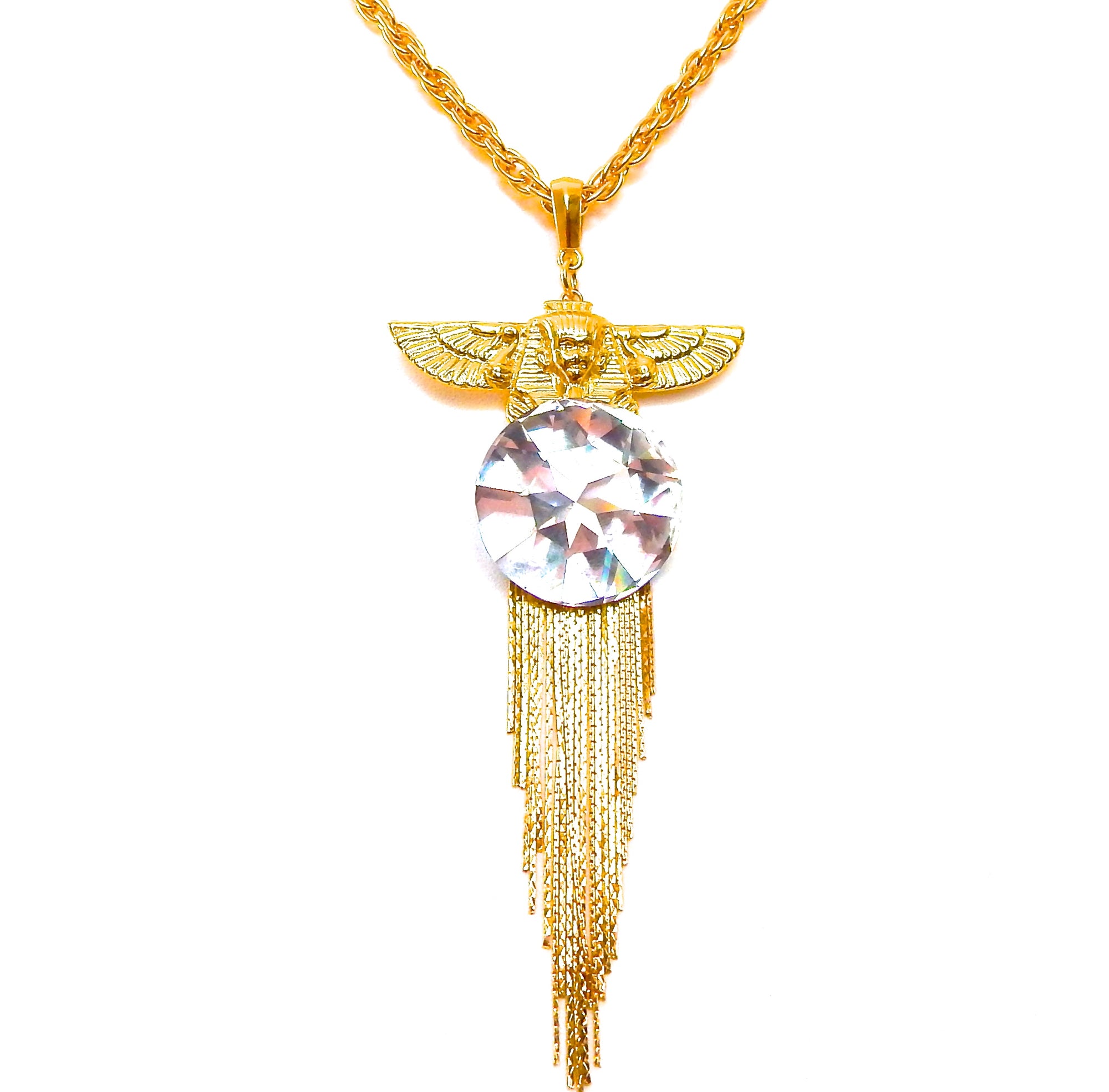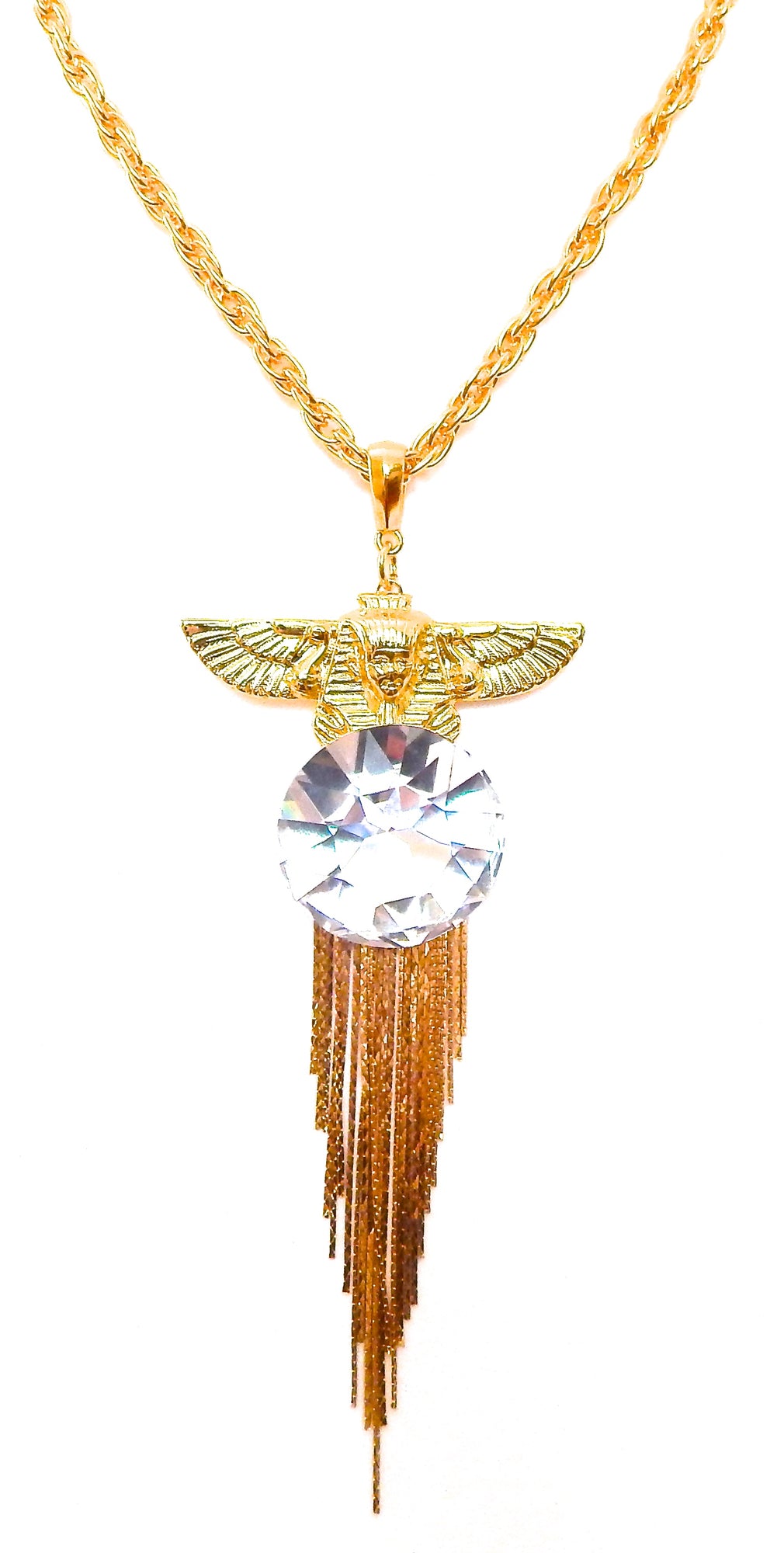 EGYPTIAN GOLD ISIS GODDESS MOONDUST FRINGE NECKLACE