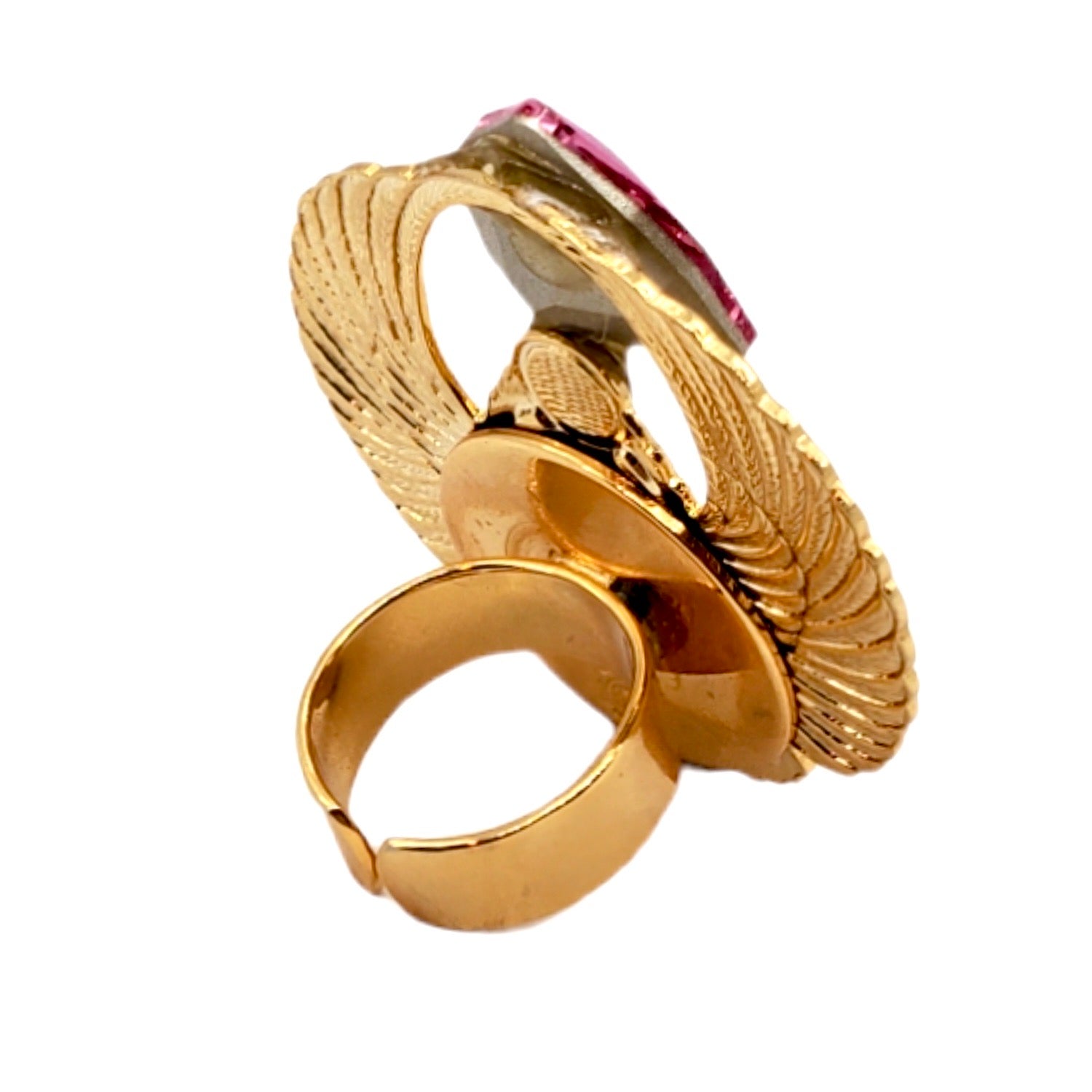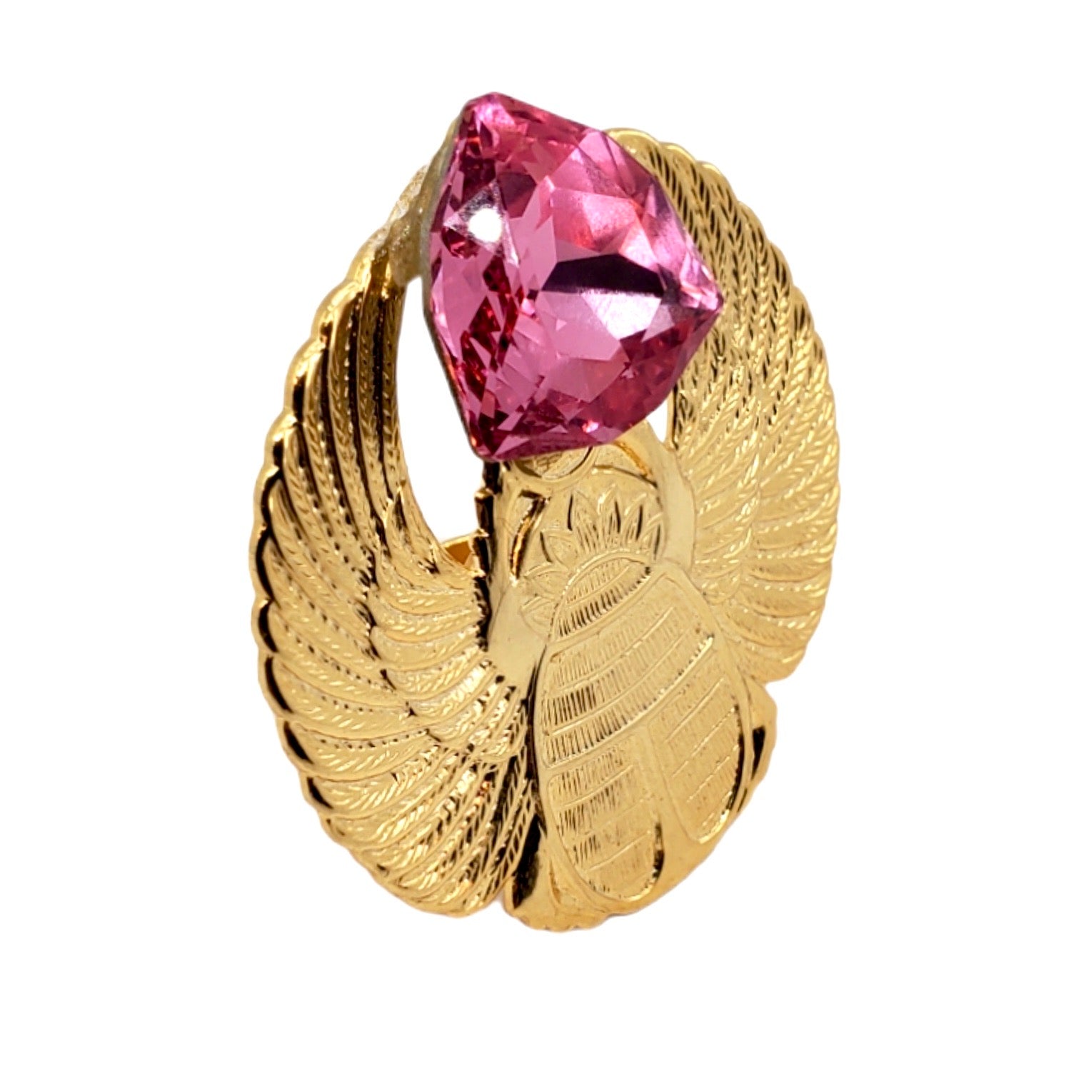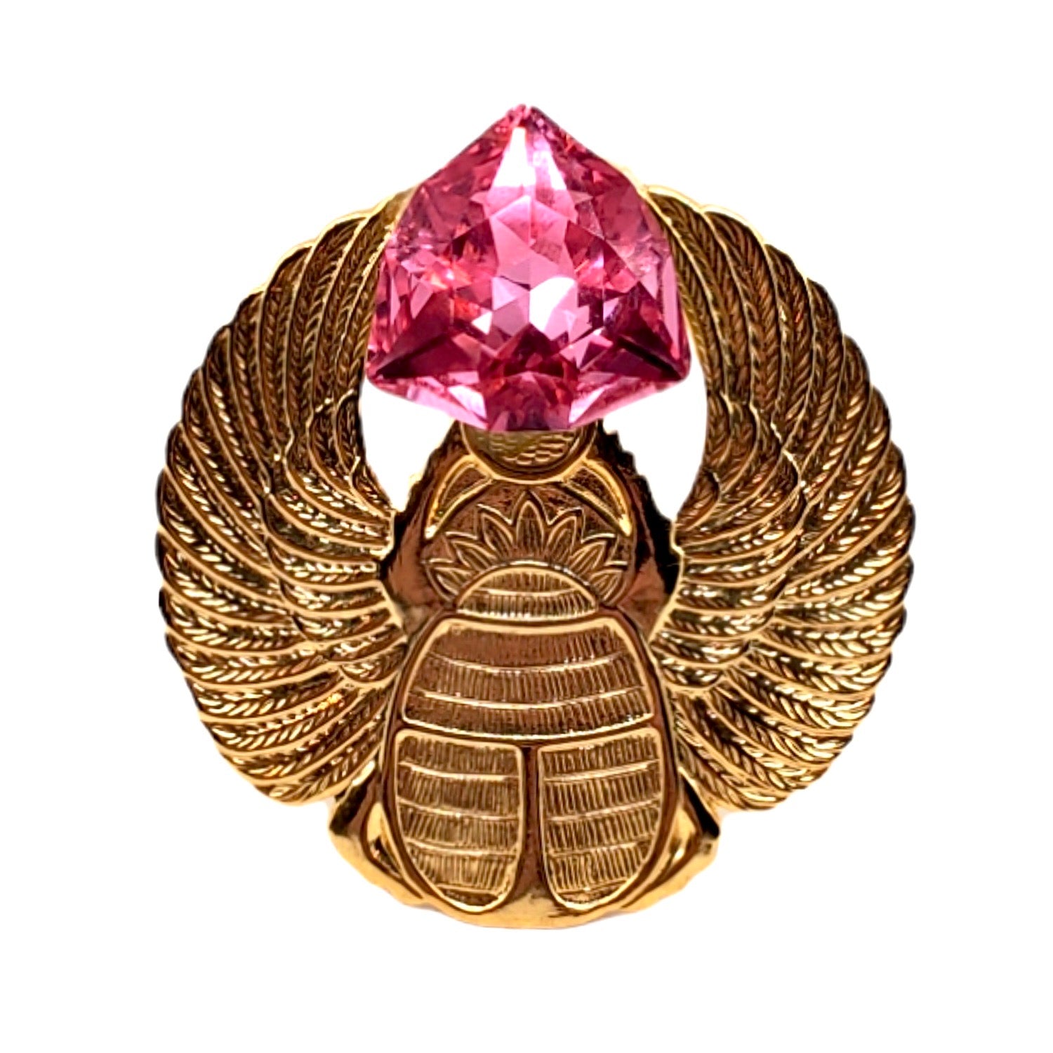 EGYPTIAN GOLD KHEPRI BEETLE PINK FOX RING
