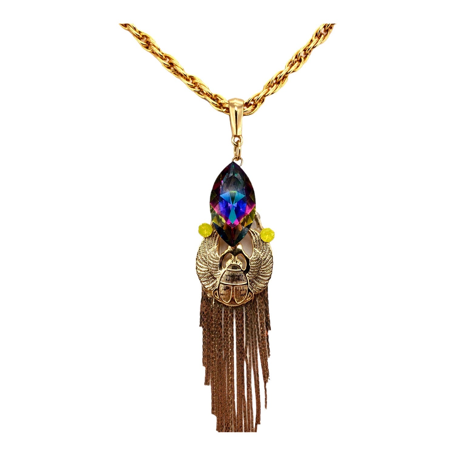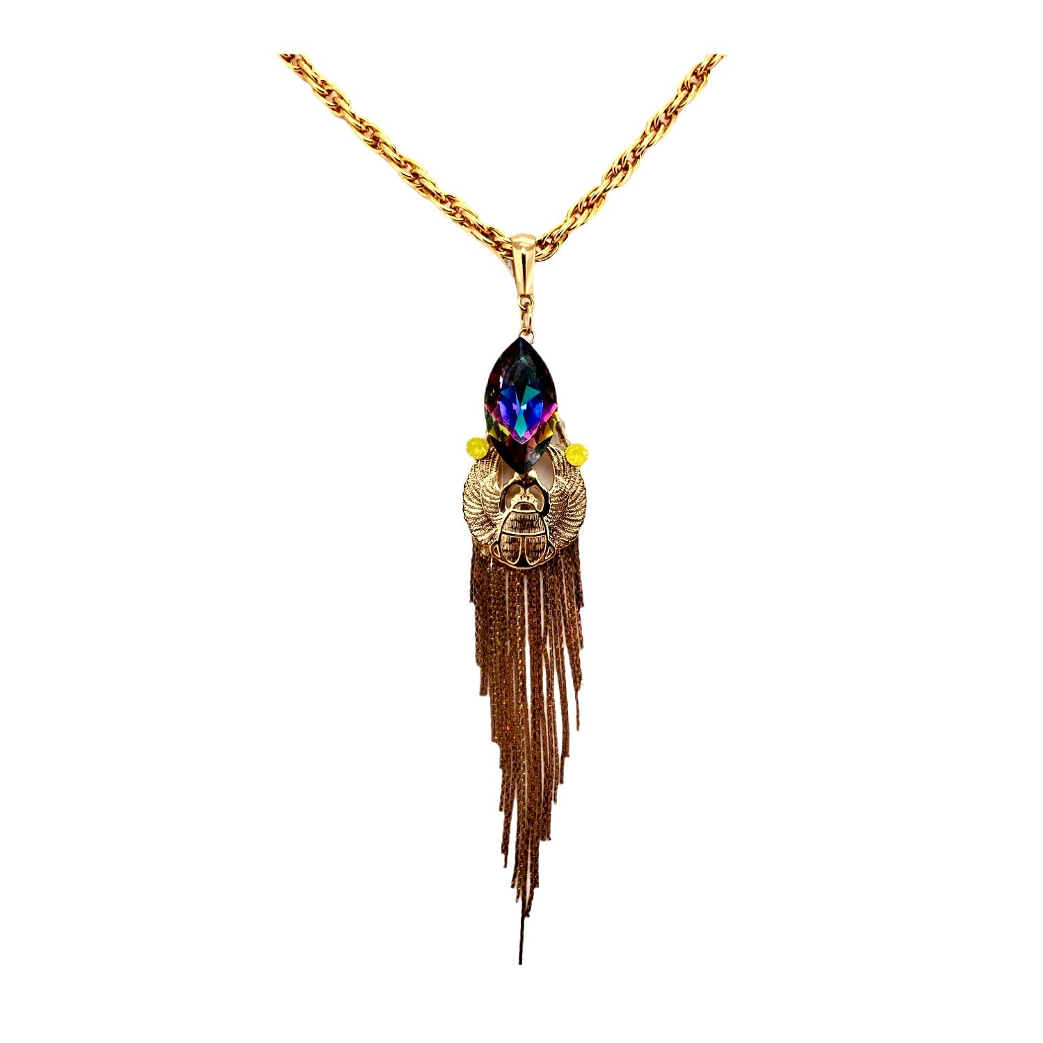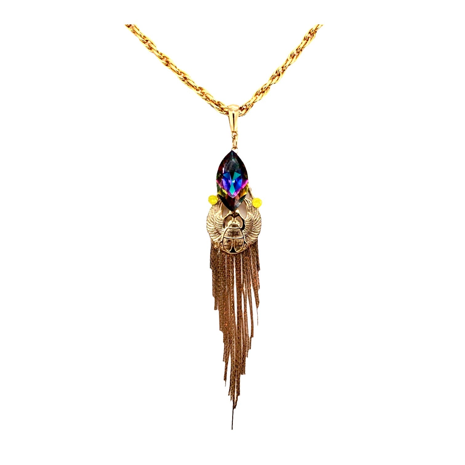 EGYPTIAN GOLD KHEPRI BEETLE TURQUOISE FRINGE NECKLACE