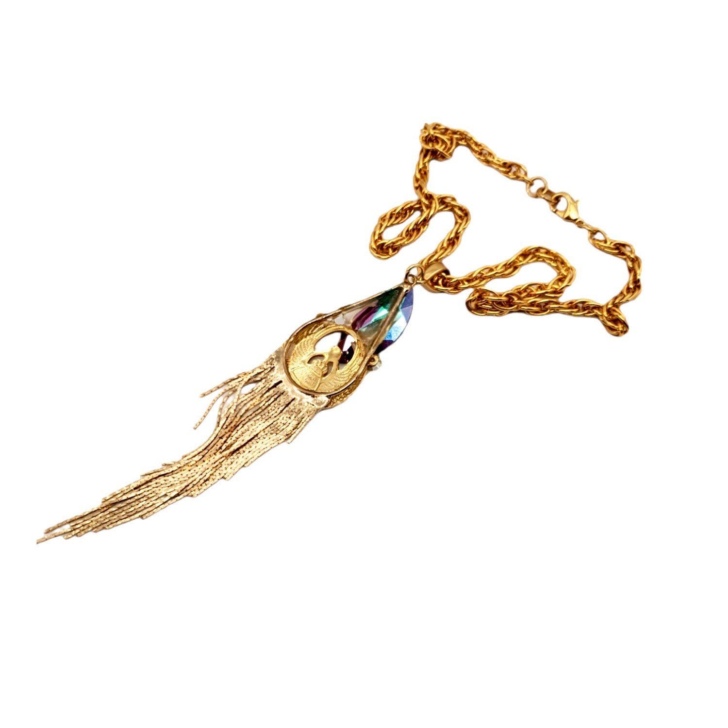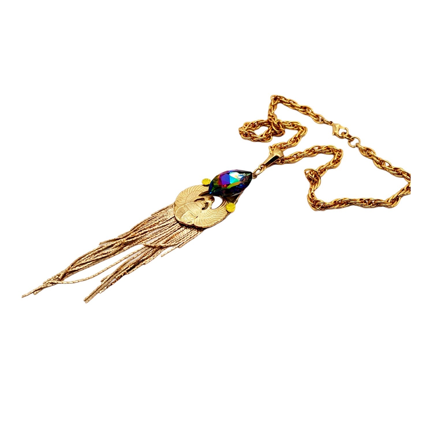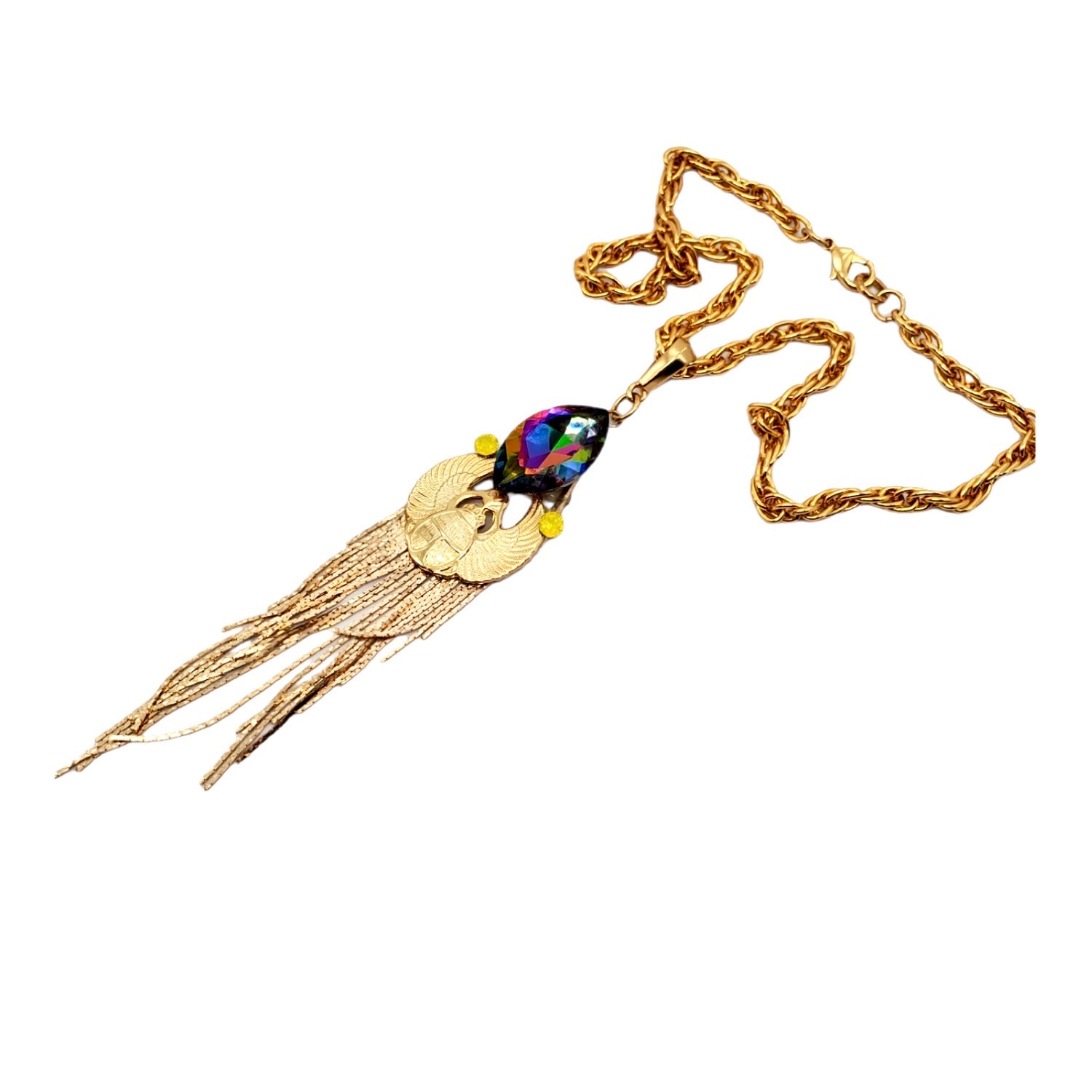 EGYPTIAN GOLD KHEPRI BEETLE TURQUOISE FRINGE NECKLACE