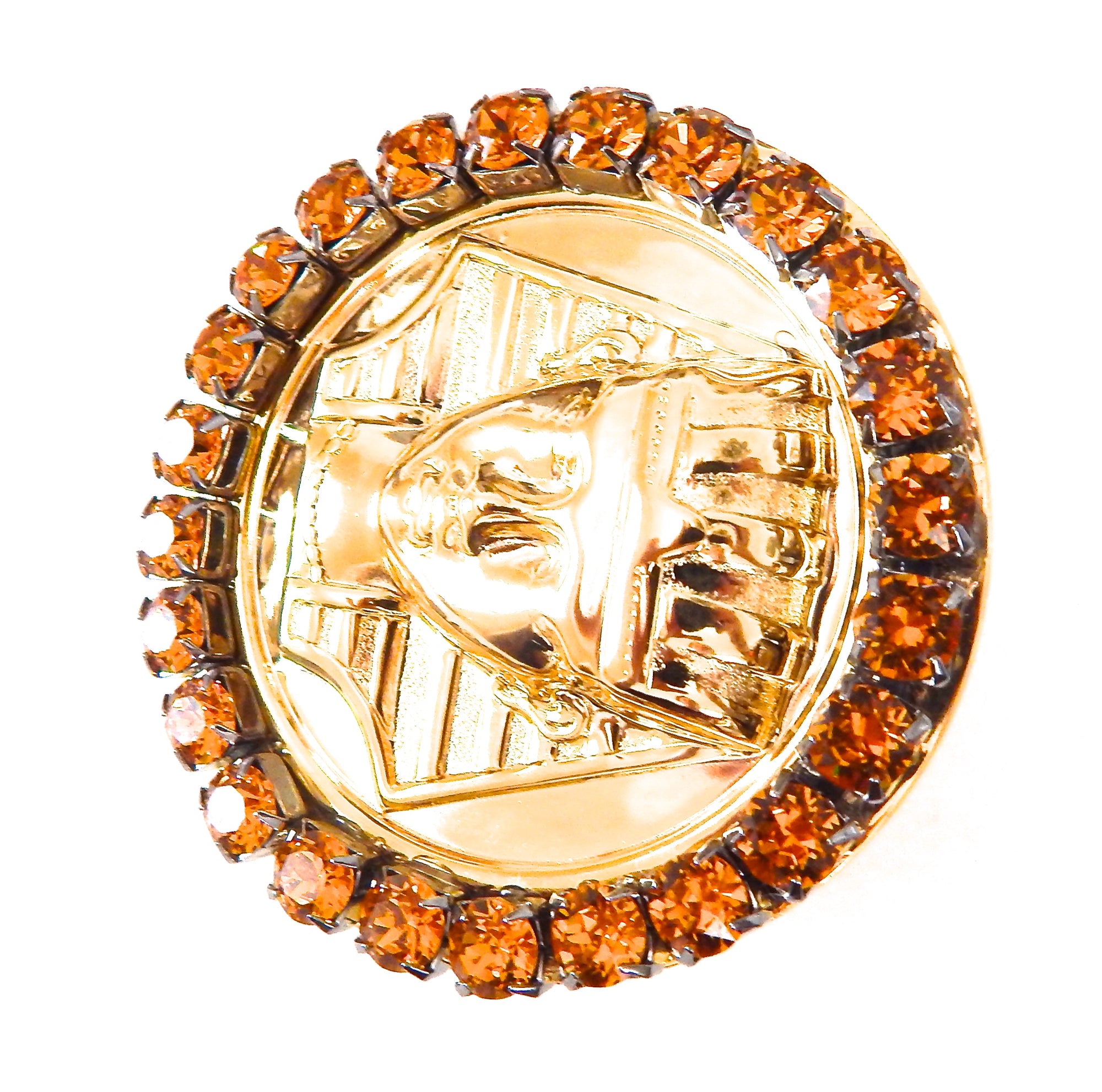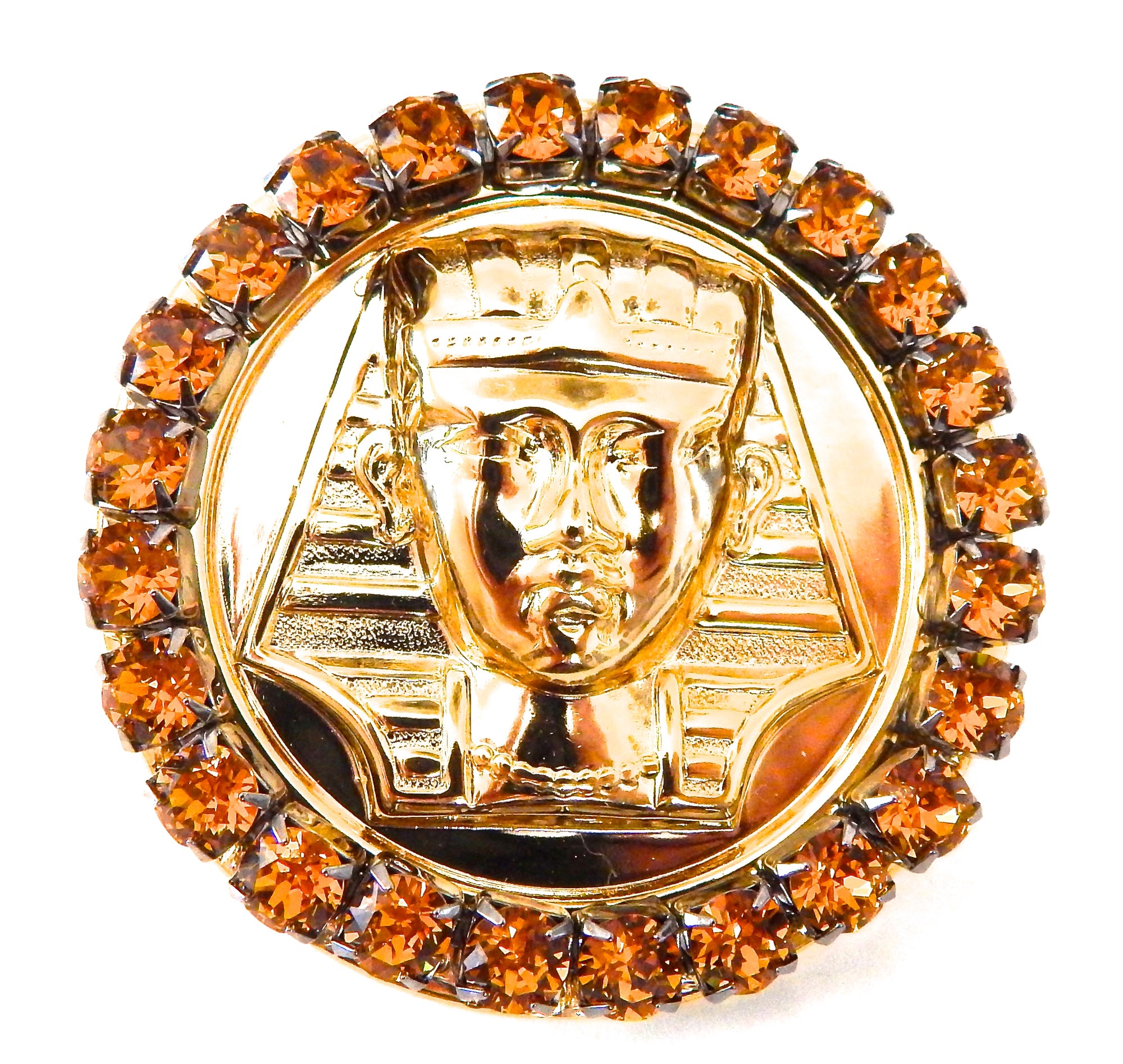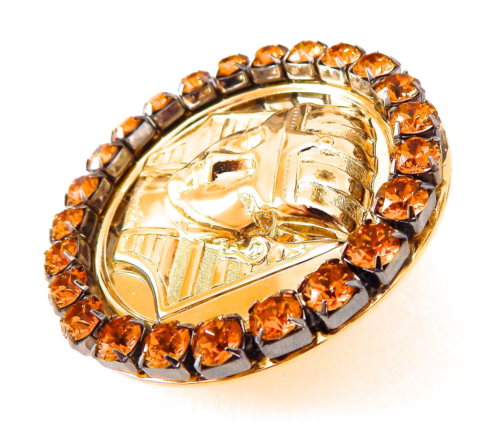 EGYPTIAN GOLD KING TUT HONEY DUST RHINESTONE MEDALLION RING