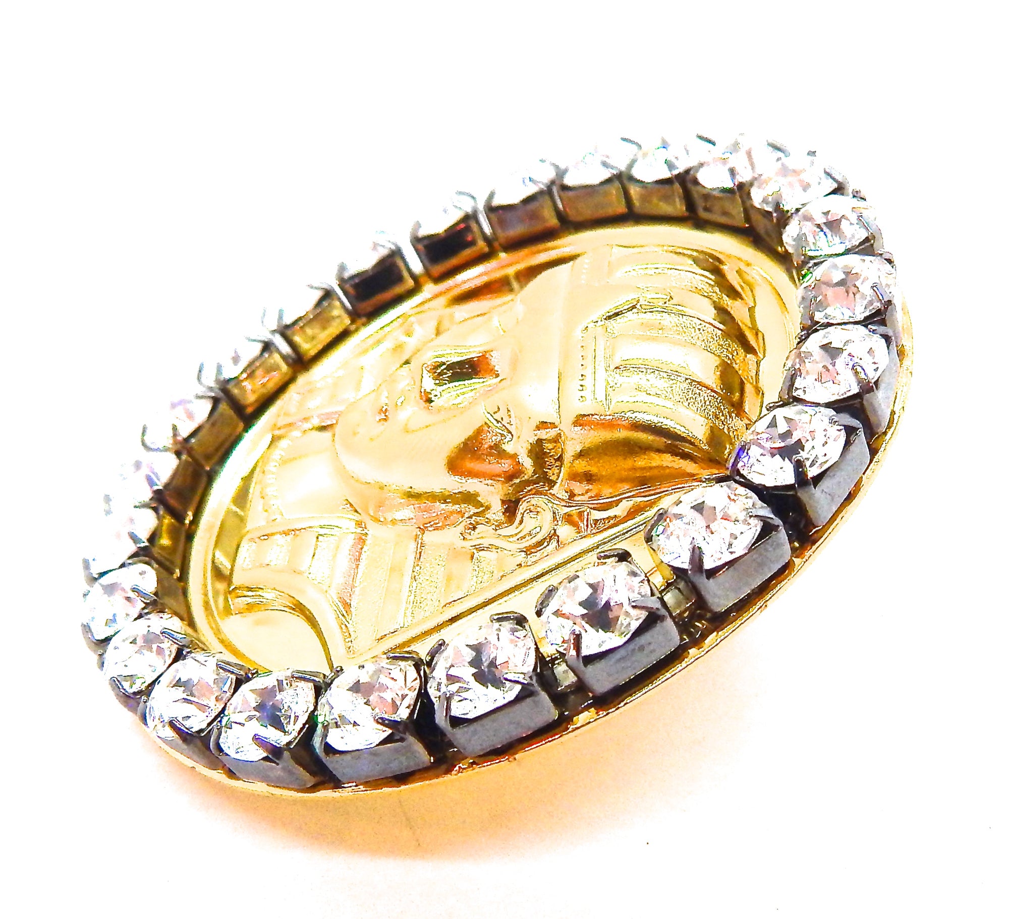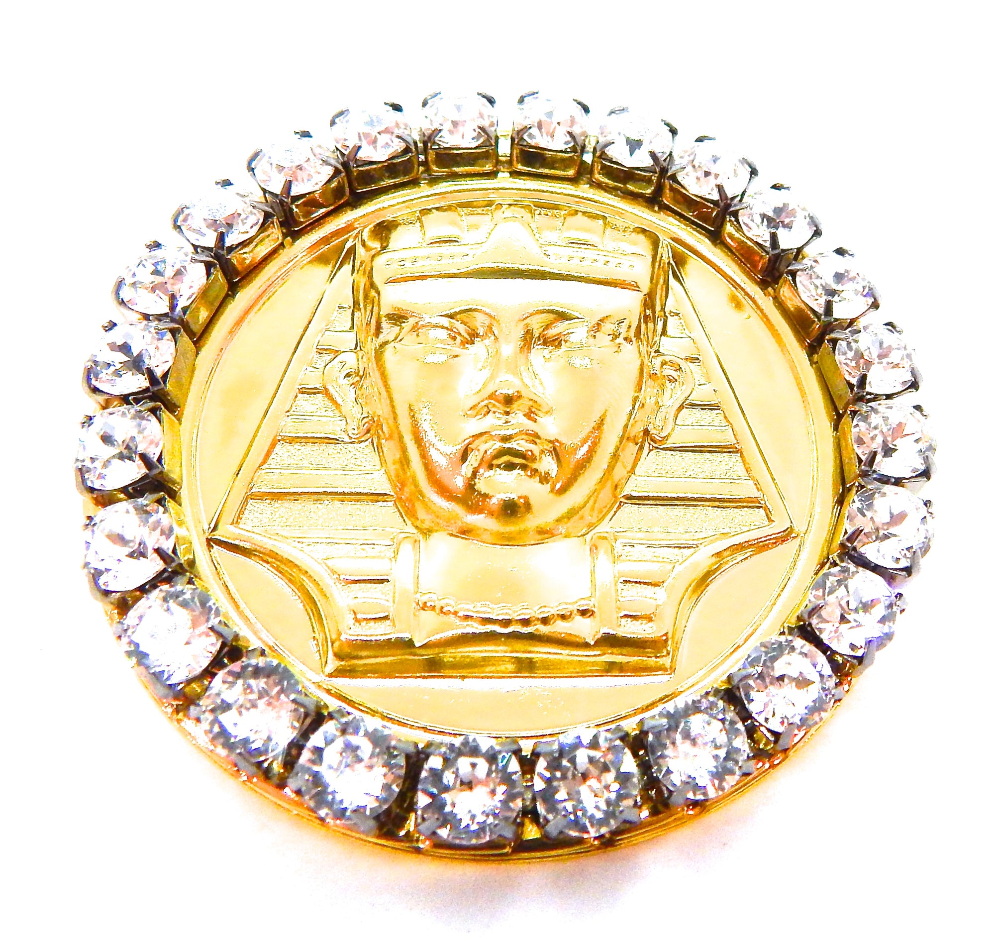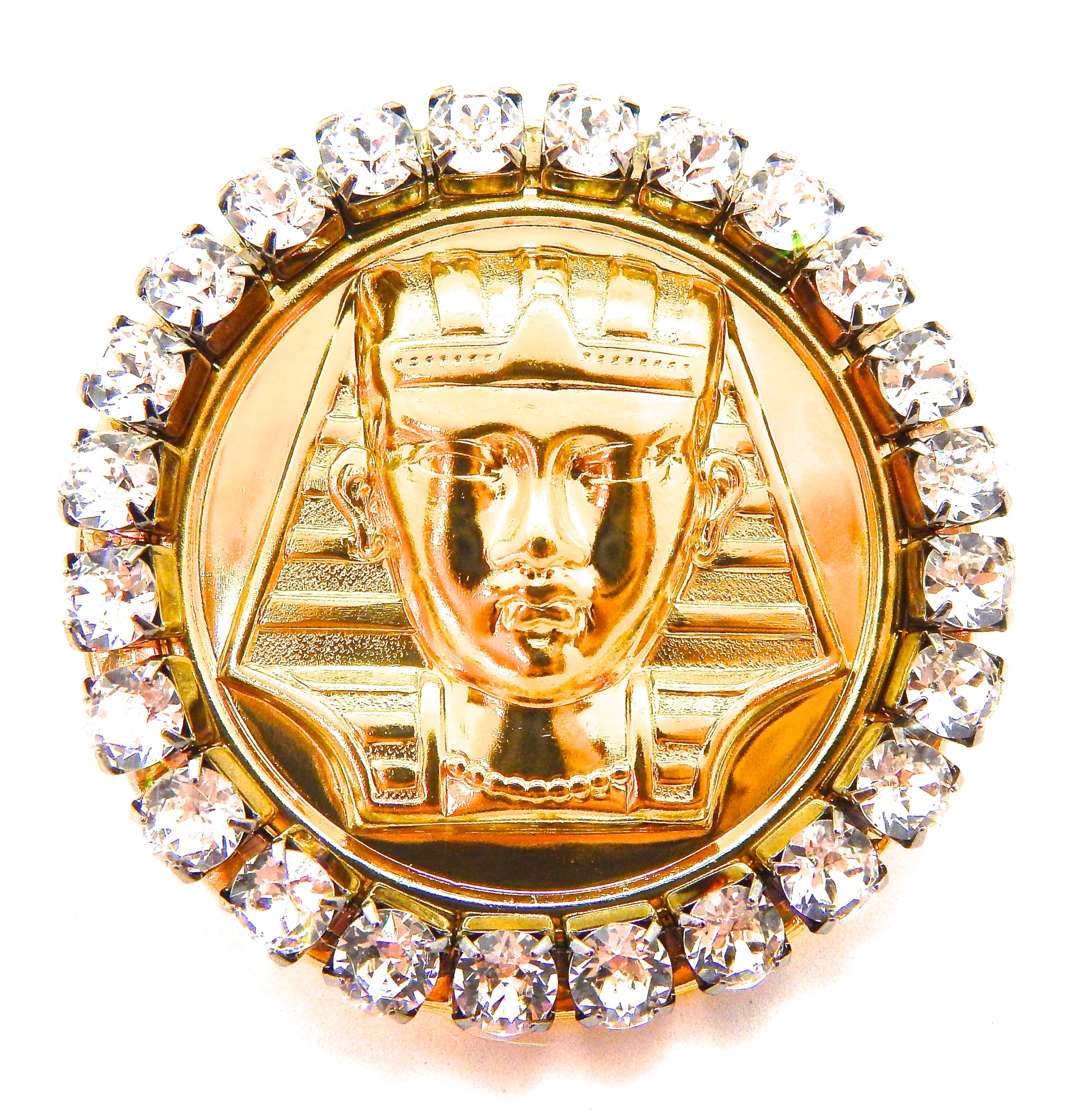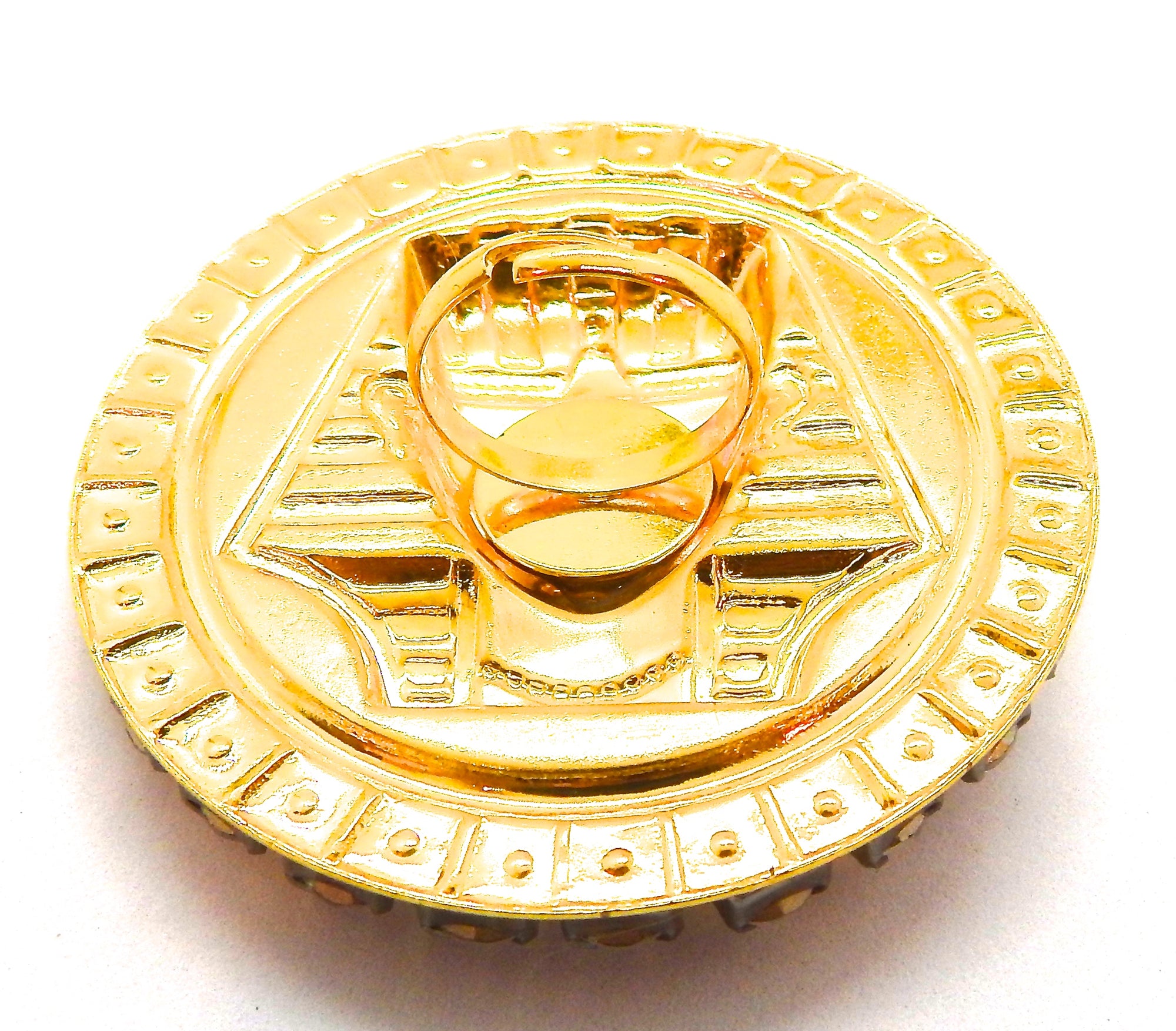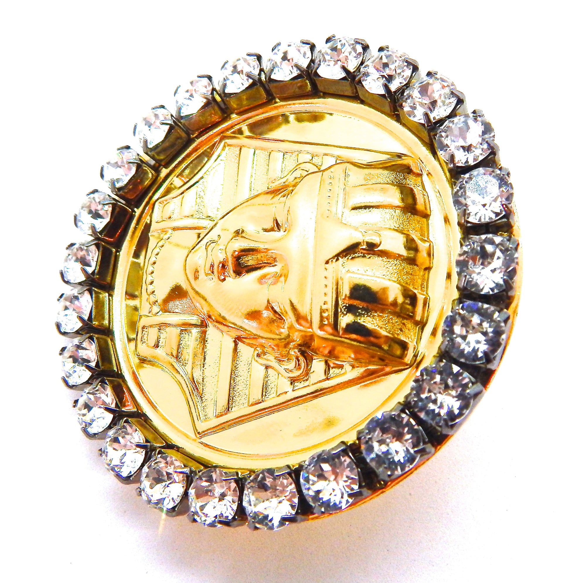 EGYPTIAN GOLD KING TUT MOONDUST RHINESTONE MEDALLION RING